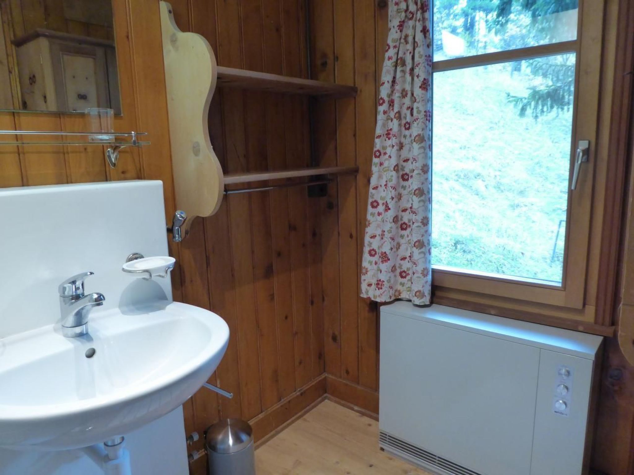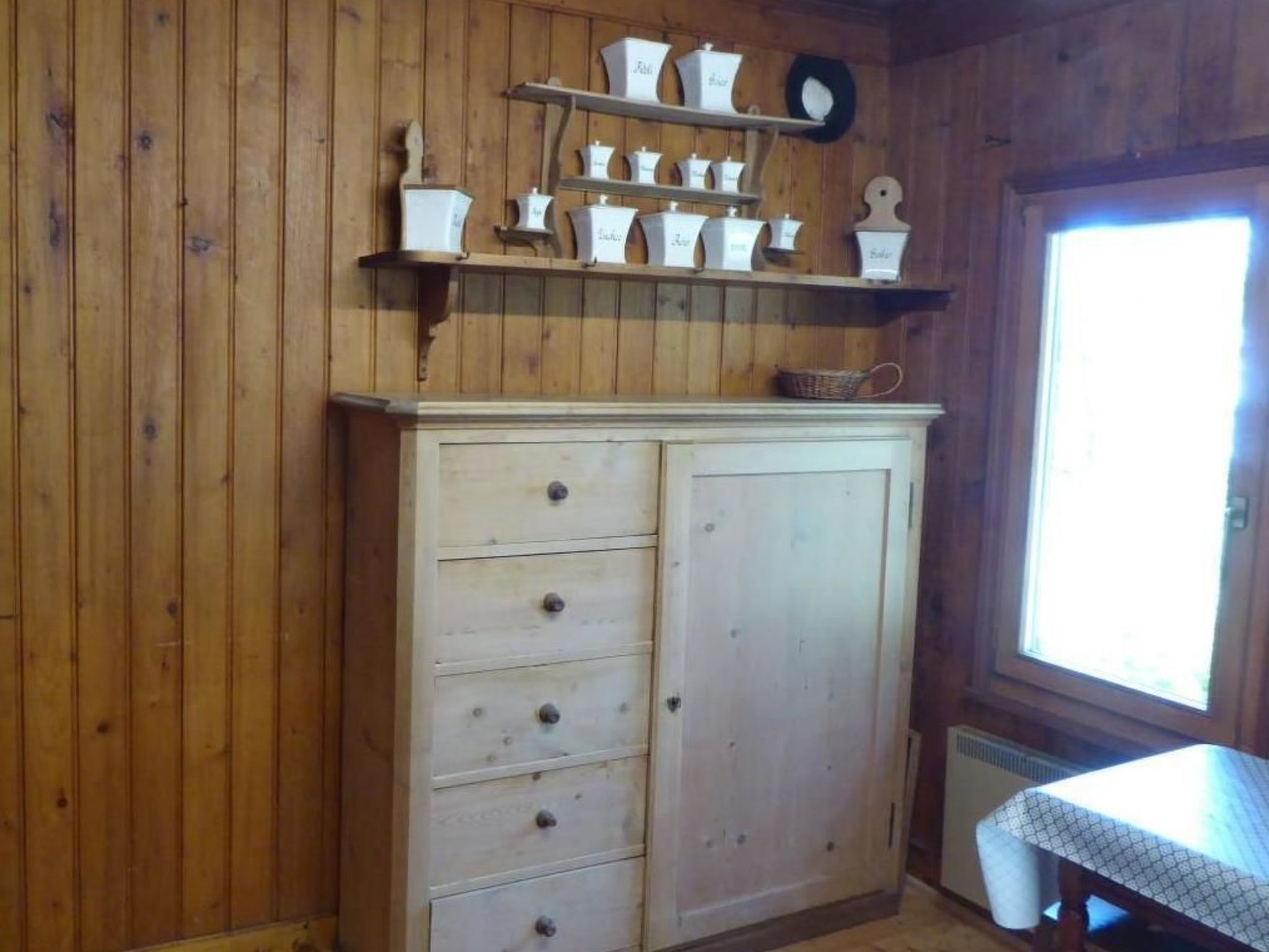 Einrichtung: Wohn-/Esszimmer, separate Küche mit Backofen, 2 Doppelschlafzimmer, Badezimmer mit Dusche und WC. Elektrische Speicheröfen in allen Zimmern. Wohnzimmerausstattung (Wohnzimmer1): 3 Fauteuils vor dem grossen Fenster mit Ausblick, Esstisch mit 6 Stühlen. Schreibtisch.