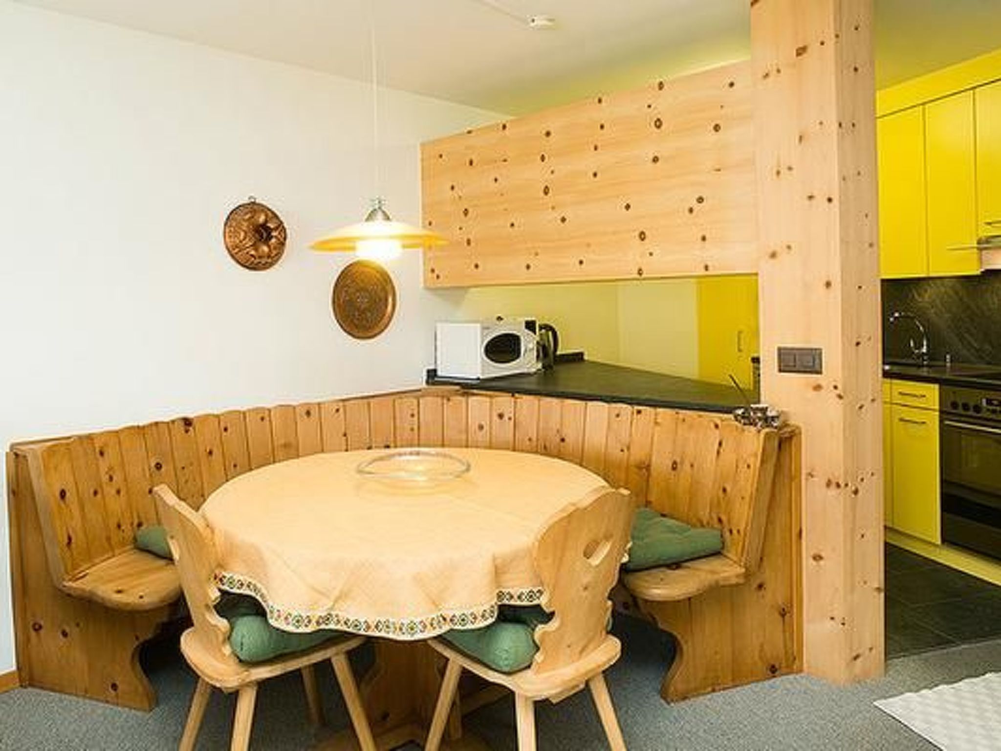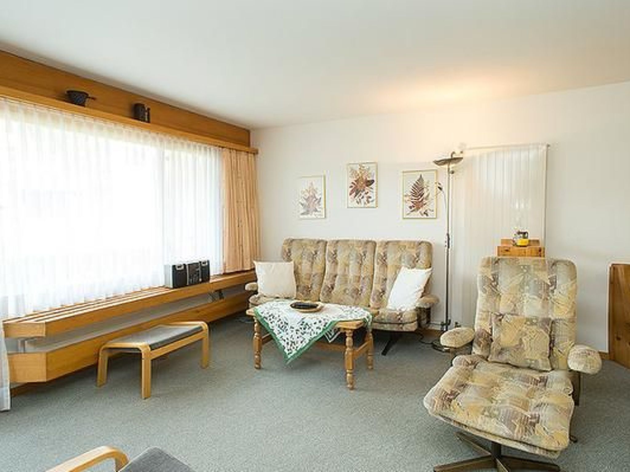 Sehr schöne, geräumige, mit viel Arvenholz gemütlich eingerichtete 2 1/2 Zimmerwohnung (65m2) im 1.Stock. Ruhig gelegen. Das Wohnzimmer bietet mit einer gemütlichen Couch, 2 Fernsehsesseln, Swisscom TV und WLAN, Raum zum Entspannen. Ein Balkon mit Aussicht in die fantastische Bergwelt, vollständig möbliert mit Tisch und Stühlen, sowie Liegen und Sonnenschirm lädt zum Verweilen ein. Die offene, moderne Küche ist ausgestattet mit Glaskeramik Kochfeld, Geschirrspüler, Backofen, grossem Kühlschrank Kaffeemaschine, Kapselsystem (Nespresso), Filterkaffeemaschine, Wasserkocher, Microwelle, Fonduegeschirr und Raceletteofen. Ein runder Esstisch mit Eckbank lädt zum gemütlichen Zusammensitzen ein. Das Schlafzimmer mit Doppelbett (2 x 90 x 200), Einbauschrank und direktem Zugang zum Balkon, bietet grosszügigen Raum für entspannte Nachtruhe. Ein 3. Bett findet sich in einer etwas abgetrennten Nische im Vorraum. Das Badezimmer bietet mit Dusche, abgetrenntem WC und einem Doppelwaschtisch grossen Komfort auf kleinem Raum. Gemeinsame Velo-und Skiräume sowie eine Waschmaschine finden sich im Keller im Haus. Ein Aussenparkplatz steht zur Verfügung. Die Nähe zur Bushaltestelle bietet den idealen Ausgangspunkt für Ihre Unternehmungen. Wandern, Biken, Skifahren, Langlaufen beginnt direkt vor der Haustüre. Im Winter erreichen Sie die Loipen bequem zu Fuss.