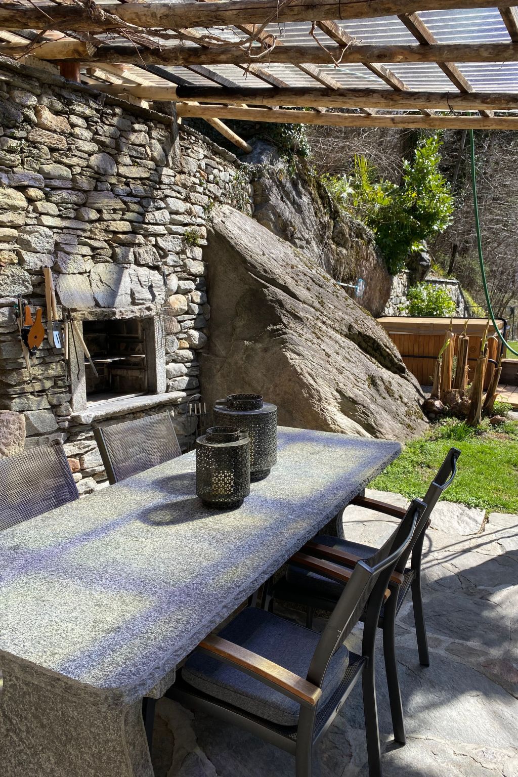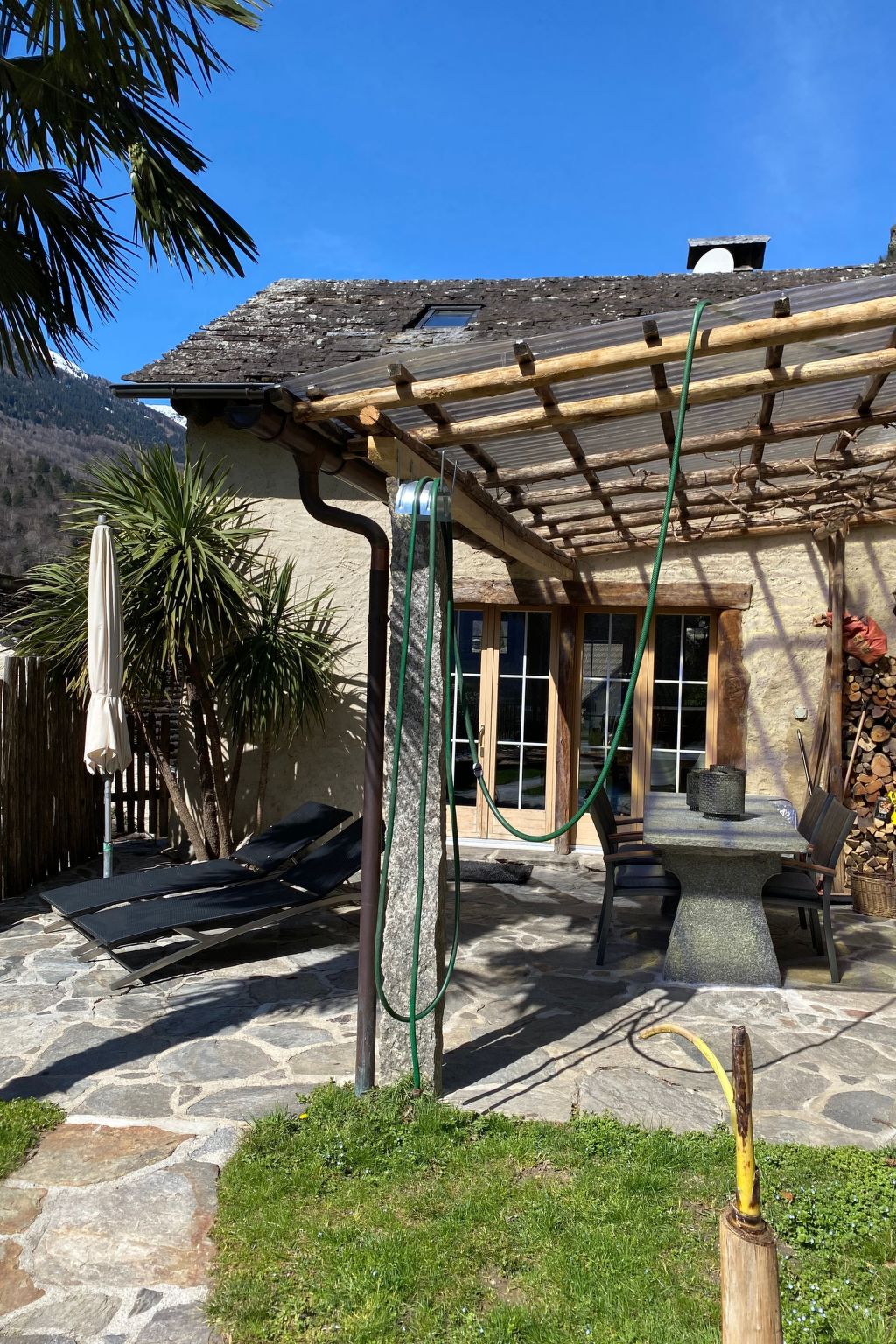 Neu ausgebauter Top - Rustico, komfortabel u. stillvoll eingerichtet, schöner Garten mit Panoramasicht, Aussencheminée, Pergola, befindet sich im schönen alten Dorfteil von Dongio (Val Blenio), Dongio liegt im oberen Tessin 8 Km von Biasca Richtung Lukmanier-Pass, sehr viele Wandermöglichkeiten, baden am Fluss, Skifahren, Langlauf, Bergtouren od. einfach die Seele baumeln lassen, ideal auch mit Hund, viele Spaziermöglichkeiten u. überall grössere od. kleinere Flüsse sei es zum Wasser trinken oder ein kühles Bad zu nehmen. Im uneinsehbaren Garten befindet sich ein beheizbarer Whirlpool mit Massagedüsen (das ganze Jahr in Betrieb, auch im Winter). Aussensauna, 4 Plätze.