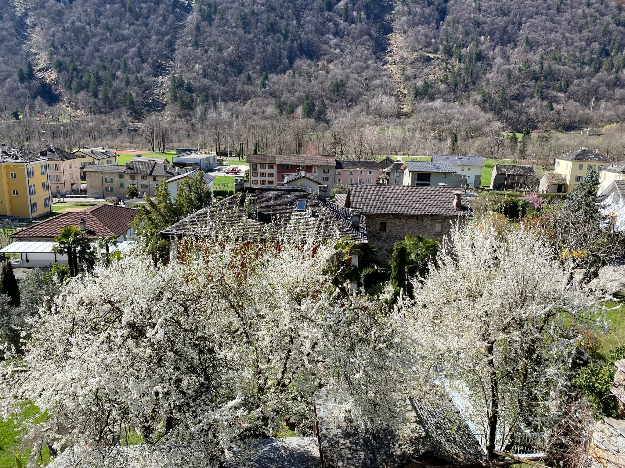 Ortsbeschreibung: Dongio liegt im mittleren Bleniotal (auch Sonnental genannt)460m ü/M, zwischen Biasca u. Lukmierpass, kleines Tessinerdorf am Fluss Brenno mit sehr guter Infrastruktur, gut erschlossen mit öffentlichen Verkehrsmittel,gute Luftqualität, gesundes trockenes Klima