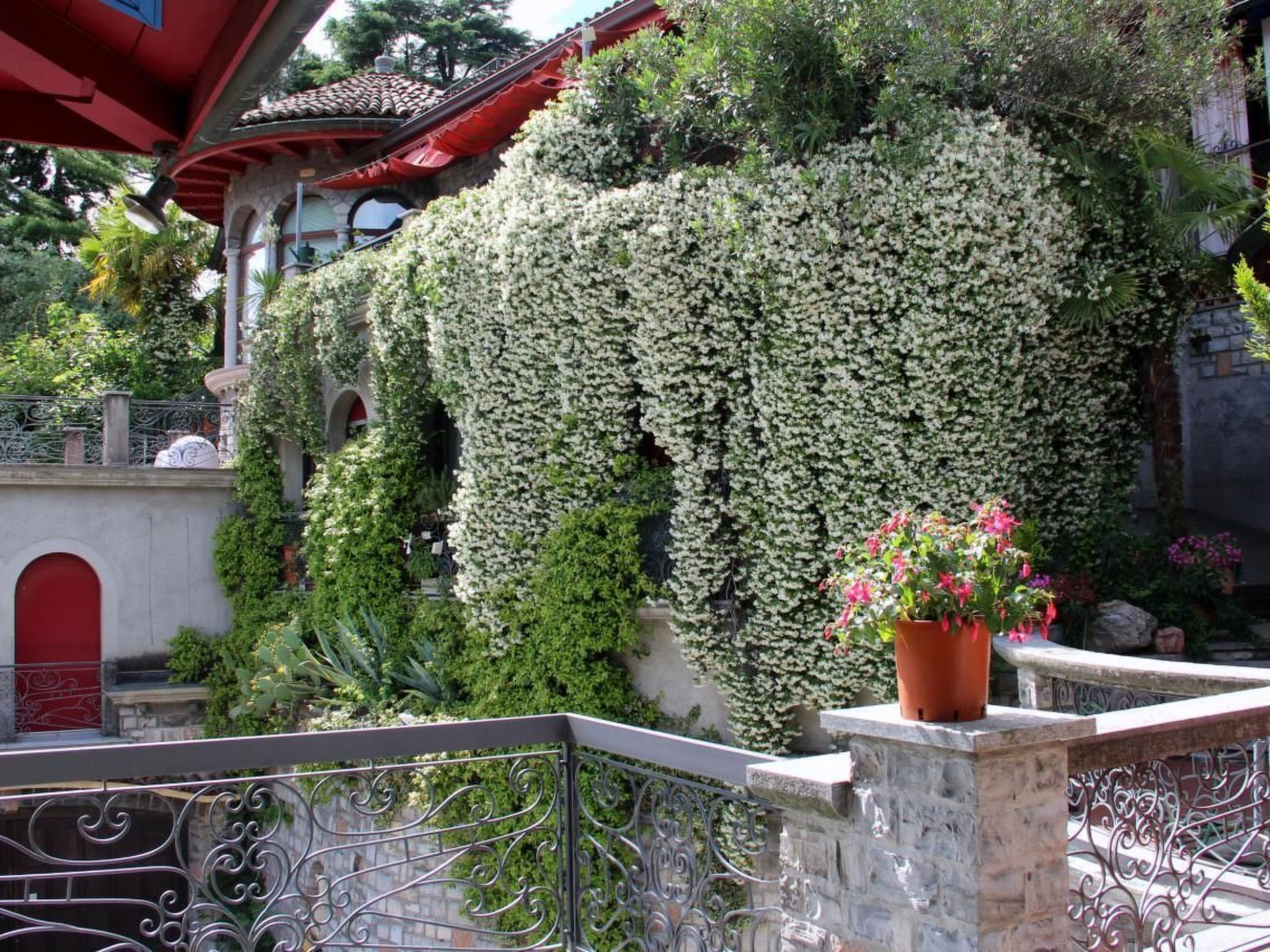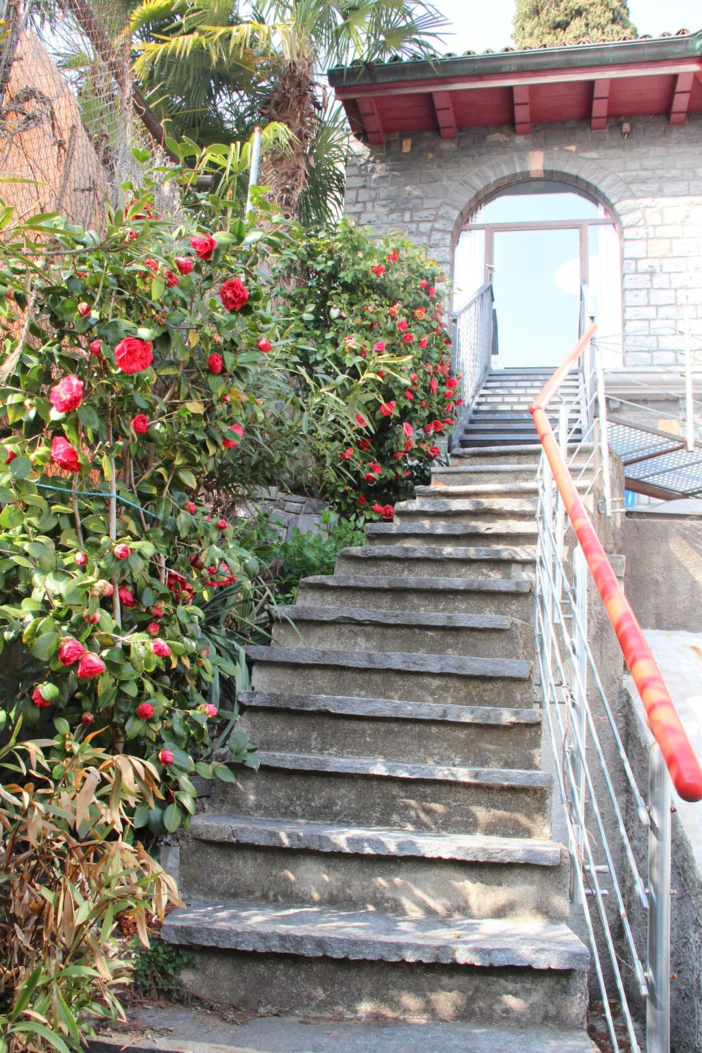 Eingang von aussen -- (Nichtraucher) unterschiedlicher Grösse für 1-9 Personen befindet sich im exklusivste Wohnbezirk von Lugano-Castagnola am Fusse des Monte Bré in Seenähe (70 m Luftlinie) und Uferweg zum Fischerdorf Gandria (1,3 km). Ruhig und sonnig abseits vom Verkehr von Komunal- und Kantonalstrasse zwischen privater Sackgasse via Violetta und antikem Oliven-Fussweg gelegen thront das nostalgische Anwesen über einem 4.000 m2 terrassierten mediterranen Baumgarten (naturbelassen) mit Panoramasicht auf Luganer See und nahe Berge.