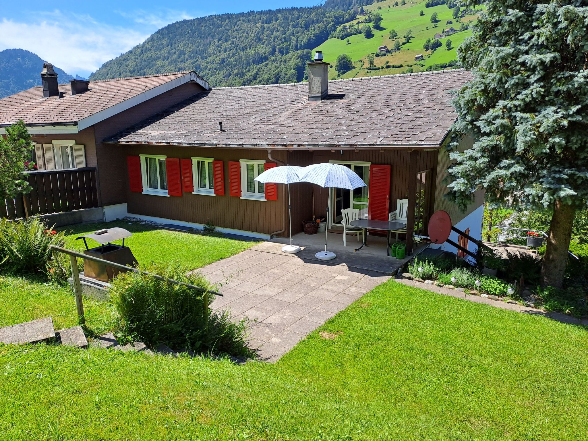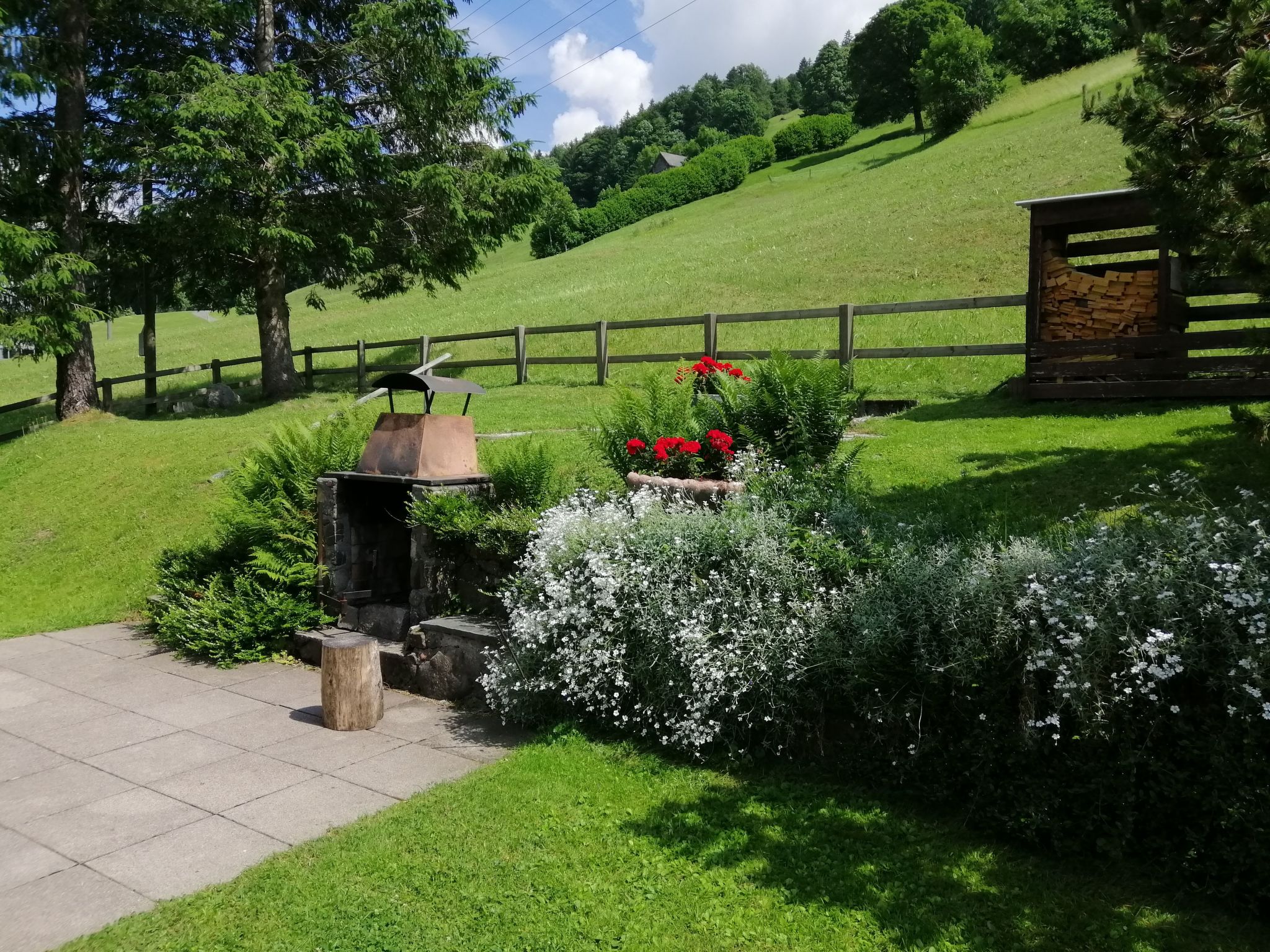 In puncto Außenbereich überzeugt die Wohnung mit einer Terrasse und einem Balkon – ideal, um bei schönem Wetter die frische Bergluft zu genießen. Zudem steht eine Liegewiese zur Verfügung, auf der Sie entspannen und die Sonne genießen können. Für Grillliebhaber gibt es einen Grillplatz, der zu gemeinsamen Mahlzeiten im Freien einlädt. Für Gäste mit Haustieren ist wichtig zu wissen, dass zwei Haustiere, auch große Hunde, herzlich willkommen sind.