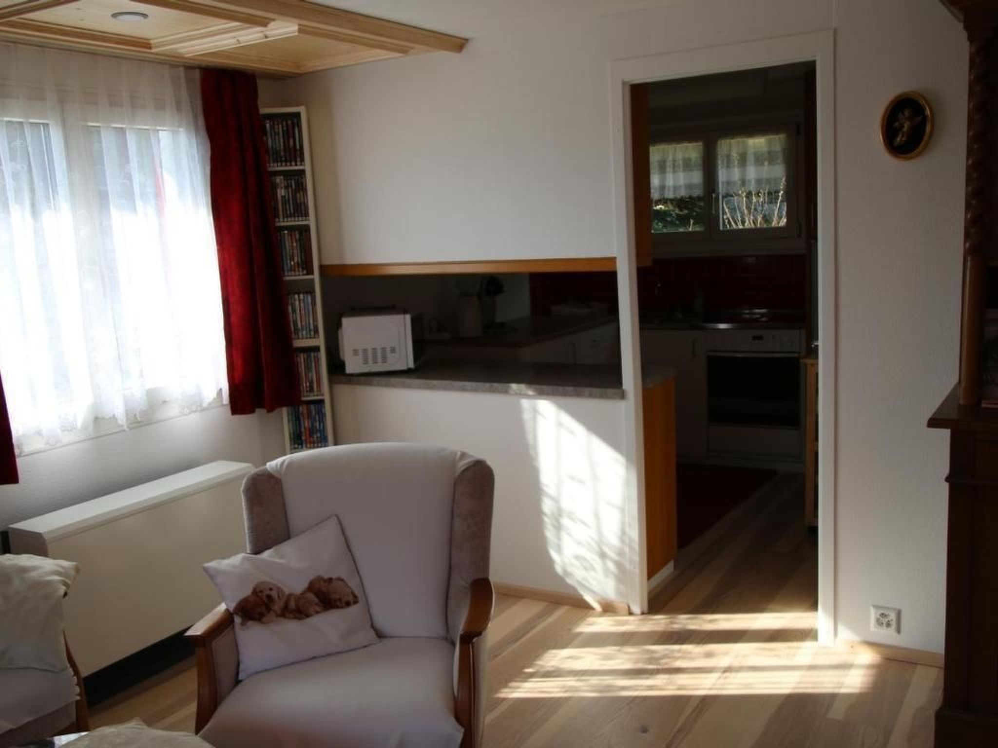Innen erwartet Sie eine liebevoll teil renovierte Wohnung, in der moderner Chalet-Stil geschmackvoll mit hochwertigen Materialien kombiniert wurde. Das Wohnzimmer, frisch renoviert im Frühjahr 2017, schafft mit seiner stilvollen Einrichtung eine gemütliche und einladende Atmosphäre. Die beiden Schlafzimmer, die im Herbst 2014 komplett renoviert wurden, strahlen durch Arven-Holzdecken, Parkettböden, großzügige Kleiderschränke und Holzbetten eine warme Chalet-Atmosphäre aus. Die offene Küche ist nicht nur äußerst funktional, sondern auch gut ausgestattet mit diversen Kochutensilien, Geschirr und sogar einem Fondueset oder Raclette-Set, um gemeinsame Mahlzeiten im Wohnzimmer zu genießen.