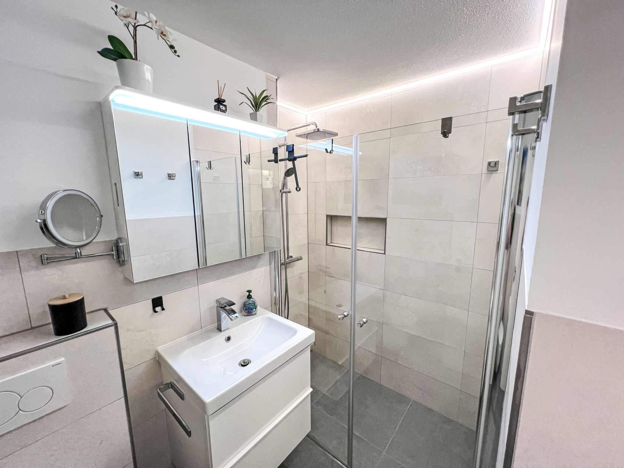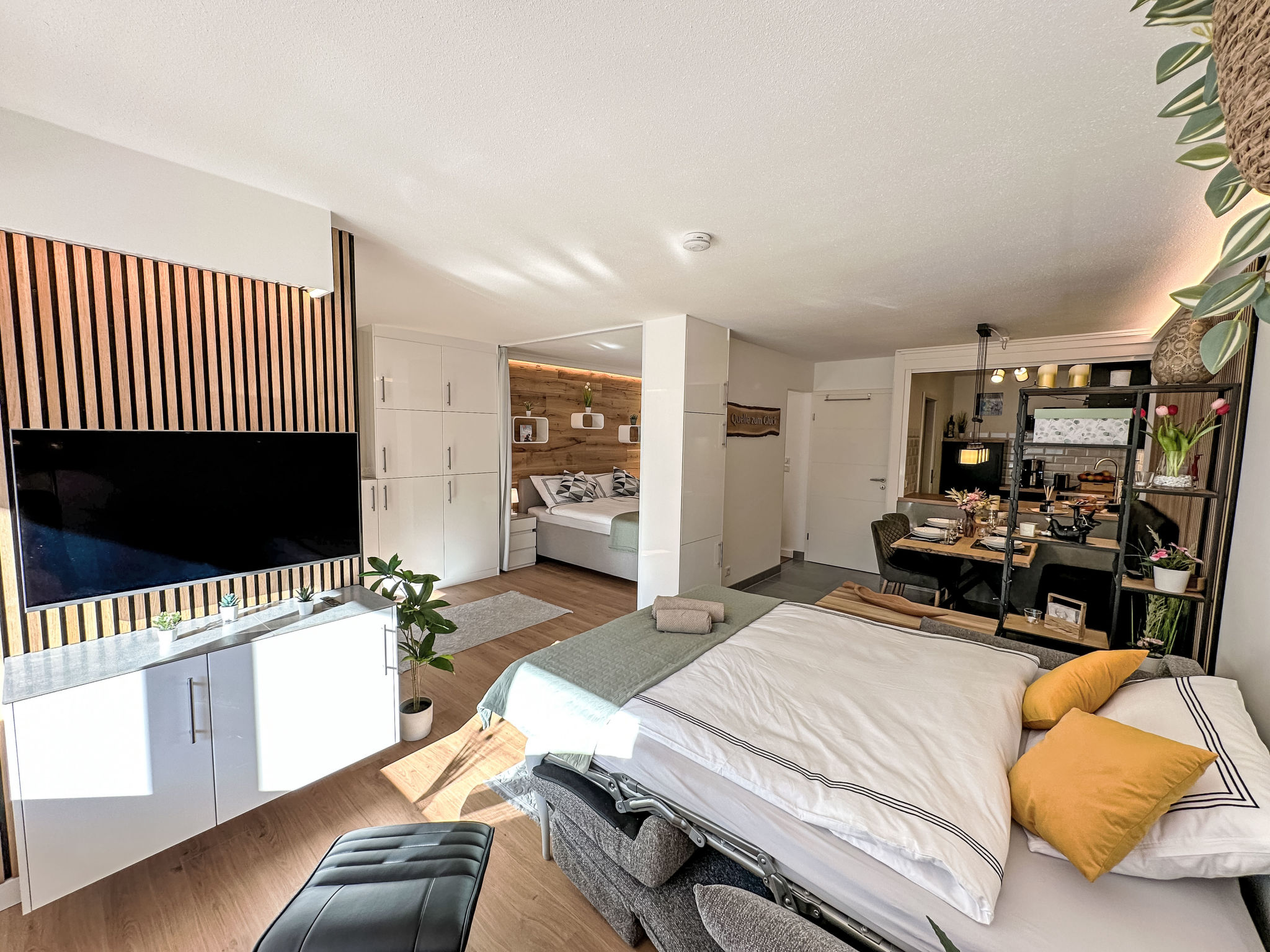 "Ringstrasse Apt 113", 2-Zimmer-Wohnung im 1. Stock. Vollständig renoviert im Jahre 2024, sehr schön und modern eingerichtet: Wohn-/Schlafzimmer mit 1 Doppeldiwanbett (170 cm, Länge 210 cm), Digital-TV. Ausgang zum Balkon. Schlafnische mit Vorhang mit 1 Doppelbett (180 cm, Länge 200 cm). Küche (Backofen, Geschirrspüler, 4 Induktionskochplatten, Toaster, Wasserkocher, Tiefkühler, elektrische Kaffeemaschine, Kombinationsmikrowelle) mit Esstisch. Dusche/WC. Fussbodenheizung. Parkettboden. Balkon. Balkonmöbel. Schöne Sicht auf die Berge und das Tal. Zur Verfügung: Safe, Haartrockner. Internet (WLAN, gratis, Bandbreite: 400 Mbit/s). Bitte beachten: Nichtraucher-Unterkunft.