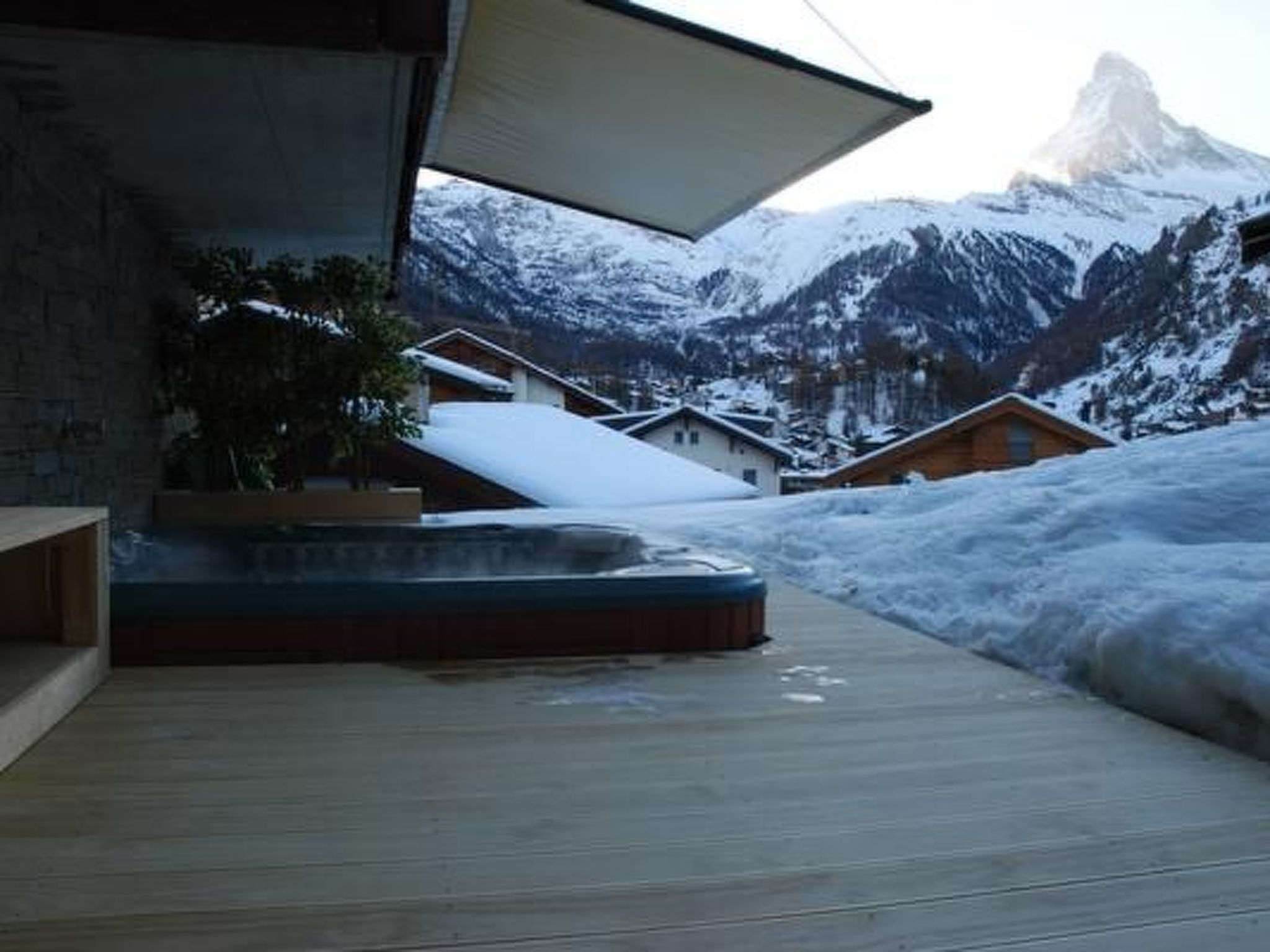 Riffelsee****: Neue, grosse 4.5-Zimmer-NR-Wohnung (145m2). Grosszügig, modern, gemütlich und schön eingerichtet. Wohn-, Ess- & Küchenbereich hell & freundlich mit Cheminée und Ausgang zum Südbalkon mit unverbauter Sicht auf das Matterhorn und auf das Dorf. Im Aussenbereich Outdoor-Jacuzzi.