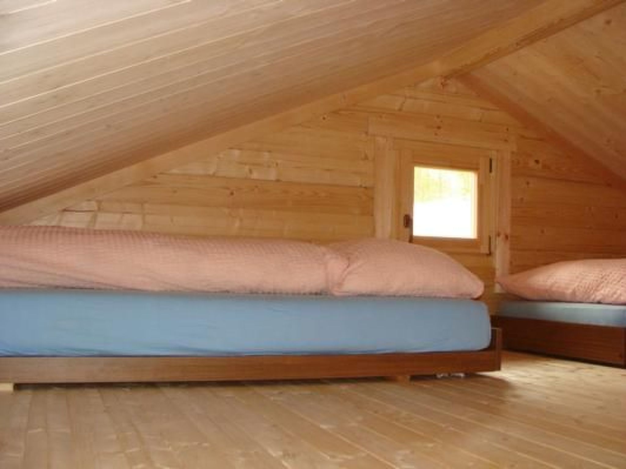 Das Blockhaus wurde 2011 neu erbaut und liegt an zentraler Lage im Camping. In unmittelbarer Nähe befinden sich Kinderspielplatz, Bistro, Sauna, Schwimmbecken. 1 Schlafzimmer mit 2 Betten, 1 Schlafboden mit in der Dachschräge (Höhe 1.40cm) mit drei Betten, 1 ausziehbarer Couch im Wohnzimmer. Das Haus verfügt über ein eigenes Bad mit Dusche, WC, Lavabo. Die Küche ist komplett eingerichtet mit 4 Herdplatten, Backofen, Geschirrspüler. Die Anlagen des Campings dürfen mitbenutzt werden (Sauna, Schwimmbecken, Sanitärgebäude, Waschmaschine, Grillplatz). Miete ab 2 Nächte möglich- bitte fragen Sie für Daten und Preise beim Vermieter an.