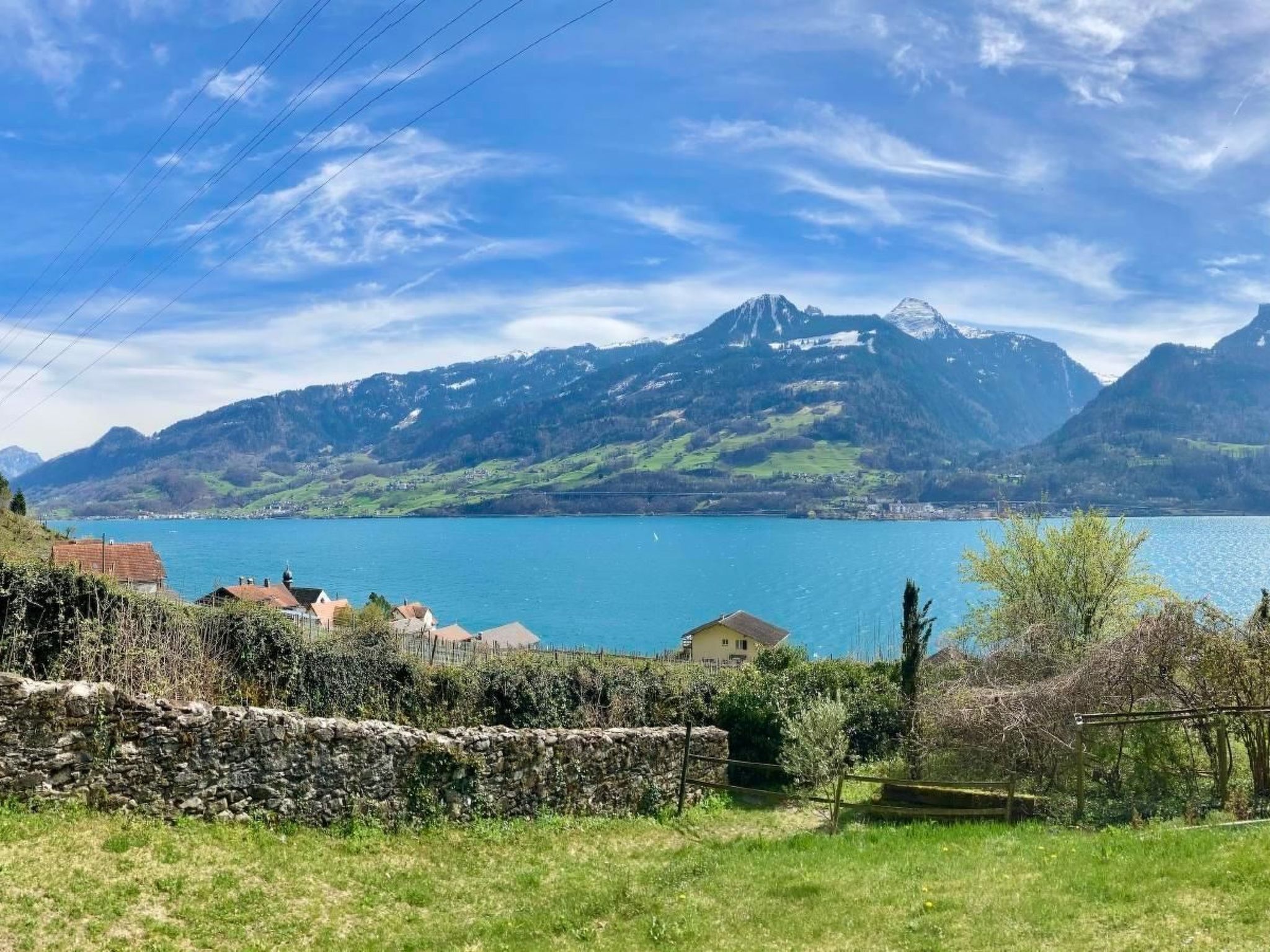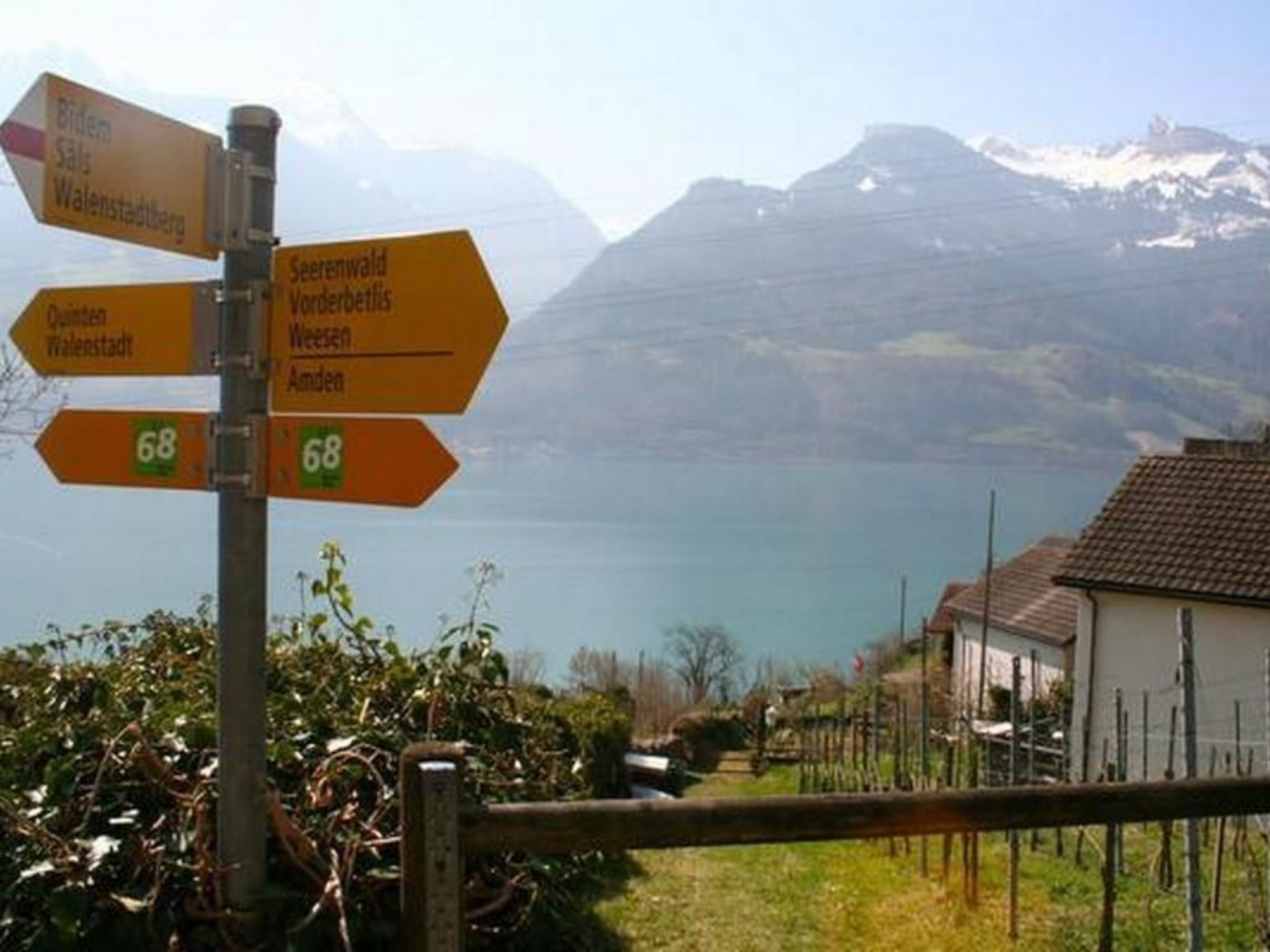 Ortsbeschreibung: Quinten ist autofrei und geniesst ein ganz besonderes Klima Am Nordufer des Walensees gelegen, ist Quinten nur zu Fuss oder mit dem Schiff erreichbar. Das rund 50 Einwohner zählende Dorf gilt auch als das „Tessin der Ostschweiz“: Die einzigartige Südlage vor den schützenden Steilwänden der über 2100m hohen Churfirsten beschert dem Ort auf 430m Höhe ein mildes Klima, in dem neben einem ausgezeichneten Wein auch Feigen, Kiwis und andere exotische Gewächse gedeihen. Quinten ist autofrei und ein beliebtes Ziel für Wanderungen. In der Dorfmitte am Hafen befinden sich eine Kapelle, zwei Restaurants mit Fischspezialitäten (eines davon ganzjährig geöffnet), ein „Kellerlädeli“ mit Quintner Spezialitäten, ein Geschenk- und Souvenirlädeli, und ein Weinkeller. Ein Supermarkt befindet sich ca. 200m vom Hafen Murg West am gegenüberliegenden Ufer des Sees. Quinten ist nur mit dem Schiff oder zu Fuss erreichbar. Das Kursschiff Quinten-Murg fährt Quinten ganzjährig an, im Sommerhalbjahr über 20 Mal täglich (im Winter ca. 12 Mal täglich). Vom Hafen Quinten bis zum Haus sind es ca 200m ansteigender Fussweg.