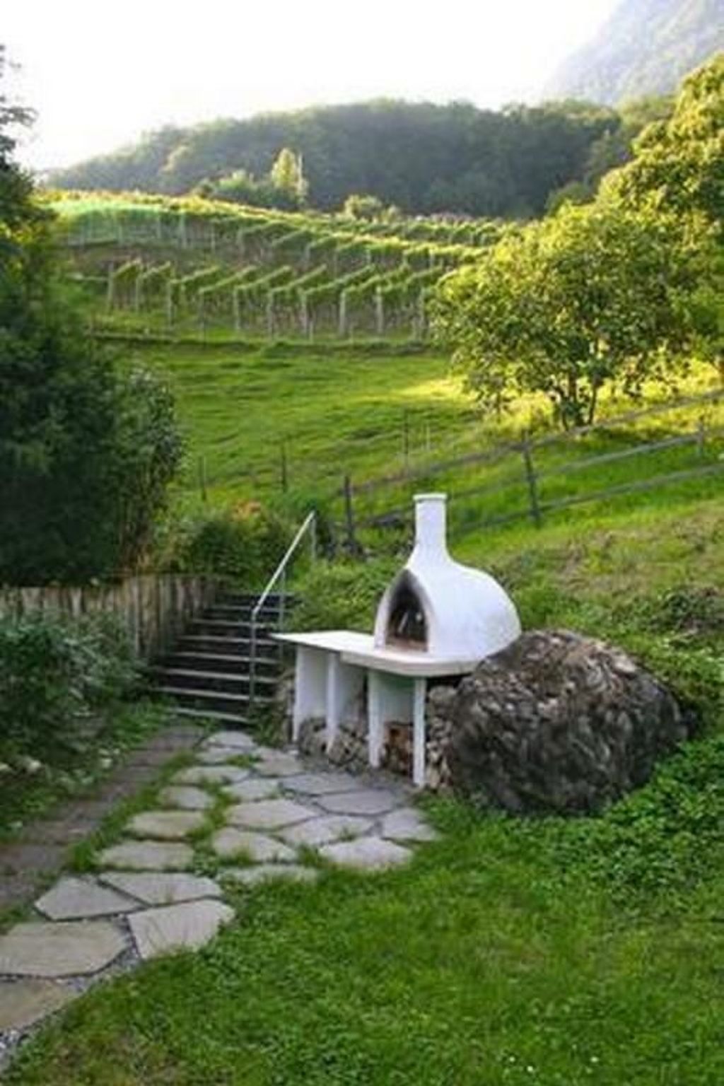Im Garten gibt es viel Platz zum Spielen und Entspannen. Am oberen Ende des Gartens wachsen ca. 70 Reben, die als Teil des angrenzenden Rebbergs zu einem ausgezeichneten Pinot Noir gekeltert werden. Je nach Jahreszeit reifen im Garten zudem Walderdbeeren, Brombeeren und Feigen. Der Blick vom oberen Gartenplatz mit Pizzaofen und Trampolin beeindruckt durch die steil aufragenden Churfirsten. Mit etwas Glück findet man im weitläufigen Wiesenrasen auch vierblättrigen Klee.