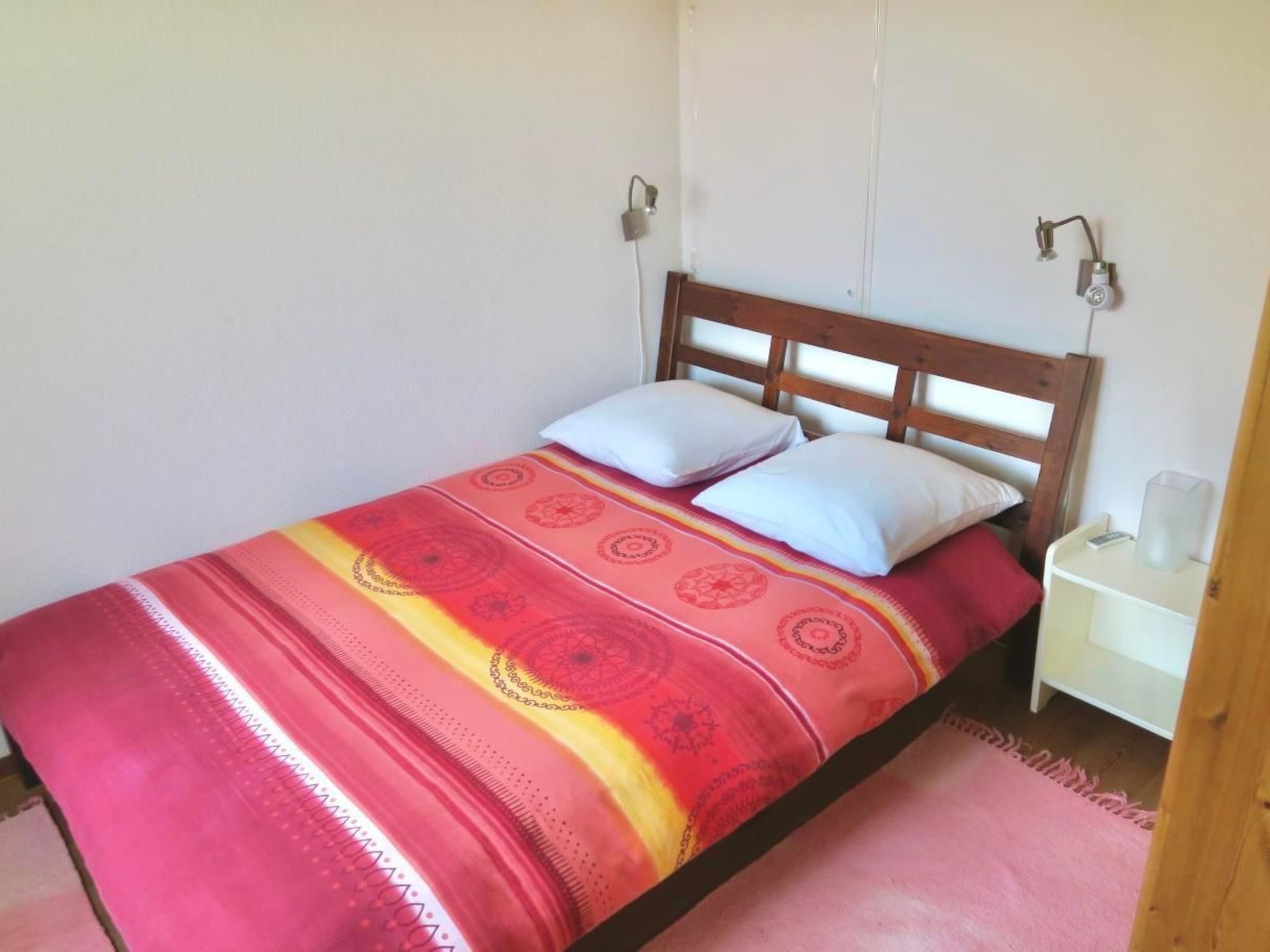 Sie umfasst das Wohnzimmer mit Küchenecke, das Bad und ein Schlafzimmer mit Doppelbett. Das Sofa im Wohnraum kann in ein weiteres Bett verwandelt werden. Geeignet ist die Wohnung für 2 Erwachsene. Für Kinder und Jugendliche ist die Wohnung zu klein. Sie ist nicht rollstuhlgängig.