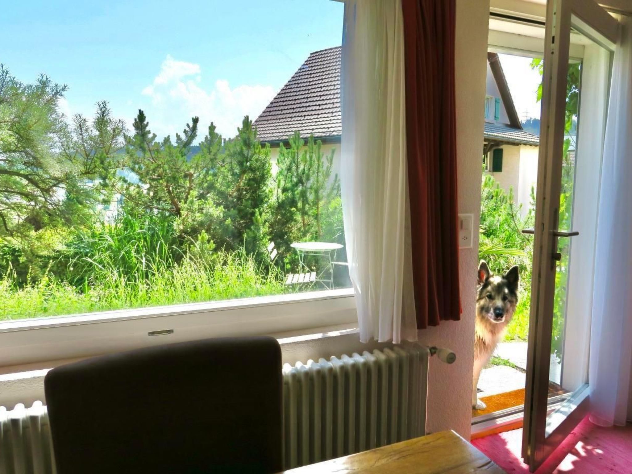 Wenn diese Worte Sie ansprechen, dann könnte es sein, dass Sie sich in unserer Ferienwohnung wohlfühlen werden. Sie liegt oberhalb des Dorfes Wald im Zürcher Oberland an ruhiger und schönster Aussichtslage: Eine 2011 renovierte 2-Zimmer-Gartenwohnung in unserem schon etwas älteren Haus, dem wir frische Farben und Lebenskraft eingehaucht haben. Die „Pilgerwohnung“ mit eigenem Zugang befindet sich im unteren Teil des Hauses und ist – wie das ganze Haus – nach Süden gerichtet.