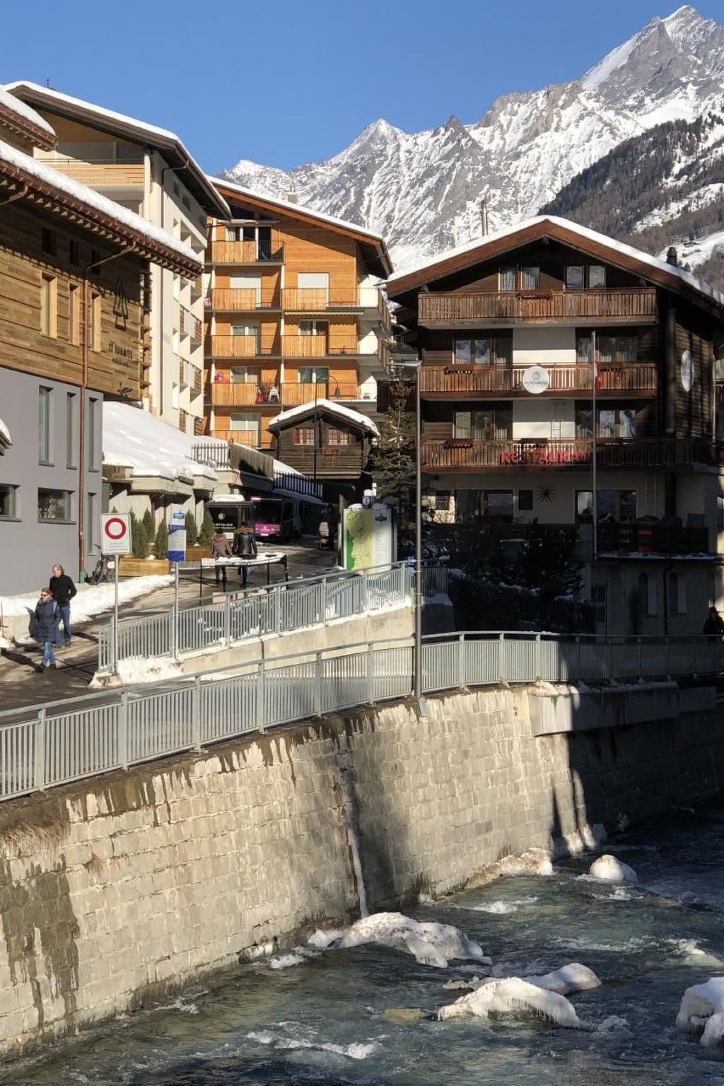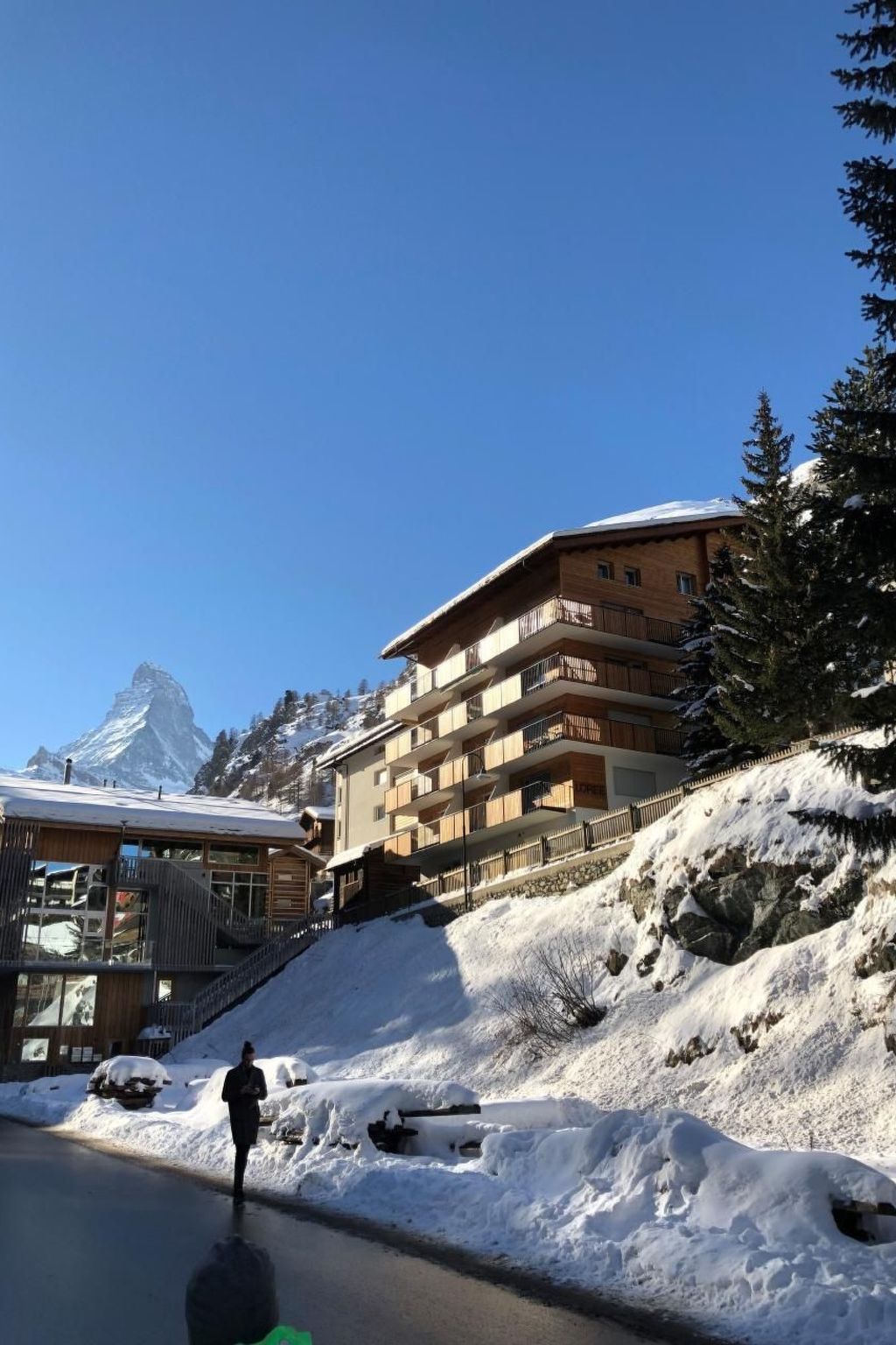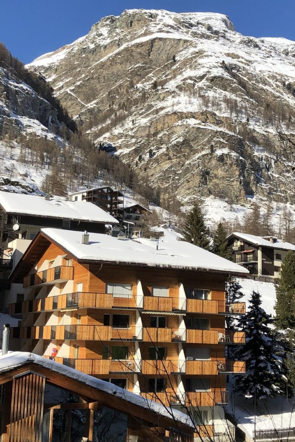 150m bis zur Matterhornparadies Talstation, 100m bis zur Skibusstation Richtung Sunnegga Paradies Talstation und Bahnhof (Skibus ist im Skipass inbegriffen).