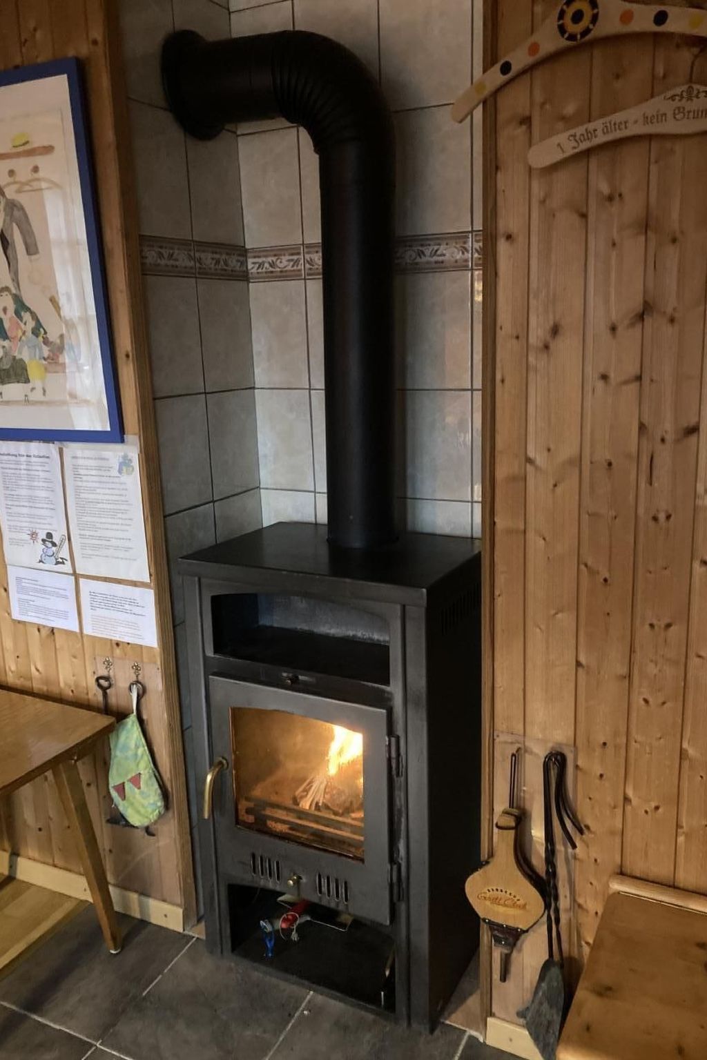 Die Innenausstattung lässt keine Wünsche offen und bietet normalen Komfort .Mit gutem Internetanschluss, einem Drucker sowie einer Küche, die neben Geschirrspüler und Waschmaschine mit integriertem Trockner auch mit Mikrowelle, Kaffee-Maschinen, und umfangreichem Fondue- sowie Raclette-Geschirr ausgestattet ist, können Sie sich wie zu Hause fühlen. Die drei gemütlichen Schlafzimmer, ein Schwedenofen im Wohnzimmer und ein Holzofen in der Küche sorgen auch an kälteren Tagen für eine wohlige Atmosphäre. Achtung für Winter: das Chalet wird nur mit Holz geheitzt.