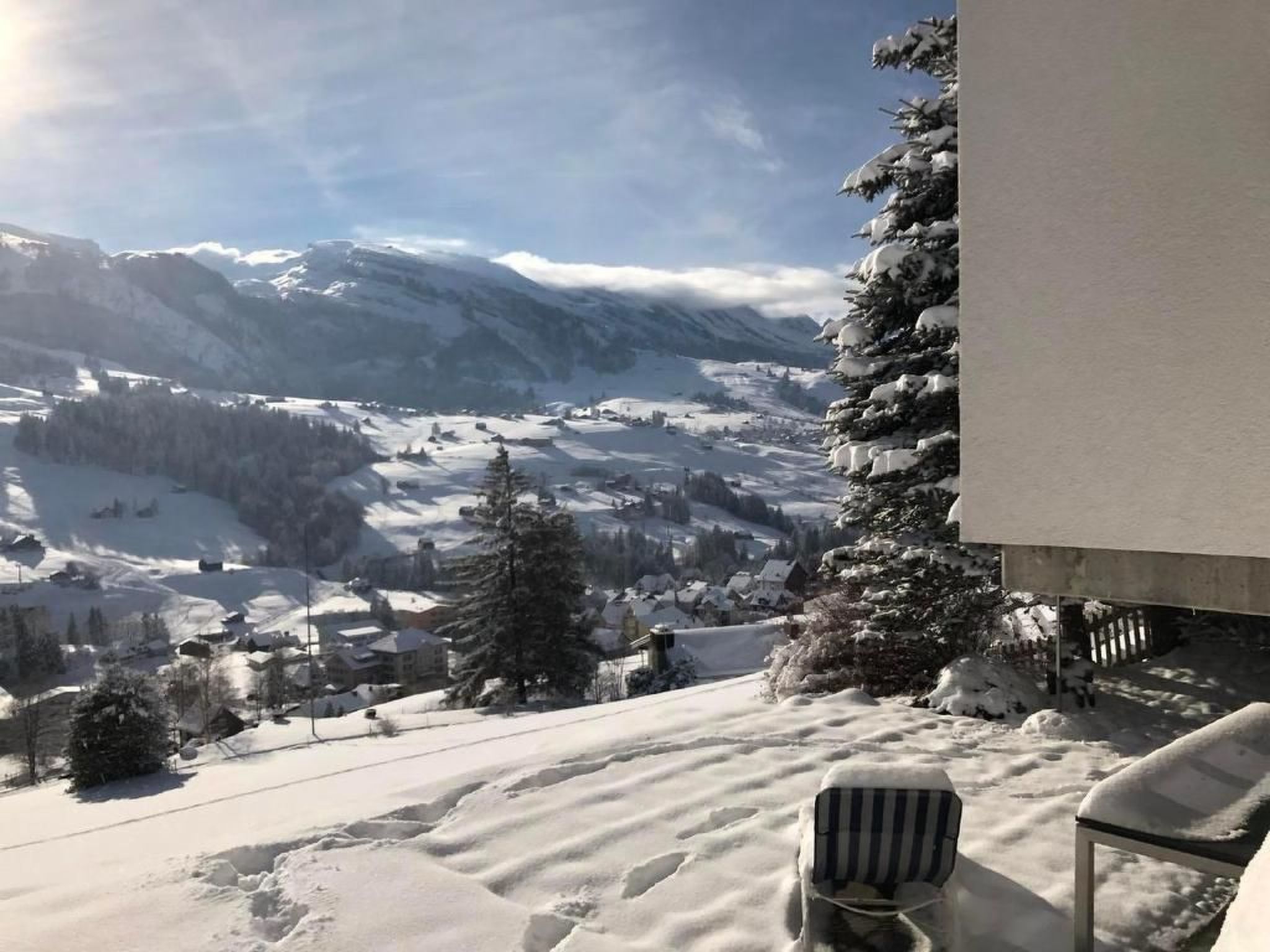 Mit viel Herz und Herzen :-) eingerichtetes Bijou im Toggenburg. Einseitig angebautes Chalet mit wunderschöner unverbauter Aussicht auf die Churfirsten. 2011 neu renoviert und neues Esszimmer angebaut. 2016 Bad und Schlafzimmer neu eingerichtet und renoviert. DVD Anlage mit vielen Filmen und vielfältiges TV-Swisscom-Angebot (blue TV mit 7 Tage Replay) gehören genauso dazu, wie die sehr grosszügige Küche mit Geschirrspüler und Glaskeramikherd. Der Schwedenofen im Wohnzimmer verwandelt das Chalet in Minuten in ein wohligwarmes Zuhause. 2 Parkplätze direkt am Haus! 2 Schlafzimmer im OG mit Boxspring-Doppelbett und 2 Bettenein Couch für 1 Person im UG. Die grosszügige Terrasse direkt oberhalb der Blumenwiese und dem Rundblick auf die Churfirsten lädt zum Sonnenuntergang und Grillen ein. Optimale Sonnenlage und südliche Ausrichtung lassen jeden Sonnenstrahl geniessen.Das Chalet befindet sich ca. 15 Minuten Gehminuten von der nächsten Haltestelle Skibus und ca. 20 Minuten Geminuten vom Dorfzentrum entfernt. Die Talstation der Oberdorf-Gamserrugg-Bahn ist in 5 Autominuten zu erreichen. Parkplätze bei der Talstation sind unbegrenzt und gratis. Freies WLAN gehört genauso dazu wie eine grosse DVD-Bibliothek für jedes Alter.