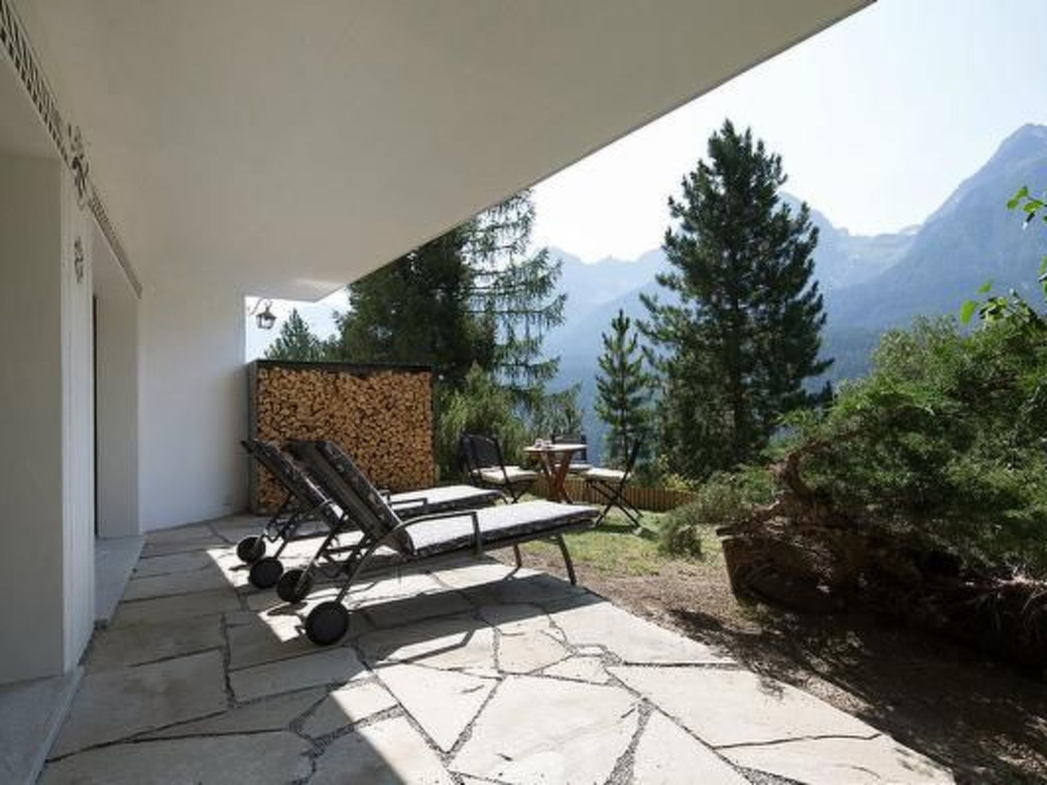 Der Außenbereich der Chasa Diala ist eine Oase der Ruhe und Entspannung. Gäste können auf der geräumigen Terrasse und Liegewiese Sonne tanken oder im privaten Garten verweilen. Zwei Garagenboxen und zusätzliche Parkplätze sorgen für bequeme Anreise und Mobilität vor Ort. Für Winterfreuden stehen zwei große Davoser Schlitten bereit, um die Umgebung zu erkunden.