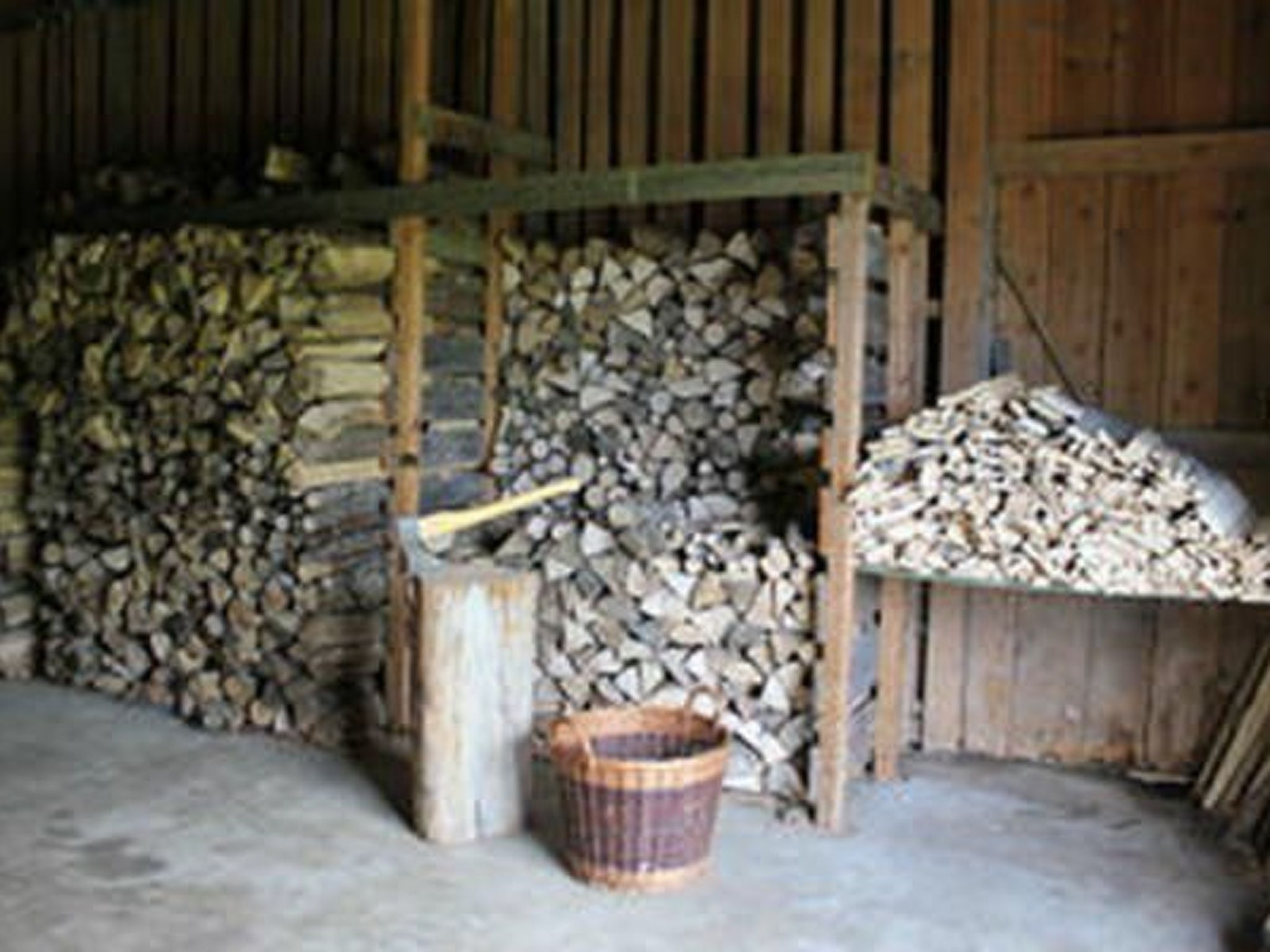 HEIZUNG: - je 1 Kachelofen (Warmluftverteilung) in grosser und kleiner Stube - geschnittenes Holz vorhanden - das grosse Schlafzimmer wird mit Durchlaufkamin geheizt - elektr. Warmluftöfen in WC`s und Badzimmer