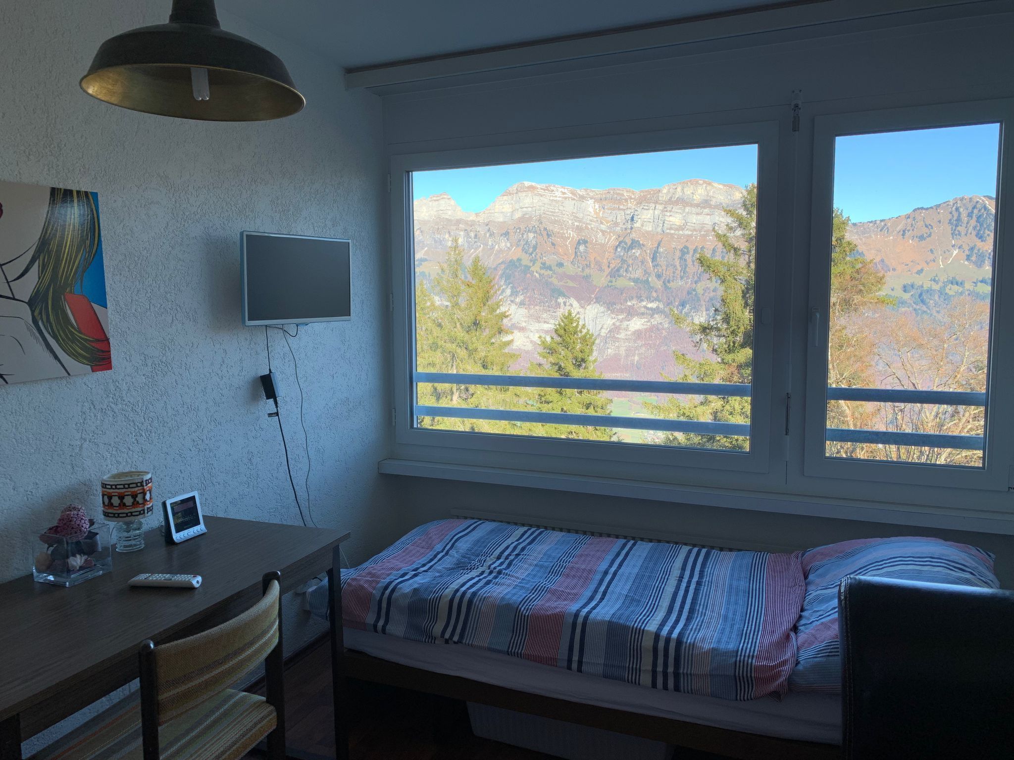 Entdecken Sie die idyllische Ruhe und die natürliche Schönheit von Flums von unserer gemütlichen Ferienwohnung im 5. Obergeschoss aus. Ideal für eine Familie oder eine kleine Gruppe von bis zu 5 Personen, bietet diese Unterkunft den perfekten Rückzugsort für Liebhaber der Berge und des aktiven Lebensstils. Nach ihrer vollständigen Renovierung im Jahr 2017 besticht die Wohnung durch eine vollausgestattete Küche mit hochwertigen Geräten wie einem JURA-Kaffeevollautomaten, Raclette- und Fondue-Gerät sowie zahlreichen anderen Annehmlichkeiten, die Ihren Aufenthalt komfortabel und unvergesslich machen.