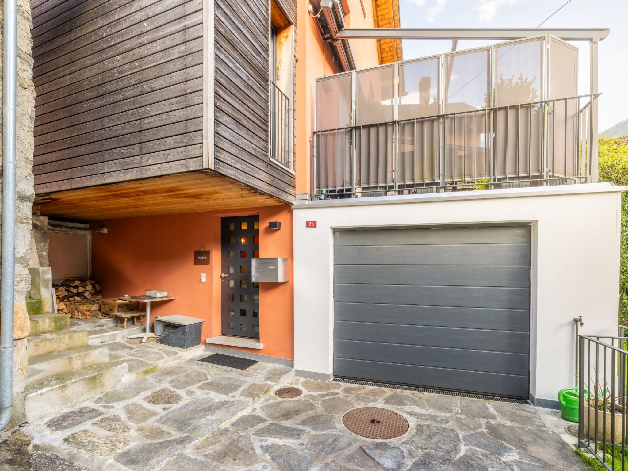 Im Außenbereich lädt eine Sonnenterrasse zum Verweilen ein. Die Garage hat einen elektrischem Torantrie. Der Zugang zum Haus ist unkompliziert gestaltet, sodass Ihr Fahrzeug direkt vor dem Haus oder in der Garage geparkt werden kann. Genießen Sie die Sonnenstrahlen und die Ruhe des Dorflebens im Freien, ein Luxus, der Ihren Aufenthalt bereichert.