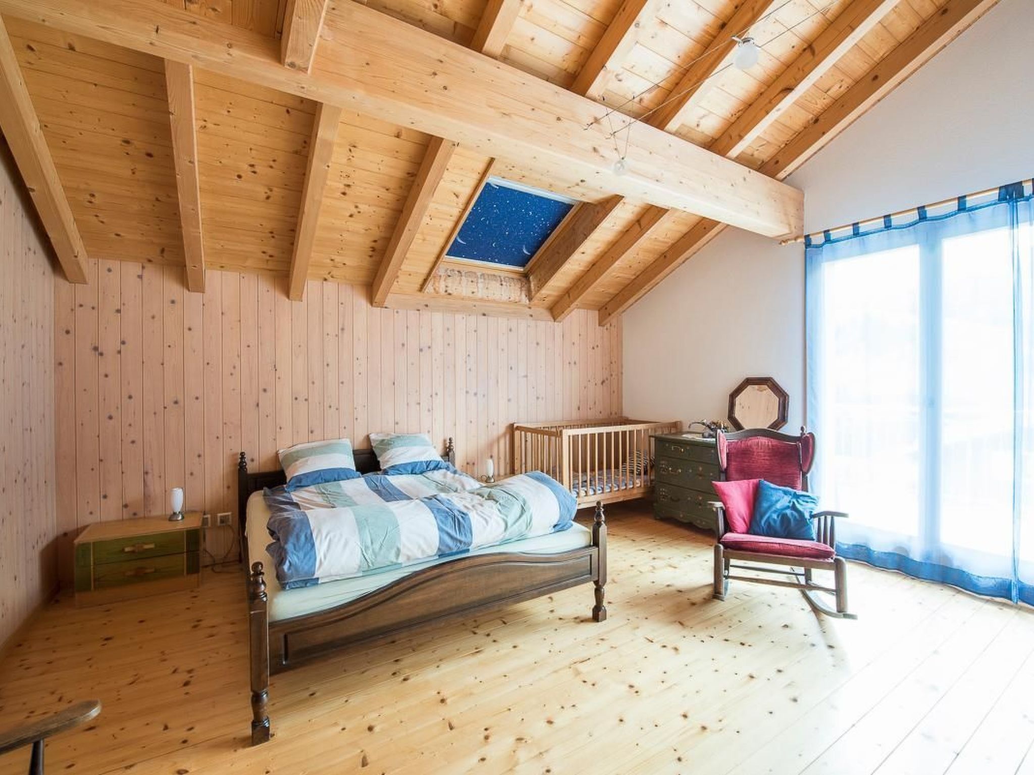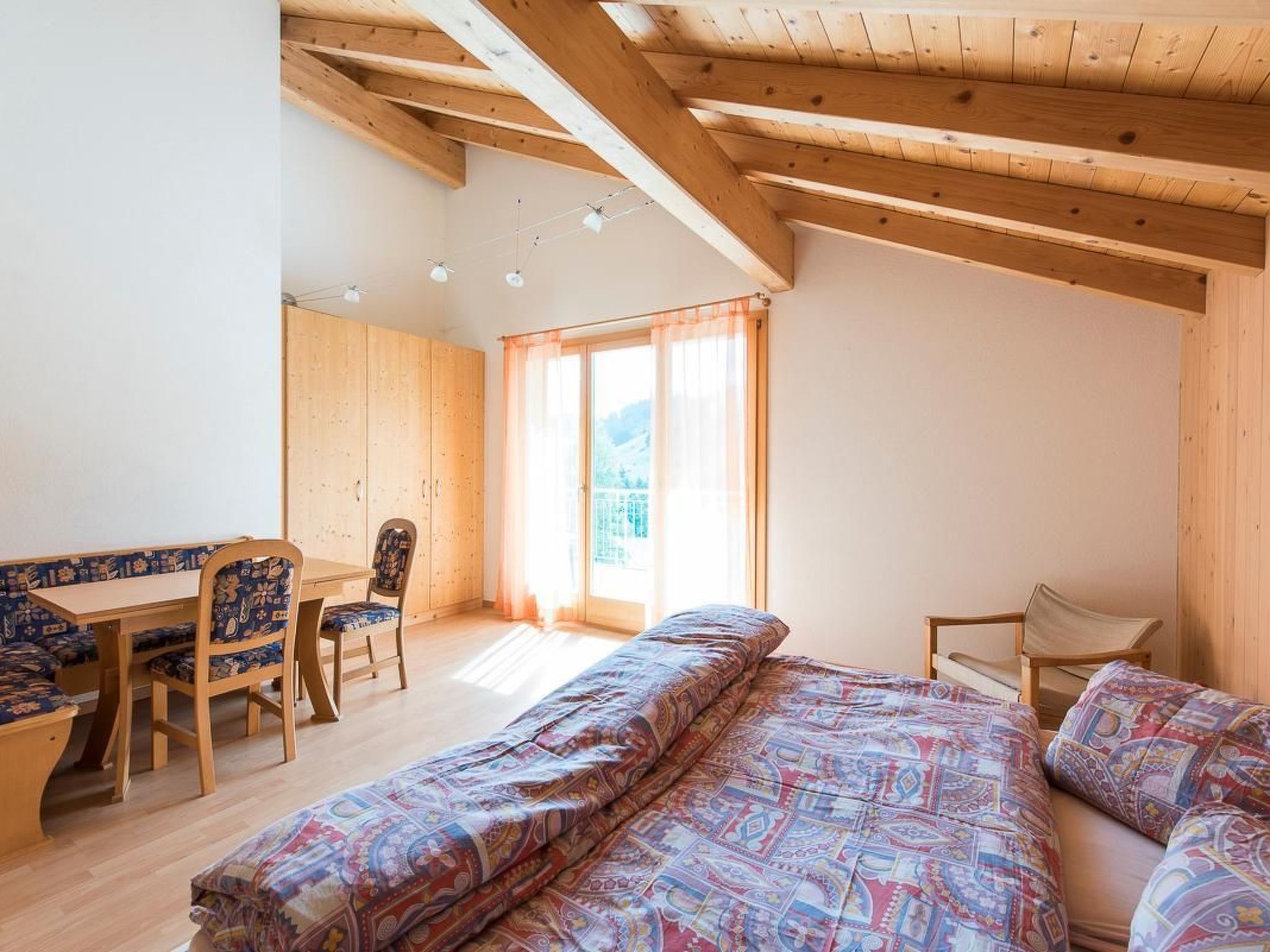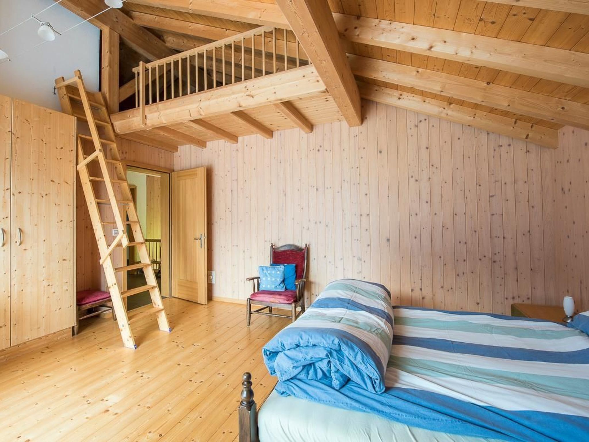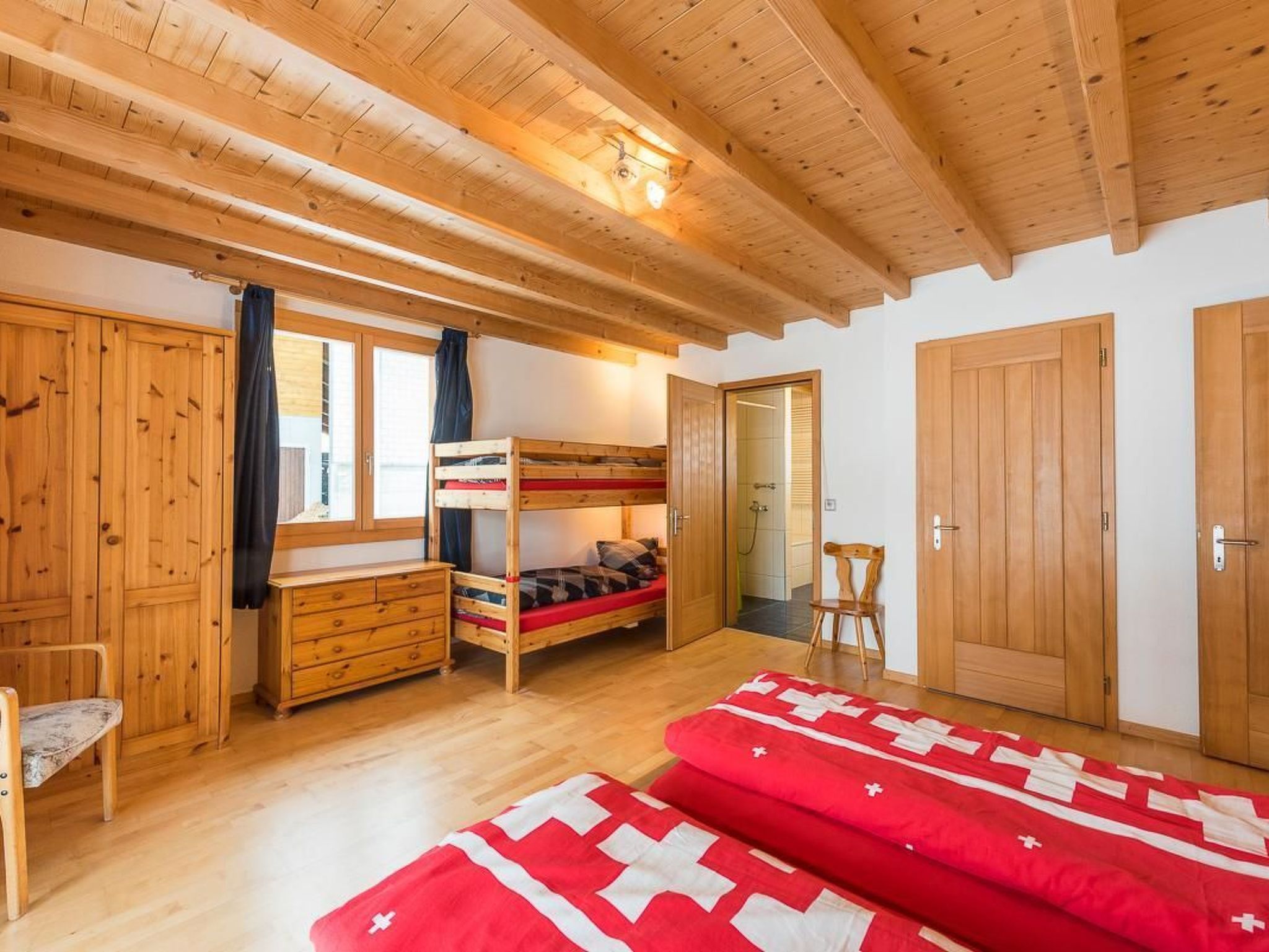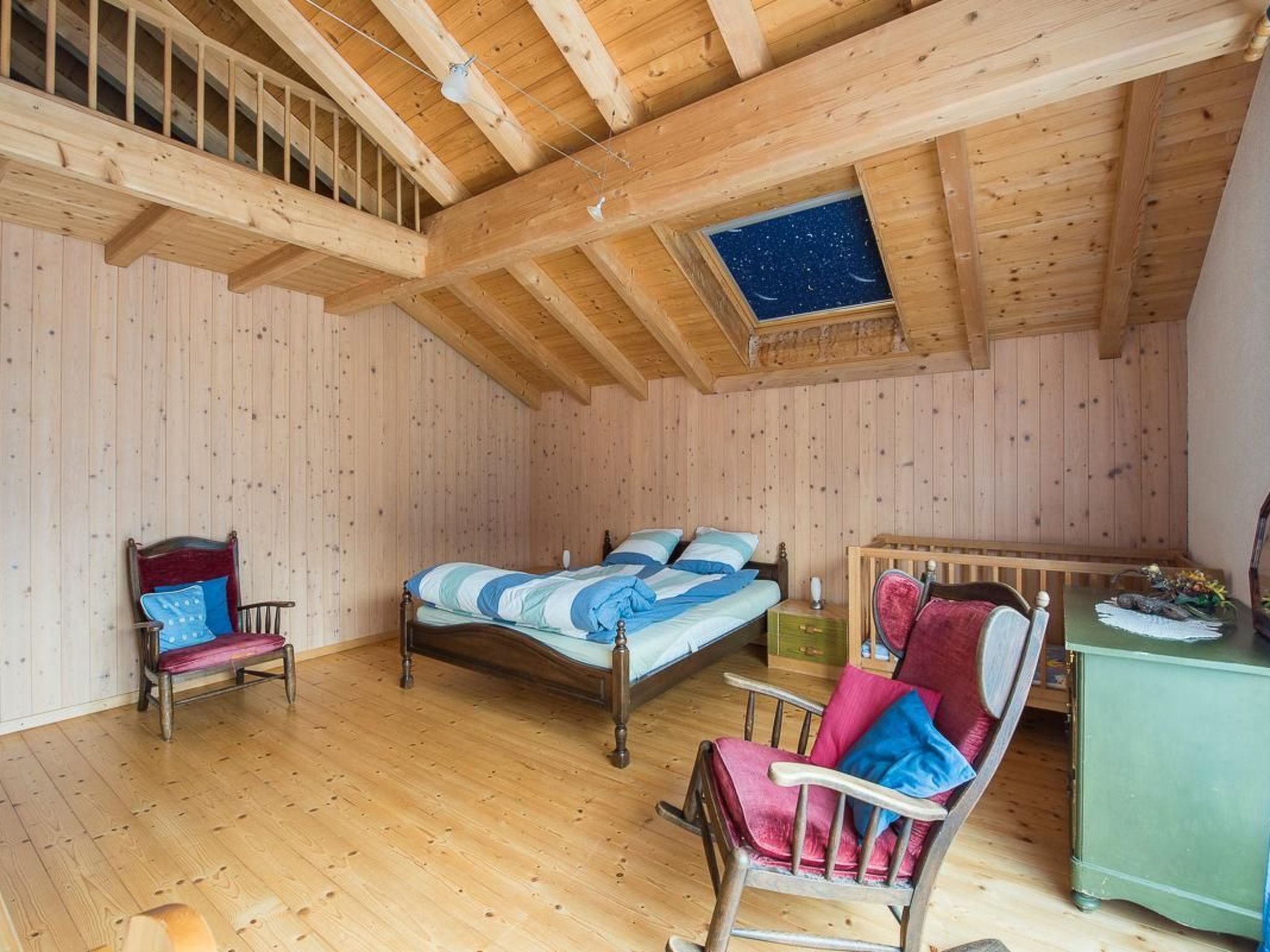 Auf Wunsch kann entweder ein separates Doppelzimmer für 2 Personen oder ein grosses Zimmer für bis zu 6 Personen dazu gemietet werden mit Doppelbett, Kinderbett und Galerie (4 Matratzen). Beide Zimmer befinden sich im OG und haben ein Etagen-WC mit Dusche, WC und Lavabo. Sofern beide Zimmer verfügbar sind, könnten zusammen mit der Wohnung Stöckli total 12 Personen beherbergt werden.