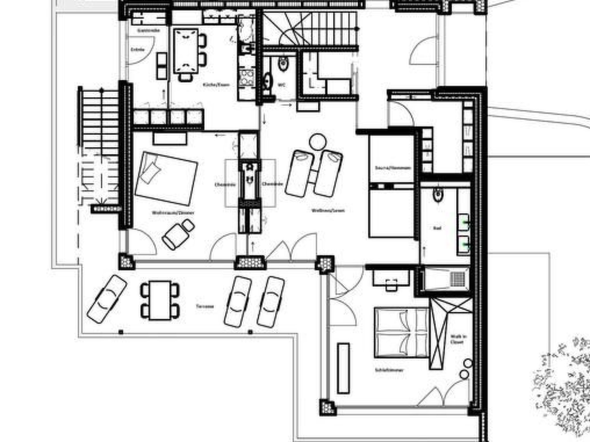 Im Inneren des Chalets erwartet Sie eine luxuriöse Ausstattung, die keine Wünsche offenlässt. Die modernen Annehmlichkeiten und die großzügige Raumaufteilung, kombiniert mit hochwertigen Materialien und edlen Möbeln, bieten einen Wohnkomfort der Extraklasse. Die Wohnzimmer sind gemütlich mit Sofa, Sesseln, einem Cheminee und einem Sofa-Bett eingerichtet, das sich bei Bedarf in zwei komfortable Betten umwandeln lässt. Im Schlafzimmer finden Sie ein Kingsize Bett, eine Ankleide, einen Pult und einen Safe. Die voll ausgestattete Küche wird ergänzt durch eine Auswahl an hochwertigen Bio-Produkten und Basisnahrungsmitteln für Ihre Selbstversorgung.