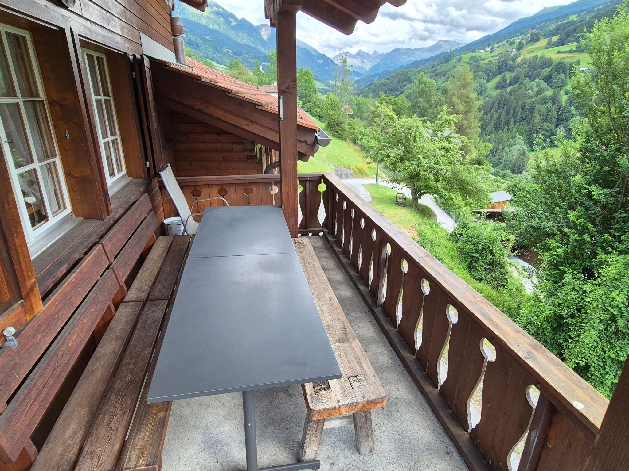 Der Außenbereich des Ferienhauses verspricht Entspannung pur. Gelegen im herrlichen Prättigau am Sonnenhang oberhalb von Küblis (804m), etwa 800m vom Dorfkern entfernt. Auf dem Gartensitzplatz können die Gäste die Seele baumeln lassen und die herrliche Aussicht genießen. Der Bahnhof liegt etwas 1200m entfernt. Im Sommer erreicht man das Ferienhaus direkt mit dem Auto und es stehen zwei Parkplätze zur Verfügung. Die steile Zufahrt eignet sich nicht für Van oder Bus. Im Winter wird im Ort geparkt und und man erreicht das Haus in 10-15 Minuten zu Fuss.