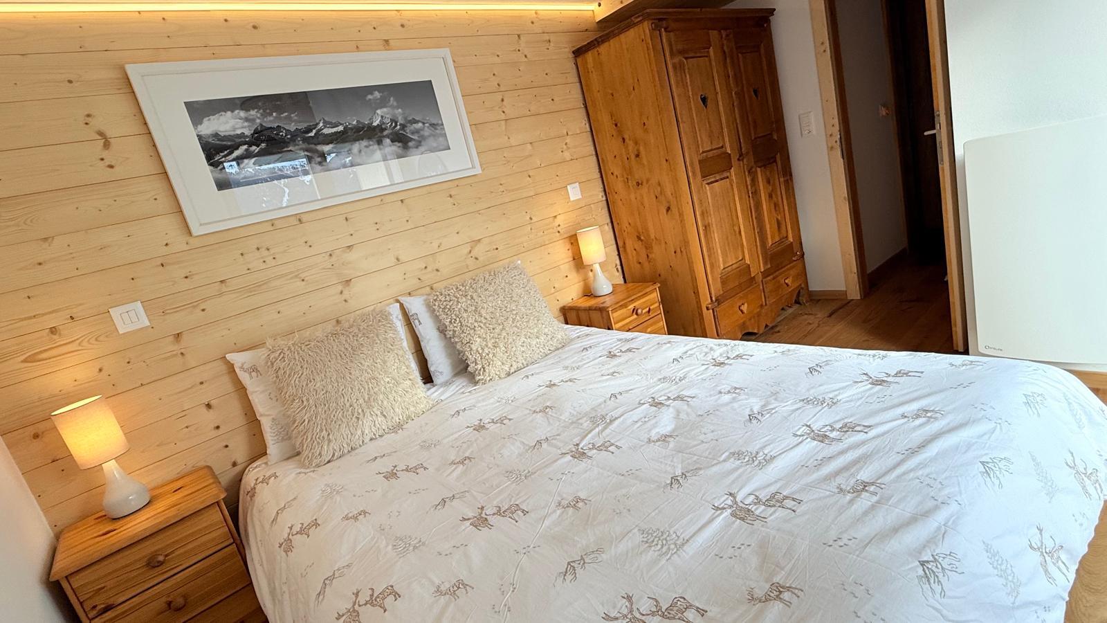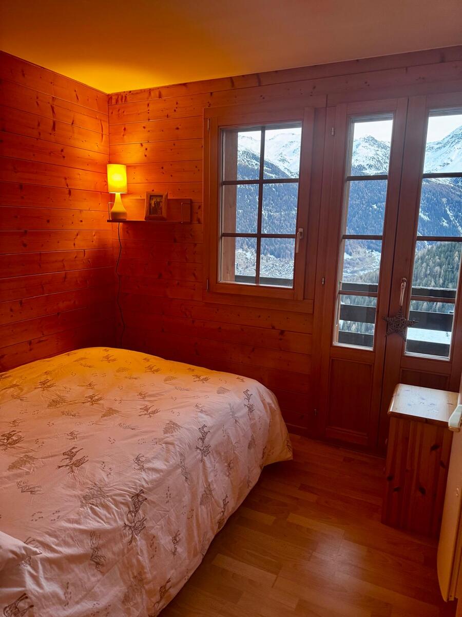 Sehr komfortables Chalet für 3-5 Personen : Wohnzimmer mit Schwedenofen - Küche mit Geschirrspülmaschine, Microwelle und Nespresso Kaffeemaschine - WC - 1 Schlafzimmer mit Doppelbett (160 x 200) - 1 Schlafzimmer mit Doppelbett (140 x 200) - 1 Schlafzimmer mit einem Bett (80 x 180) - Babyreisebett - Badezimmer/ WC - TV / DVD - Radio - Bluetooth IPod/Phone Docking Station - kostenloser Internetanschluss WIFI - Waschmaschine - Holzterrasse mit Grill und Balkon Süd-Ost - 1 Aussenparkplatz - gebaut in 2007 - Zugang über Treppen - Tiere erlaubt (Zusatz von CHF 60.-) - Nichtraucher