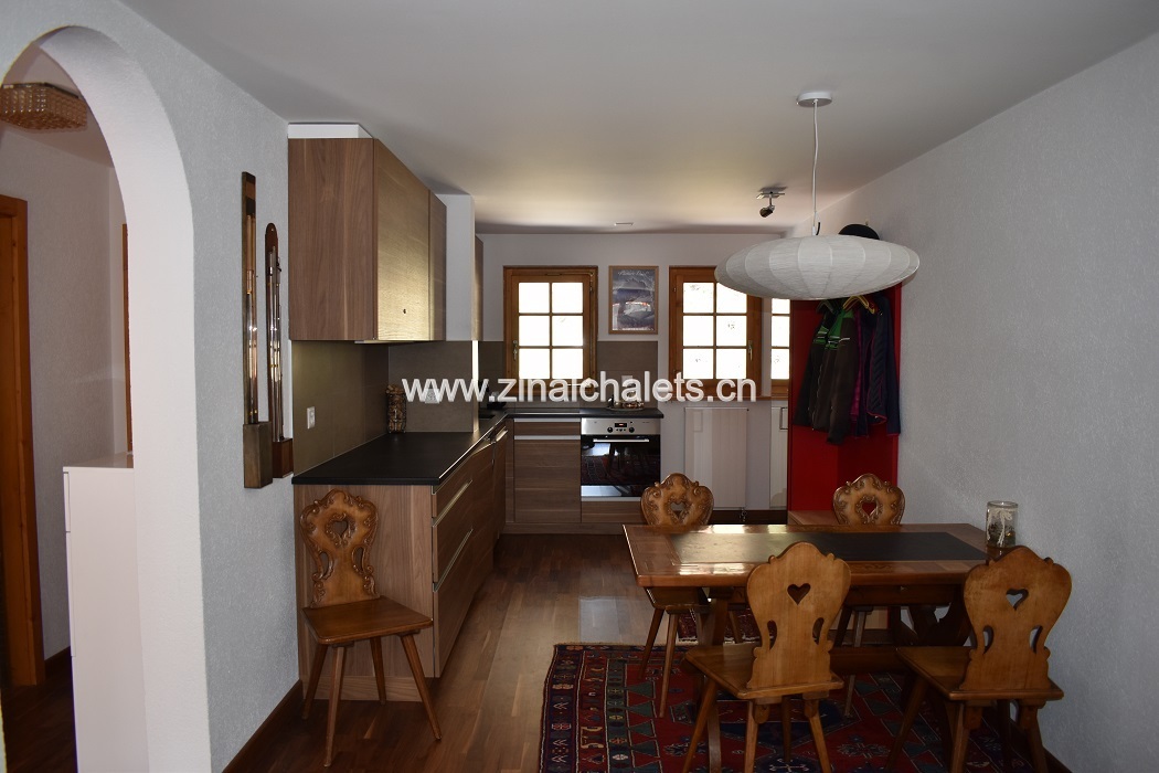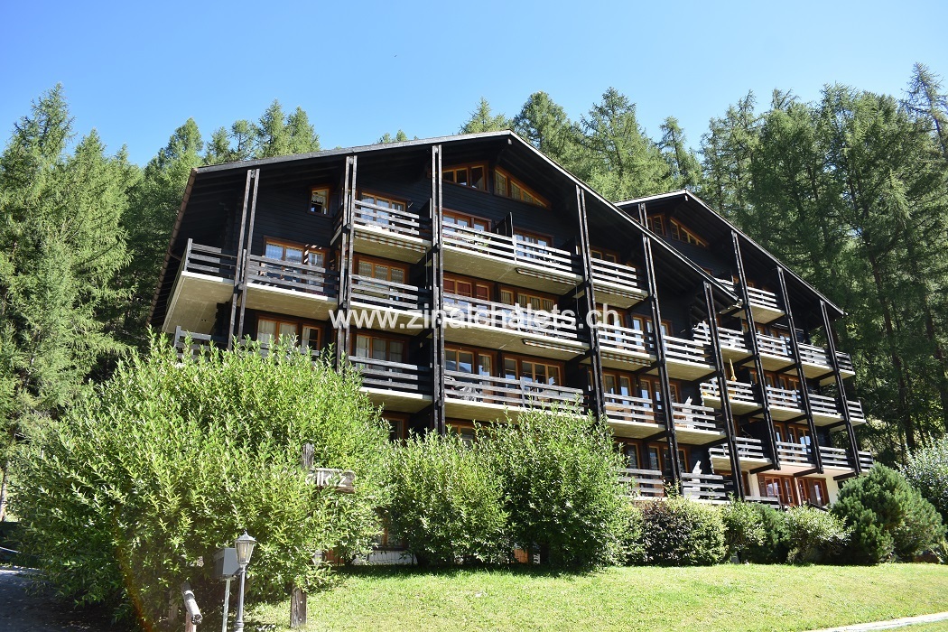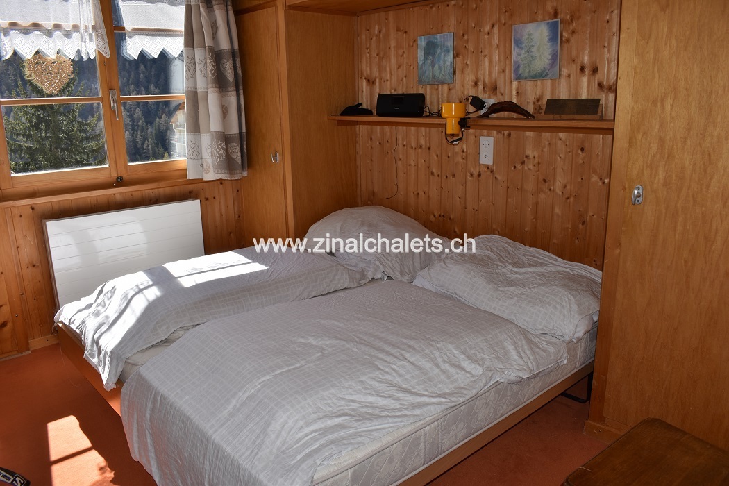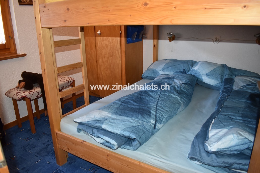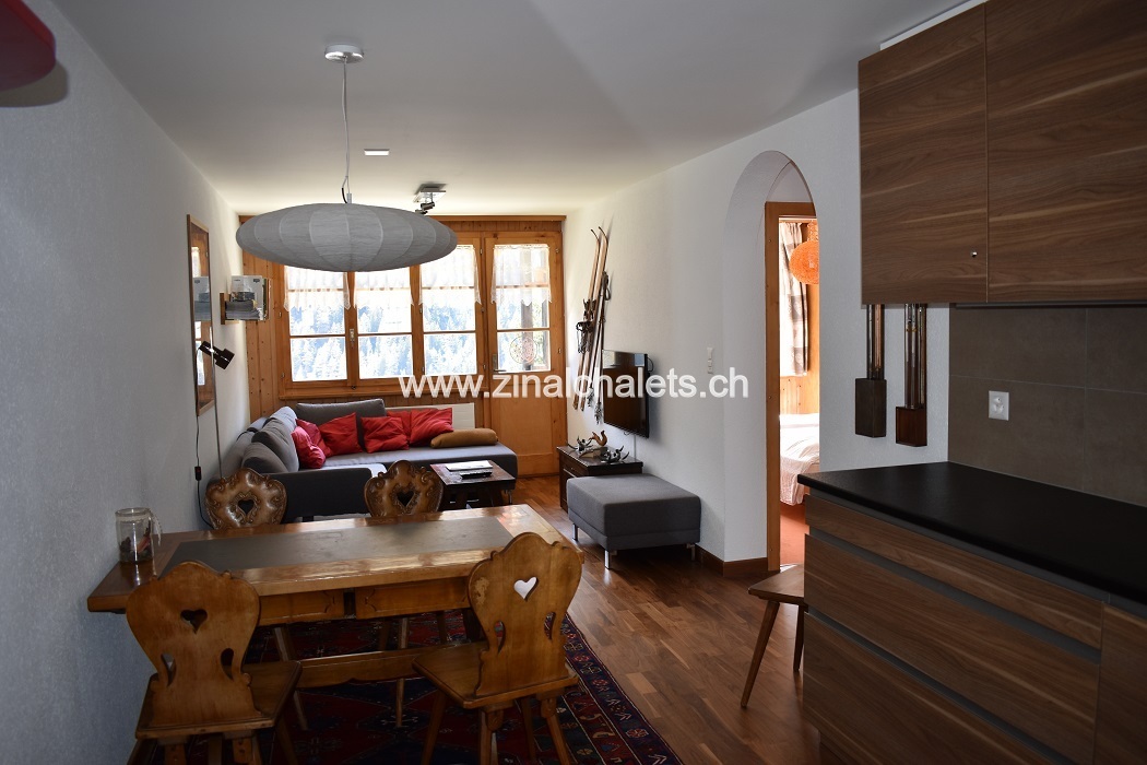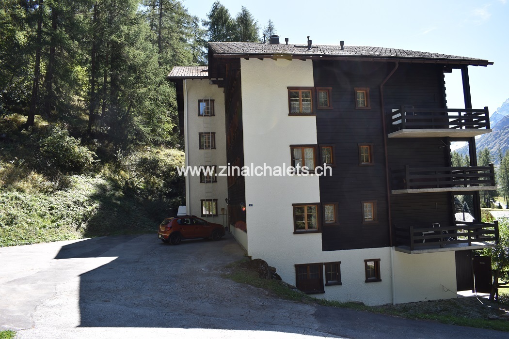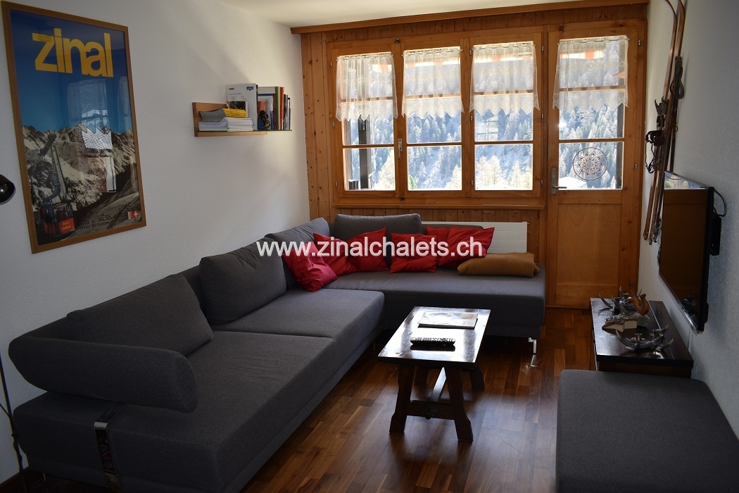 Wohnung im Gebäude in Zinal - 1 Schlafzimmer mit 2 Betten - 1 Schlafzimmer mit 2 Etagenbetten - Wohnzimmer - Küche - 1 Badezimmer - separat WC Kabelfernseher - Balkon - West Lage - Fläche : 50 m2 - 750m entfernt vom Zentrum - gemeinsamer Parkplatz (Platz ohne Garantie).