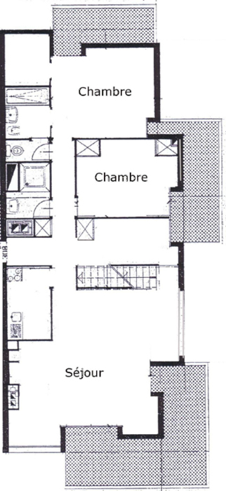 Erdgeschoss: grosses Wohnzimmer mit Essecke, offener Kamin, geschlossene Küche mit Geschirrspülmaschine, Kühlschrank, 4 Kochplatten, Ofen. Ein Ostschlafzimmer mit 2 Einzelbetten, ein Nord-Schlafzimmer mit 2 Einzelbetten und Dressing. Badezimmer mit Bad und WC. Separate Dusche. Separates WC.