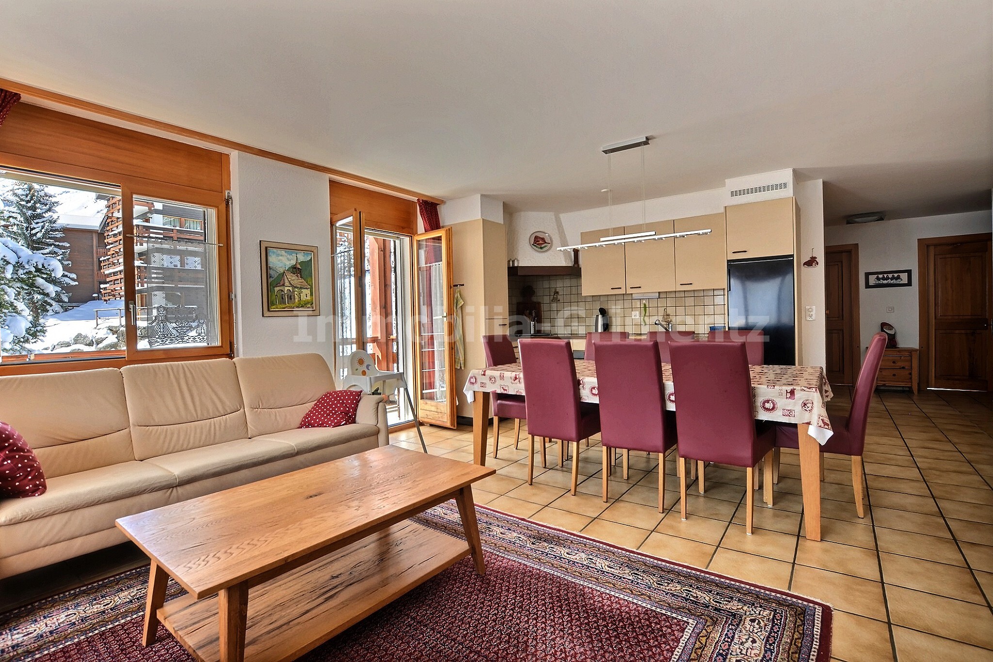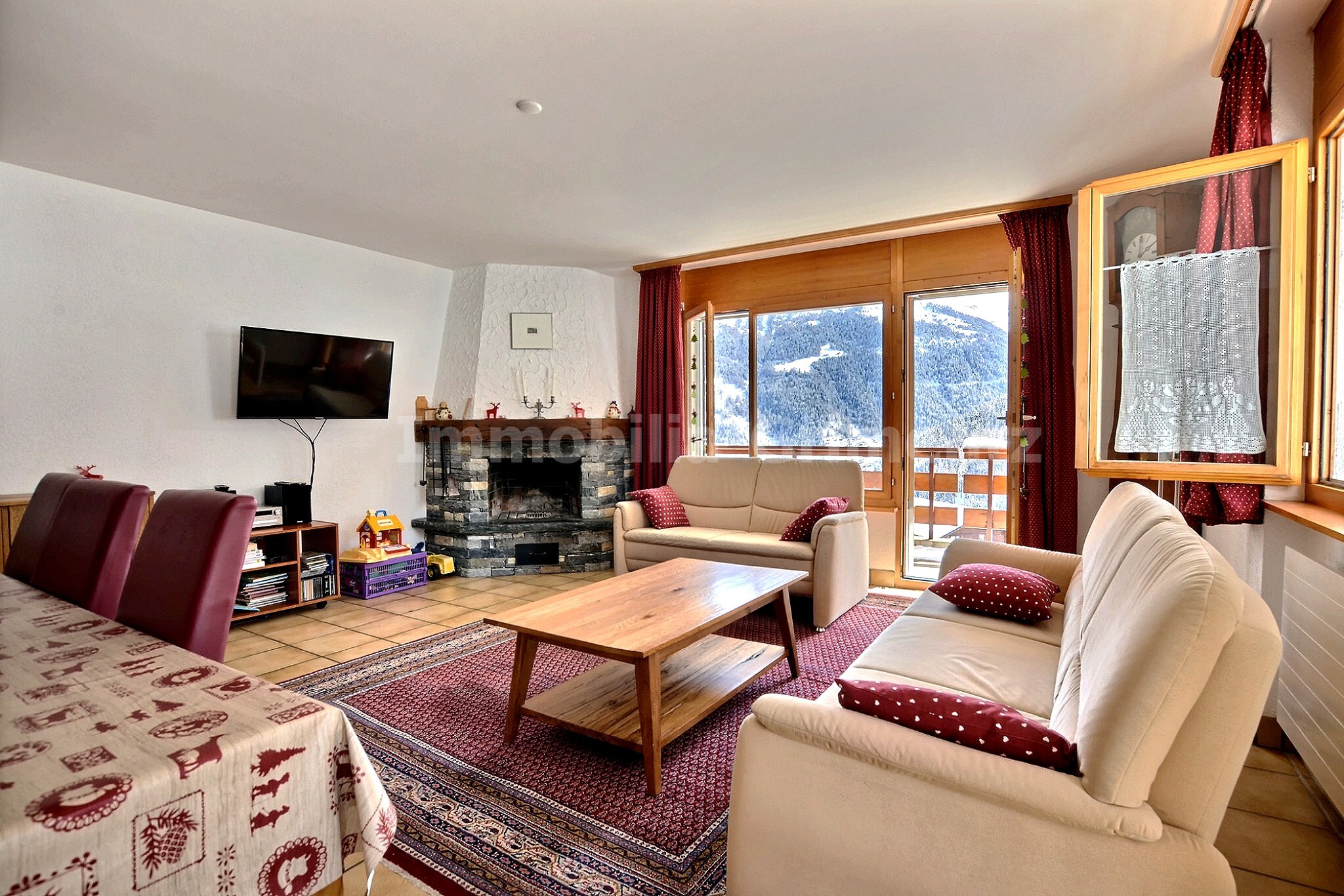 Sehr komfortable Wohnung für 7 Personen, Wohnzimmer mit Kamin, Kochnische mit Geschirrspüler, 1 Doppelbettzimmer, 11-Bettzimmer (140), 1 2-Etagenbettzimmer, Bad-Dusche-WC, Bad-WC, Balkon, 1. Stock, 1 Parkplatz, TV, Wifi, Süd-Ost-Lage.