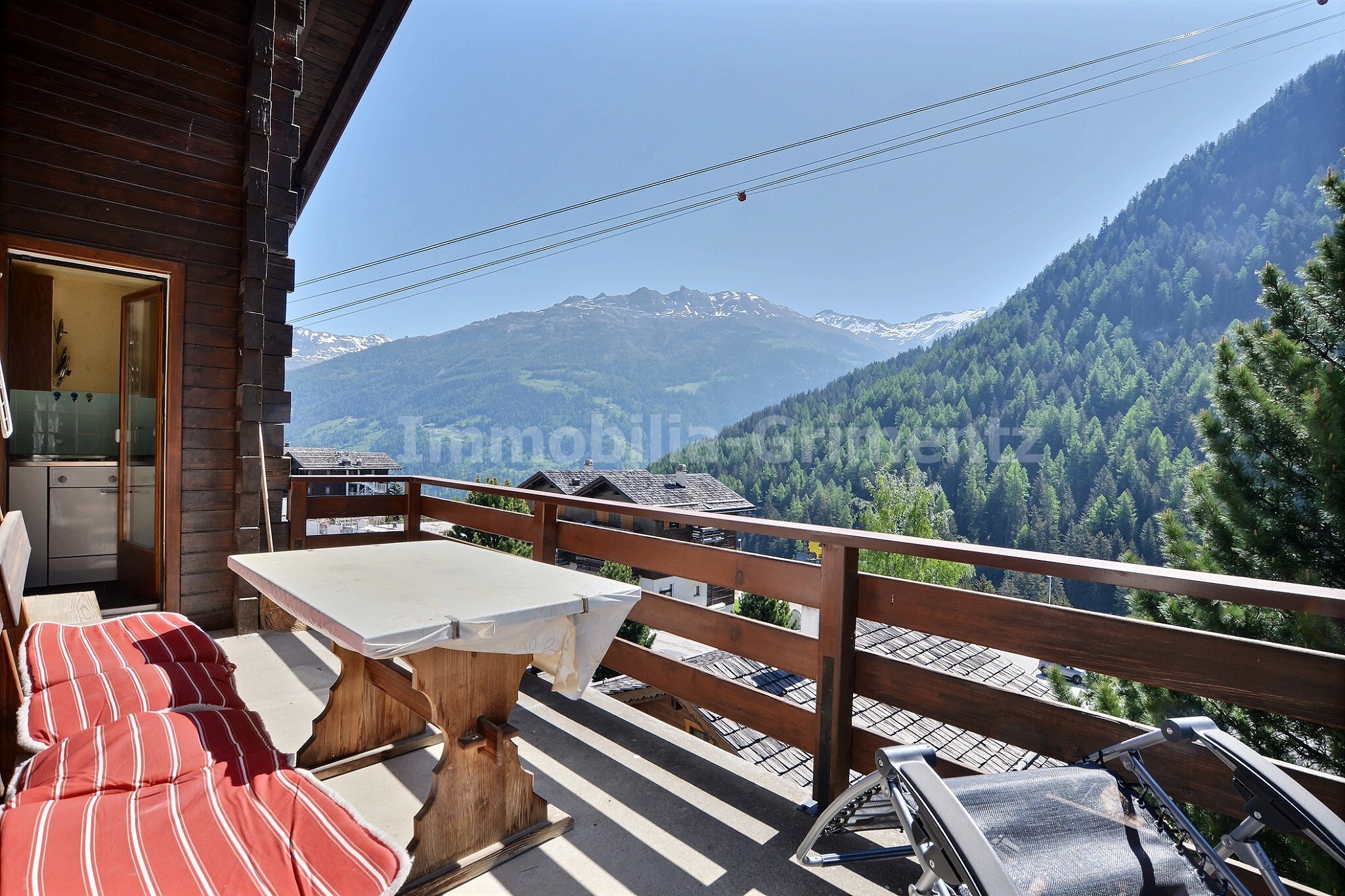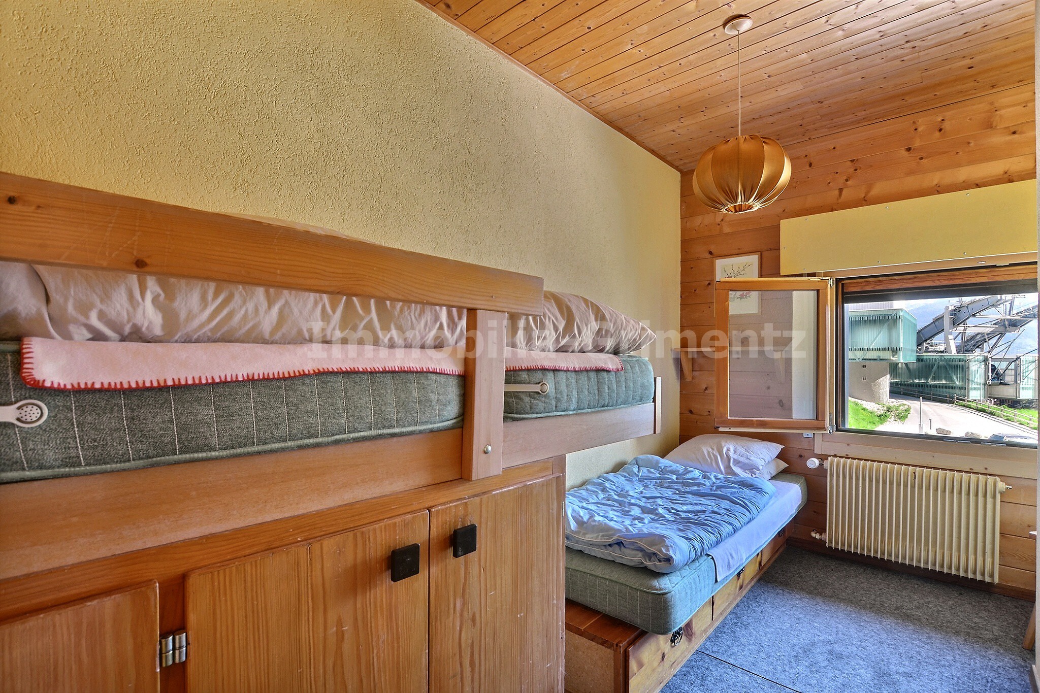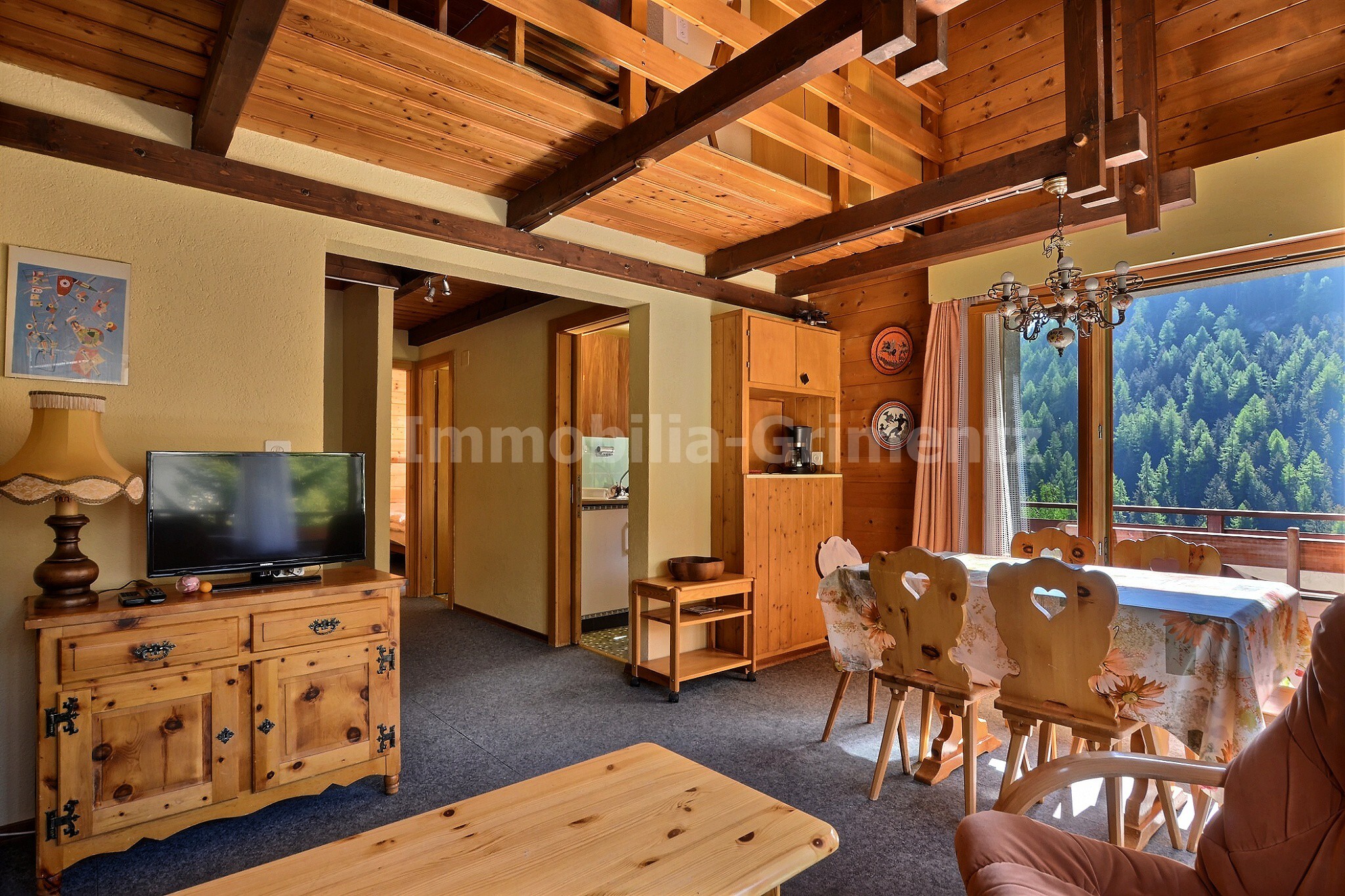 Einfache 2-stöckige Wohnung für 6 Personen, Wohnzimmer, Kochnische mit Geschirrspüler, 1 Doppelbettzimmer, 1 Etagenbettzimmer, Mezzanin mit 1 Doppelbett, Bad-WC, Balkon, 2. Stock, 1 Parkplatz, TV, kein Internet, Süd-Ost-Lage.
