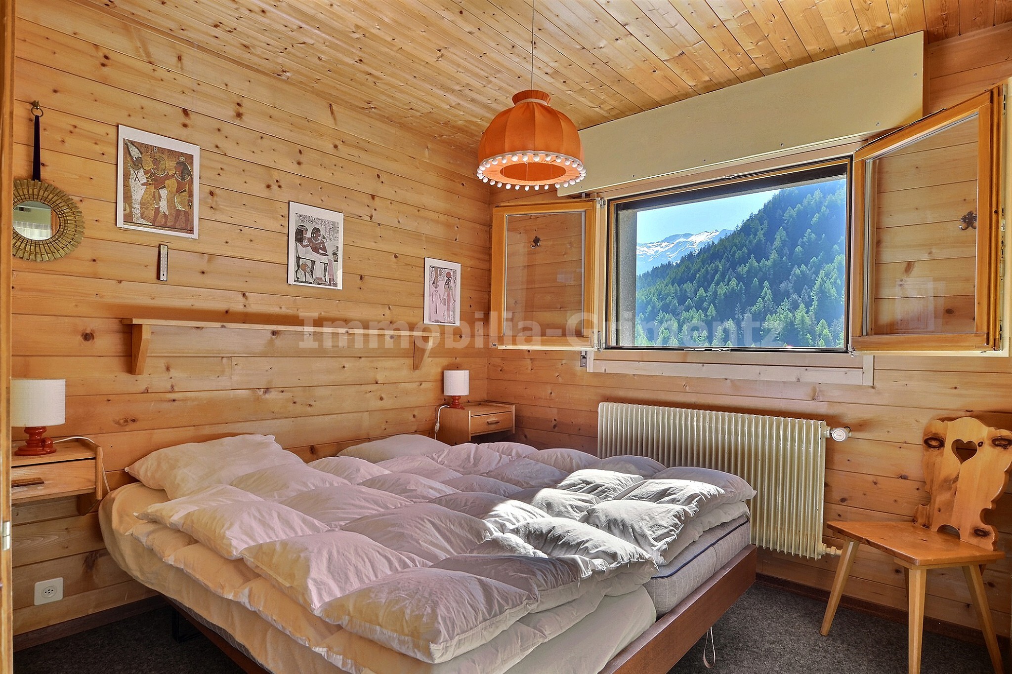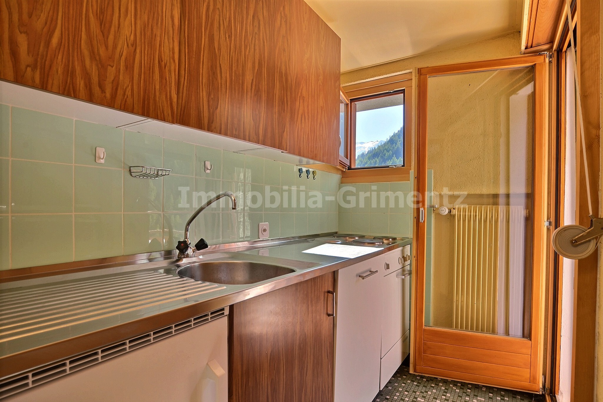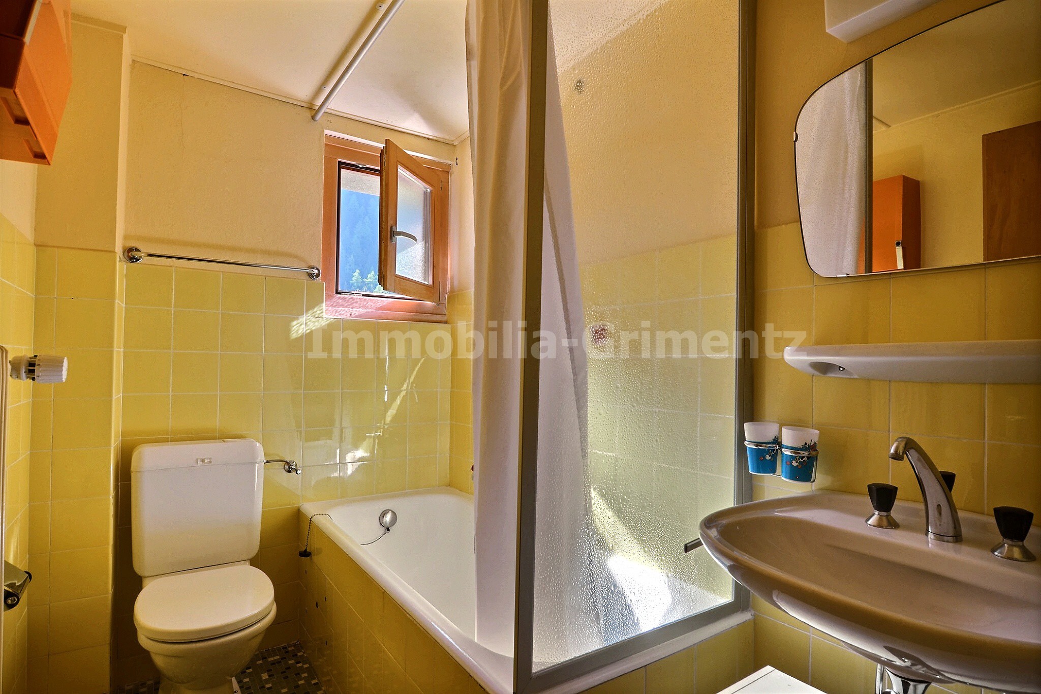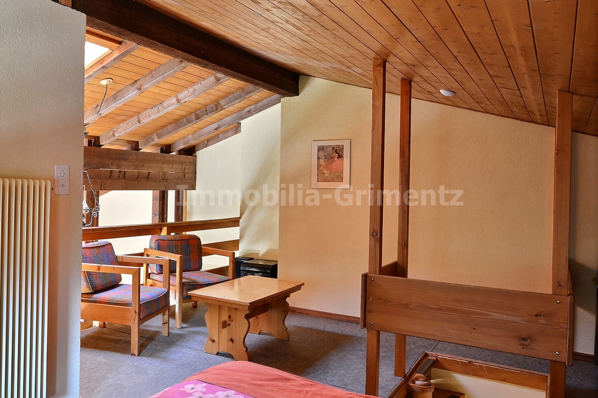 Einfache 2-stöckige Wohnung für 6 Personen, Wohnzimmer, Kochnische mit Geschirrspüler, 1 Doppelbettzimmer, 1 Etagenbettzimmer, Mezzanin mit 1 Doppelbett, Bad-WC, Balkon, 2. Stock, 1 Parkplatz, TV, kein Internet, Süd-Ost-Lage.
