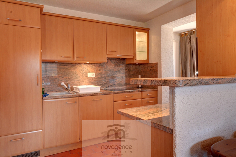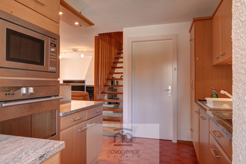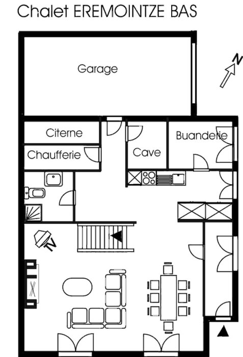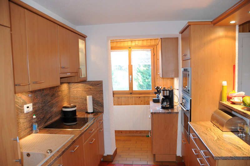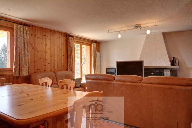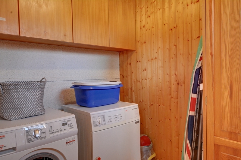Erdgeschoss : Wohnzimmer mit Kamin, Satellit-TV, DVD, Essecke, CD-Player. Offene Küche mit 4 Kochplatten, Kühlschrank, Ofen, Mikrowelle. Wäscheraum mit Waschmaschine und Trockner, HiFi-Anlage, Staubsauger. Duschezimmer mit WC. Geschlossener Garage. Südgarten, ung. 150m2 mit Stühle und Tisch, Barbecue.