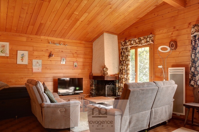 Individuel Chalet auf 2 Stockwerken mit :OBEN: Einganskorridor mit separates WC. Wohnzimmer mit Essecke, Kamin, Sofas und TV. Die Küche besteht aus 4 Kochplatten, Ofen, Kühlschrank und Mikrowellenherd.UNTER: 1 Badezimmer/WC, 2 Schlafzimmer mit 2 Einzelbetten und 1 Schlafzimmer mit 1 Etagenbett.