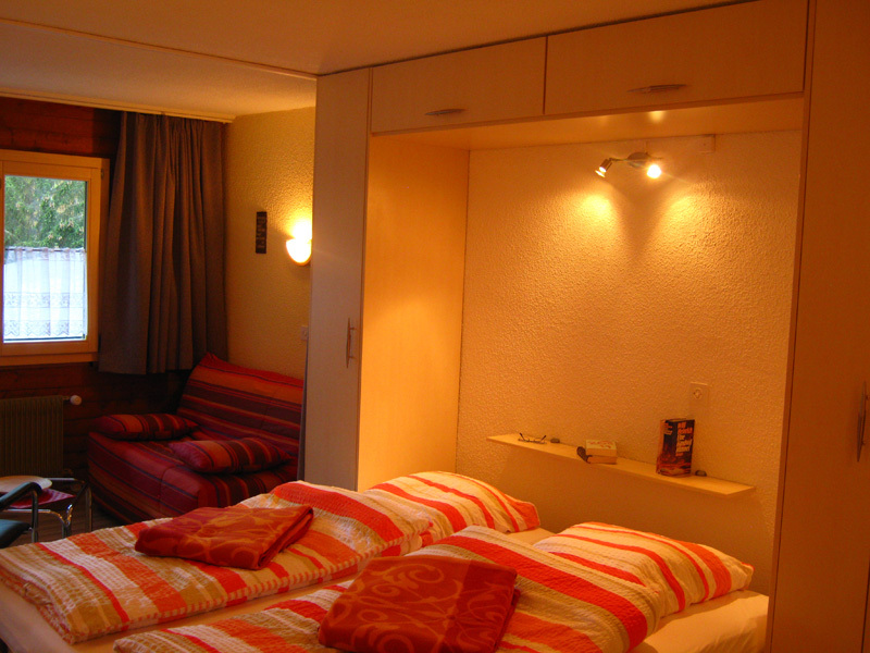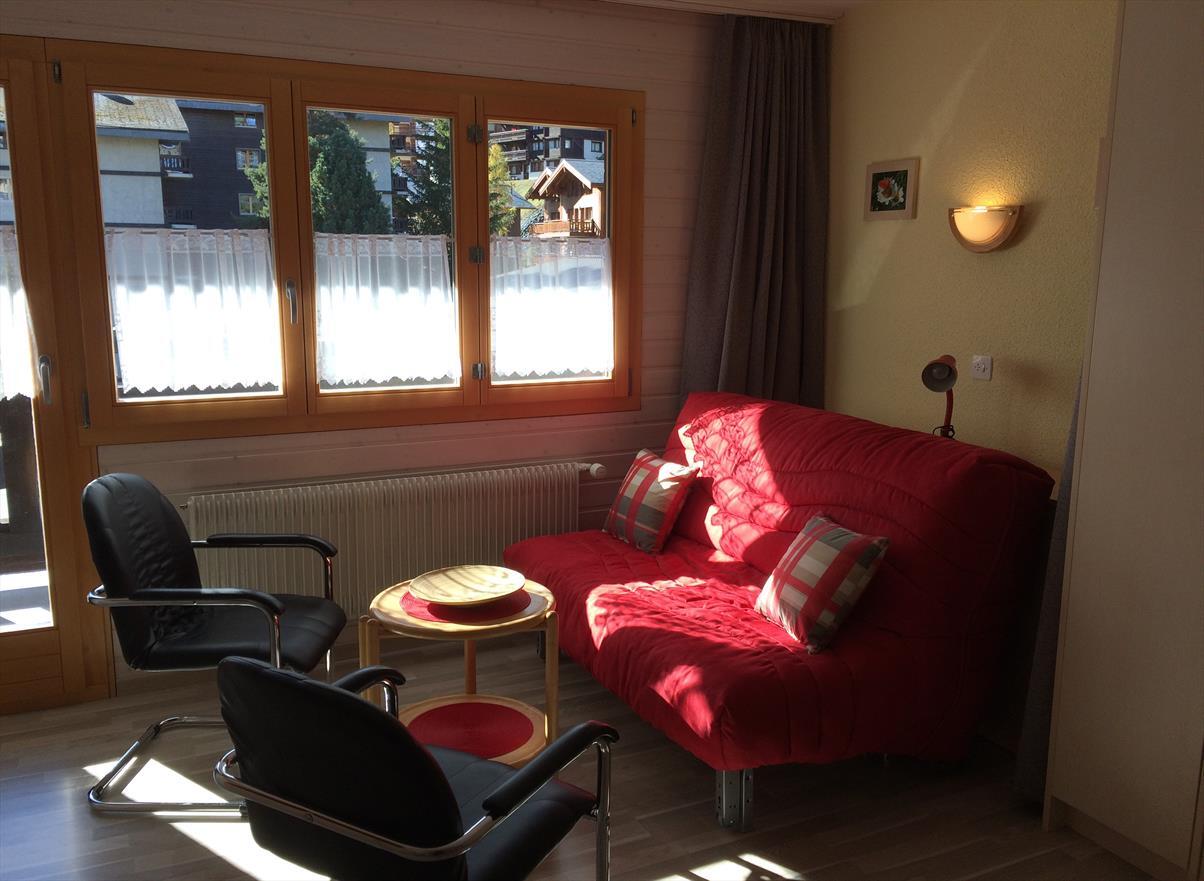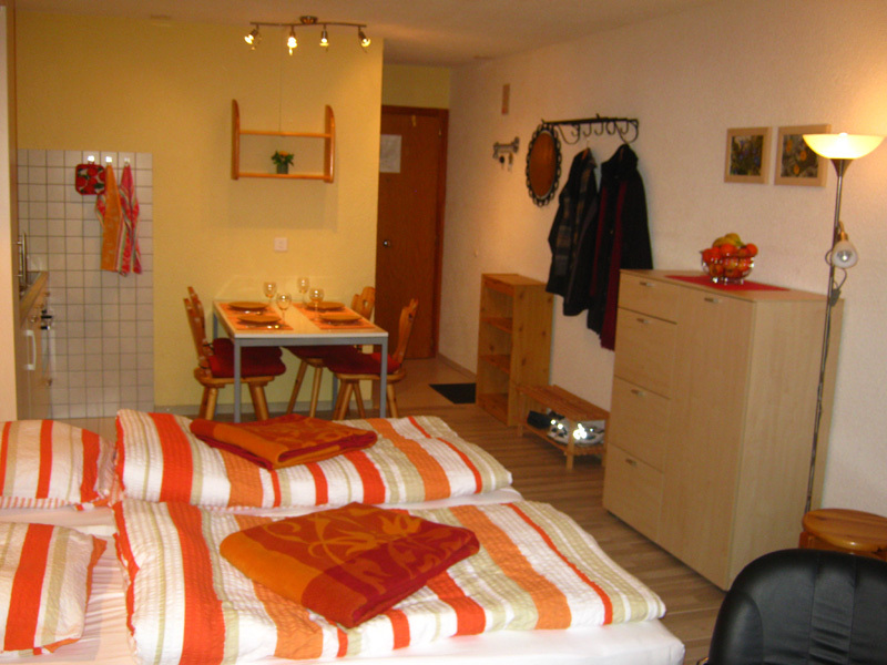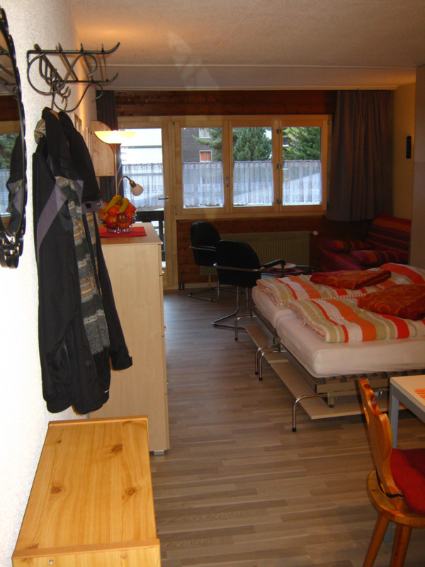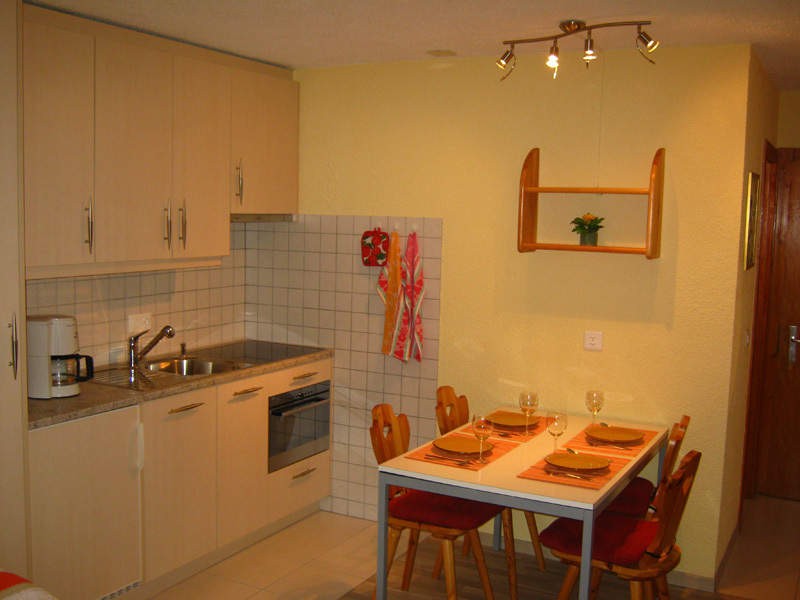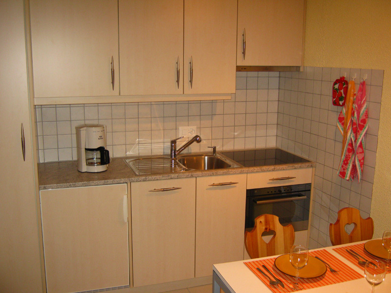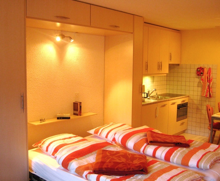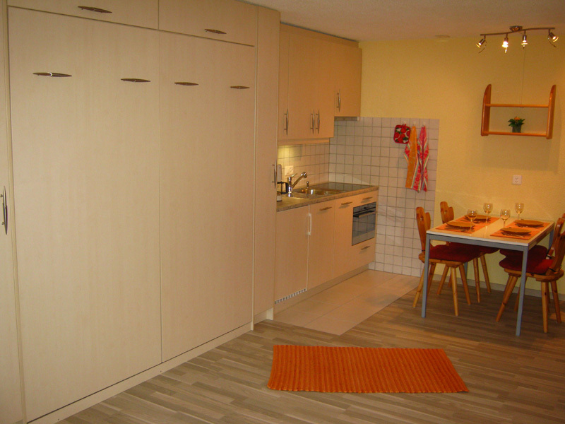 Komfortables Studio für 2-4 Personen : Wohnraum mit Sofabett (1.40 x 1.90m) + 2 Schrankbetten - Küche mit Backofen, Filterkaffee Machine, Geschirrspüler und Mikrowelle - Bad / WC - Südbalkon - TV/Radio - kostenloser Internetanschluss WIFI - Garagenstellplatz A 03 - neu renoviert in 2010 - Tiere nicht erlaubt - Nichtraucher -