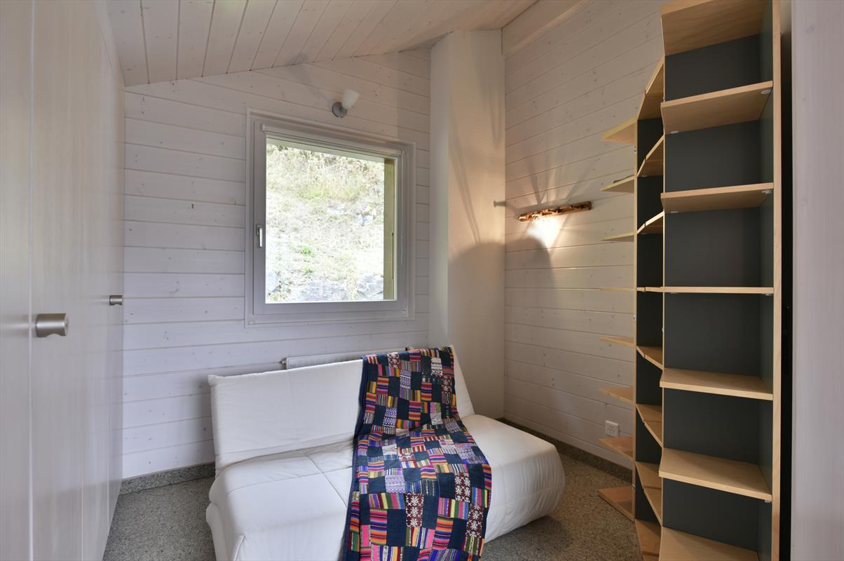 Komfortables Chalet für 4 Personen : Wohnraum - 1 Doppelbettzimmer (1.60 x 2.00m) - 1 Doppelbettzimmer (1.40 x 2.00m) - Küche mit Spülmaschine - Dusche / WC - WC - Waschmaschine - Süd-Ostterrasse und Rasen - TV - kostenloser Internetanschluss WIFI - 1 Aussenparkplatz - Tiere nur auf Anfrage erlaubt - Nichtraucher