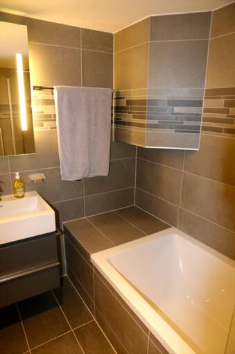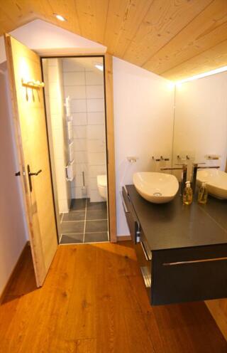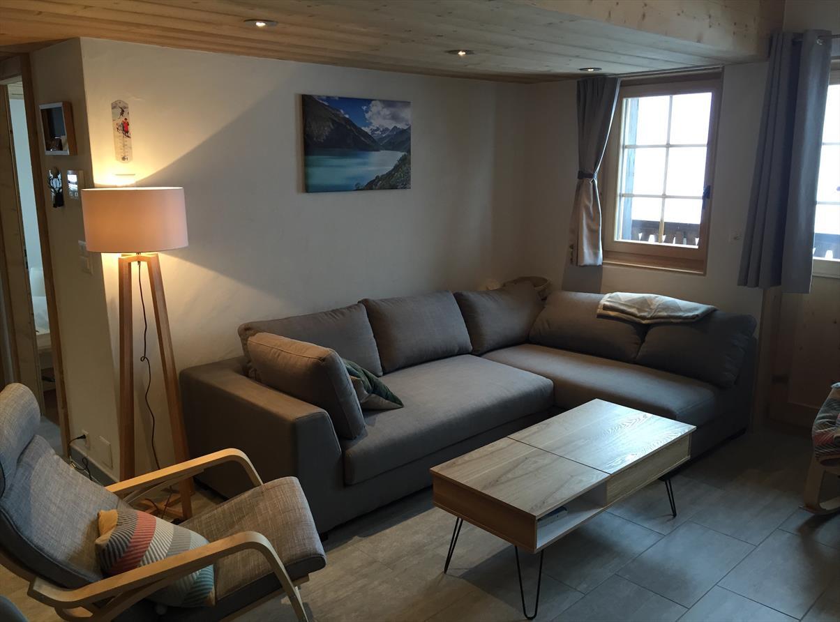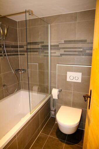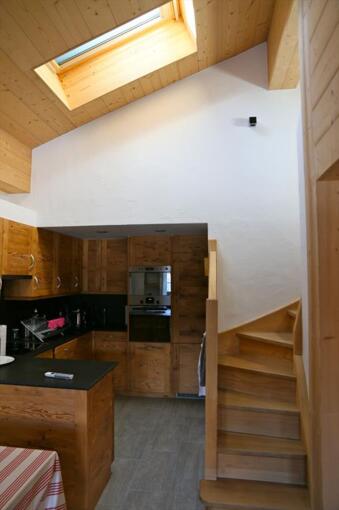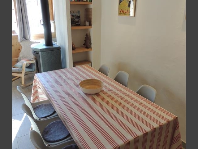Sehr komfortable neue 4-Zimmerwohnung im alten Dorf für 6-7 Personen : Wohnraum mit Holzofen - Küche mit Spülmaschine und Mikrowelle - Nespresso Kaffeemaschine - 1 Doppelbettzimmer (160/200 cm) mit privatem Dusche/WC - 1 Schlafzimmer mit1 Doppelbett mit 2 Matratzen (80/200 cm) - 1 Schlafzimmer mit 2 Stockbetten und 1 Ausziehbett (80/190 cm) - Bade / WC - Waschmaschine/Trockner - Flachbild TV - DVD - HiFi Anlage - kostenloser Internetzugang WIFI - Balkon Nord-Ost - Skifach mit Skischuhwärmer im Garage - Aufzug - 2 Plätze in der Tiefgarage - Tiere nicht erlaubt - Nichtraucher - Gebäude gebaut in 2011