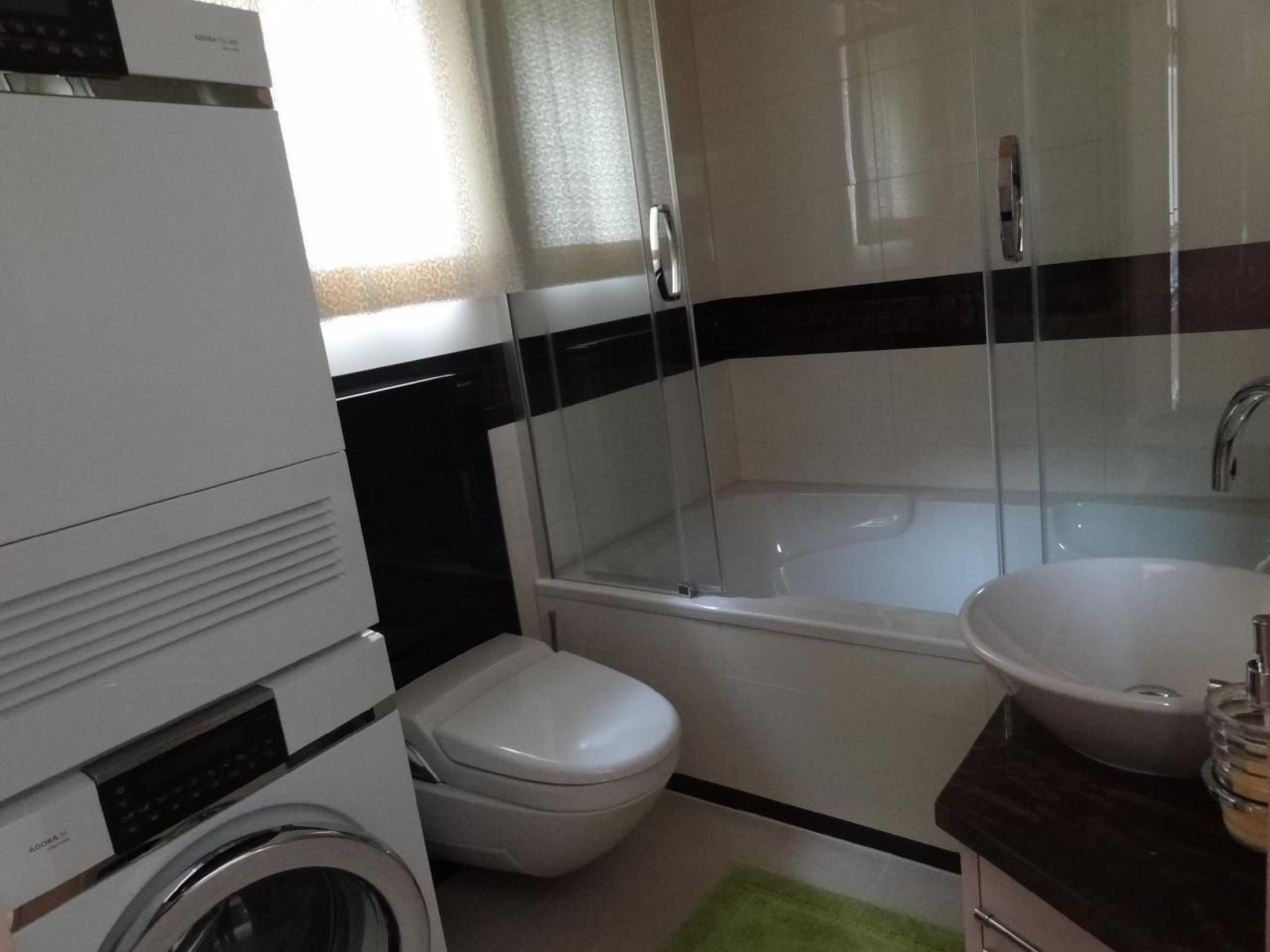 - Badezimmer mit Badewanne 110×180 cm, Waschmaschine und Tumbler, Geberit Dusch-WC, Lavabo