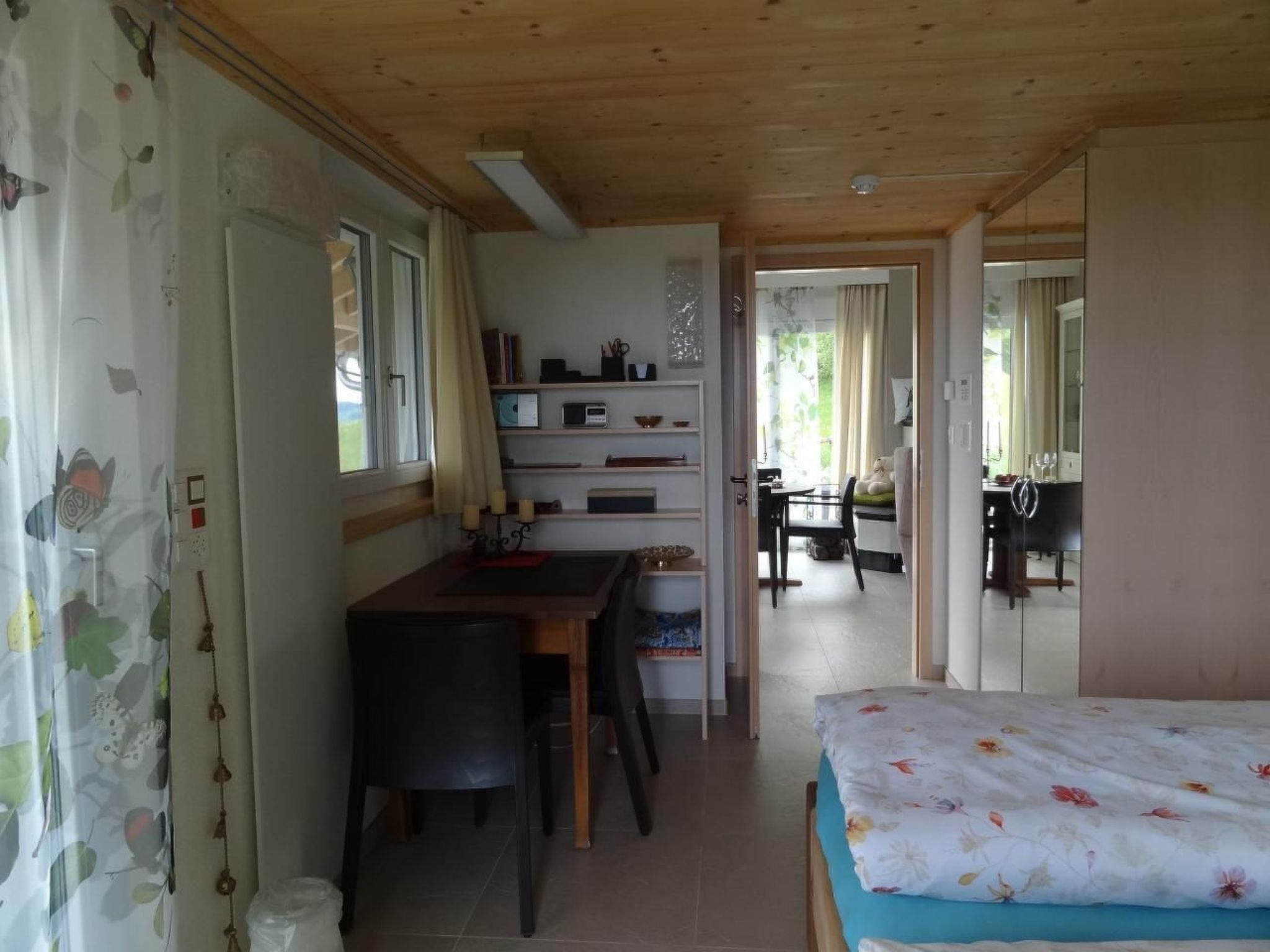Ferienhaus mit Honeymoon Suite, idyllisch am Waldrand gelegen; einsam, aber mit prächtiger Panoramasicht, ideal für Ruhe, Rückzug und Erholung in edlem Ambiente. - Vermietung wie ein Hotelzimmer mit umfangreicher Minibar, aber ohne Frühstück. Die nötigen Zutaten für ein romantisches Dinner und ein ausgiebiges Frühstück stehen jedoch in der "Minibar" bereit (im Küchenregal, im Kühlschrank und im Tiefkühler); wir senden Ihnen die Liste. - Was Sie zudem vorfinden: