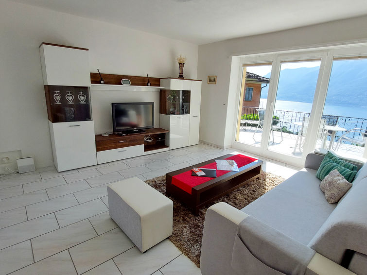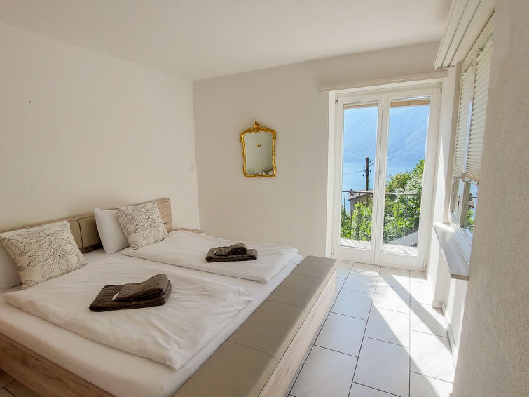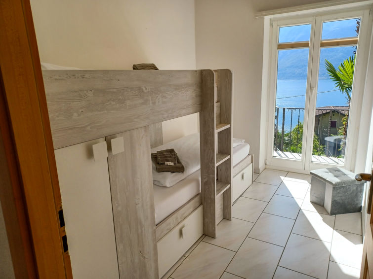 "Mulino Vecchio", 3-Zimmer-Wohnung 62 m2, im erhöhten Erdgeschoss. Objekt geeignet für 2 Erwachsene + 2 Kinder. Teilweise renoviert im Jahre 2023, komfortabel und schön eingerichtet: Wohnzimmer mit TV, Digital-TV und Flachbildschirm. Ausgang zur Terrasse. 1 Doppelzimmer mit 1 Doppelbett (1 x 160 cm, Länge 200 cm). Ausgang zum Balkon. 1 Kinderzimmer mit 1 x 1 Etagenbetten (90 cm, Länge 195 cm). Ausgang zum Balkon. Wohnküche (Backofen, 4 Glaskeramikplatten, Toaster, Wasserkocher, elektrische Kaffeemaschine, Kapseln für die Kaffeemaschine (Nespresso mitbringen)). Dusche/WC. E-Heizung. Terrasse 25 m2. Terrassenmöbel, Liegestühle (1). Sehr schöne Panoramasicht auf den See und die Berge. Bitte beachten: geeignet für Familien. Nichtraucher-Unterkunft. 1 kleines Haustier/Hund erlaubt. Eigener Eingang. NL-00007346