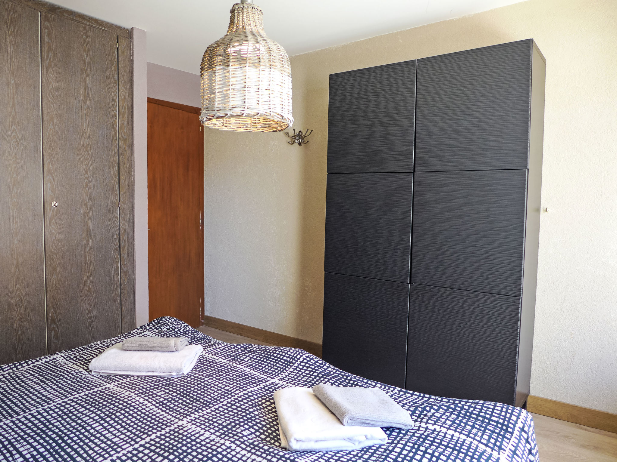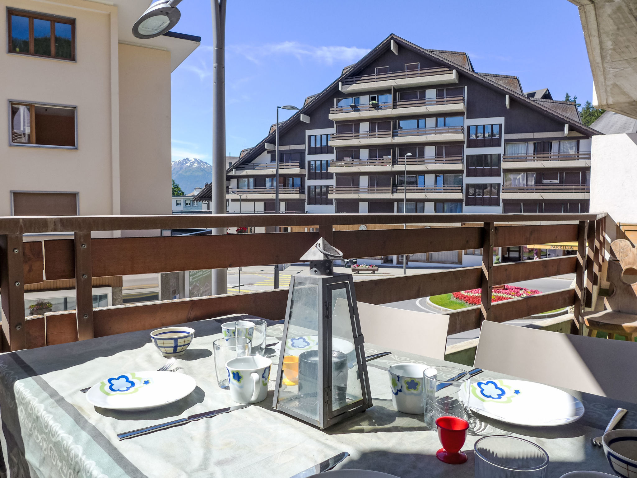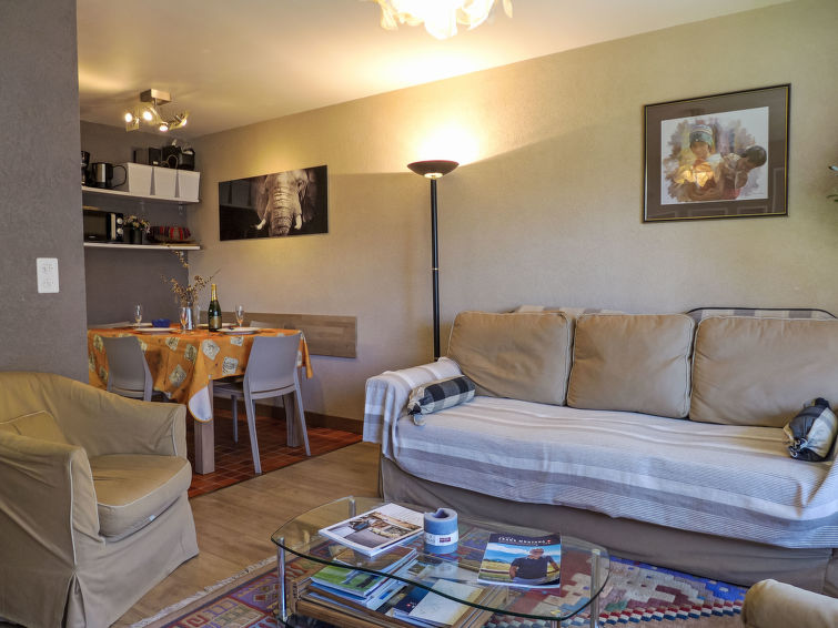"Immeuble Rond-Point Apt. 11", 2-Zimmer-Wohnung 46 m2 im 1. Stock, Südlage. Wohn-/Esszimmer, Richtung Süden mit 1 Doppeldiwanbett (160 cm, Länge 190 cm), Essecke und Kabel-TV. Ausgang zum Balkon. 1 Zimmer, Richtung Süden mit 2 Betten (90 cm, Länge 200 cm). Ausgang zum Balkon. Offene Küche (3 Kochplatten, Backofen, Mikrowelle, elektrische Kaffeemaschine, Racletteofen, Fondue Set (Käse)) mit Esstisch. Bad/Bidet/WC. Ölheizung. Balkon 8 m2, Südlage. Balkonmöbel. Seitliche Sicht auf die Berge und die Ortschaft. Zur Verfügung: Internet (Wireless LAN). Garage Nr. 11. Bitte beachten: Nichtraucher-Unterkunft.