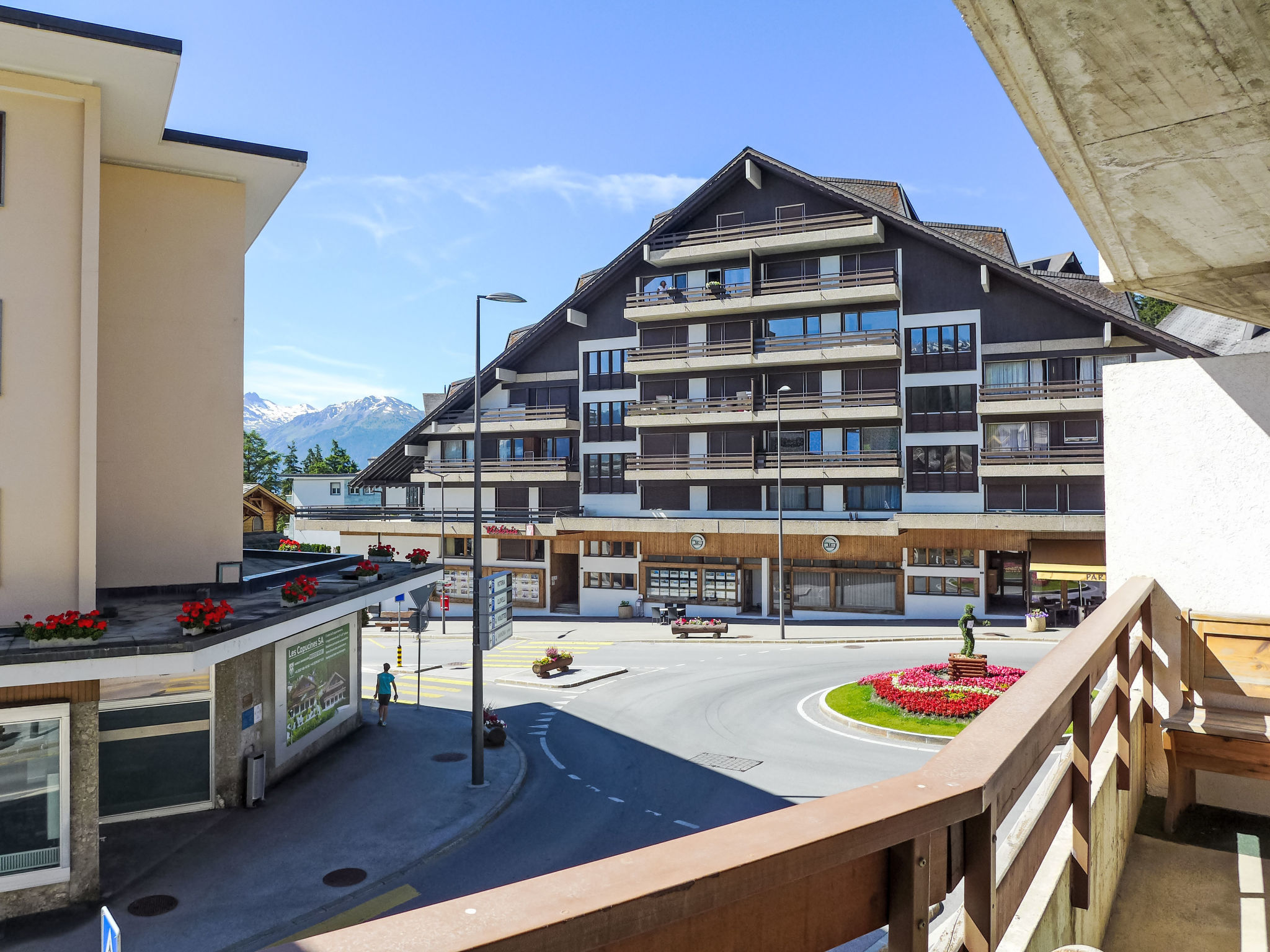 Mehrfamilienhaus "Rond-Point", auf 3 Stockwerken, Baujahr 1976. Im Ortszentrum von Montana, zentrale, belebte Lage, 600 m vom See, 400 m vom Skigebiet, an einer Hauptstrasse, Richtung Süden. Im Hause: Fahrstuhl, Skiraum, Zentralheizung, Waschmaschine, Wäschetrockner (zur Mitbenutzung, extra), Trockenraum. Gemeinschaftsgarage, öffentliches Parkhaus in 50 m, extra. Parkplatz/Garage nur für kleine - mittlere Fahrzeuge geeignet. Maße: Höhe 175 cm Breite 200 cm. Einkaufsgeschäft, Supermarkt 20 m, Restaurant, Bar 10 m, Bäckerei 20 m, Café 10 m, Bushaltestelle "Ycoor" 250 m, Bahnstation "Funiculaire Montana Gare" 500 m, Badesee "Moubra" 1.4 km, See Grenon 600 m. Golfplatz (18 Loch) 1.9 km, Skisportanlagen 400 m, Langlaufloipe 1.4 km, Eisfeld 300 m, Kinderspielplatz 400 m. Nahe gelegene Sehenswürdigkeiten: Casino 250 m. Bitte beachten: Gratis Skibus.