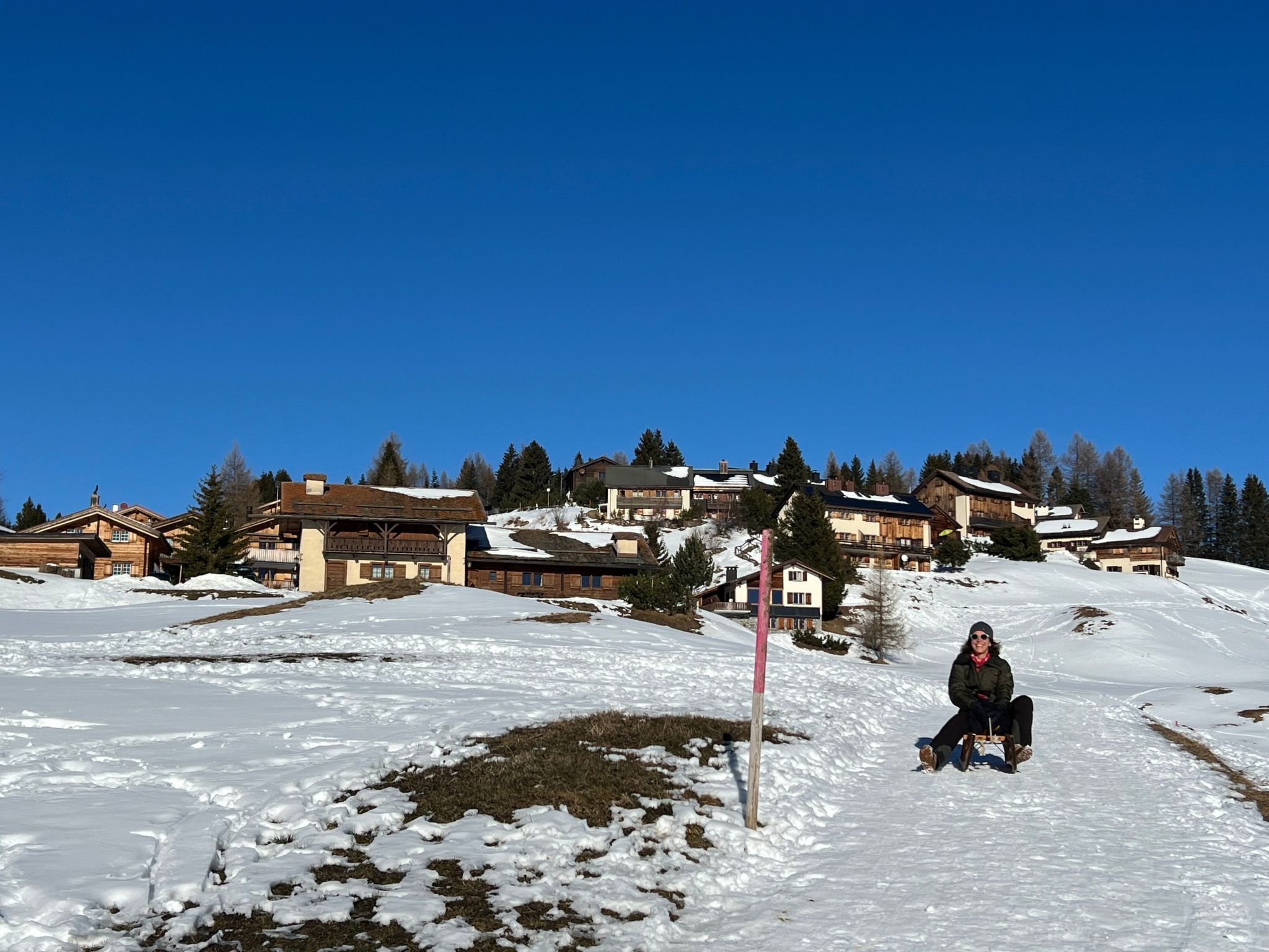 Das Chalet liegt auf einer Sonnenterrasse im ehemaligen Maiensäss Dorf Sporz oberhalb von Lenzerheide.