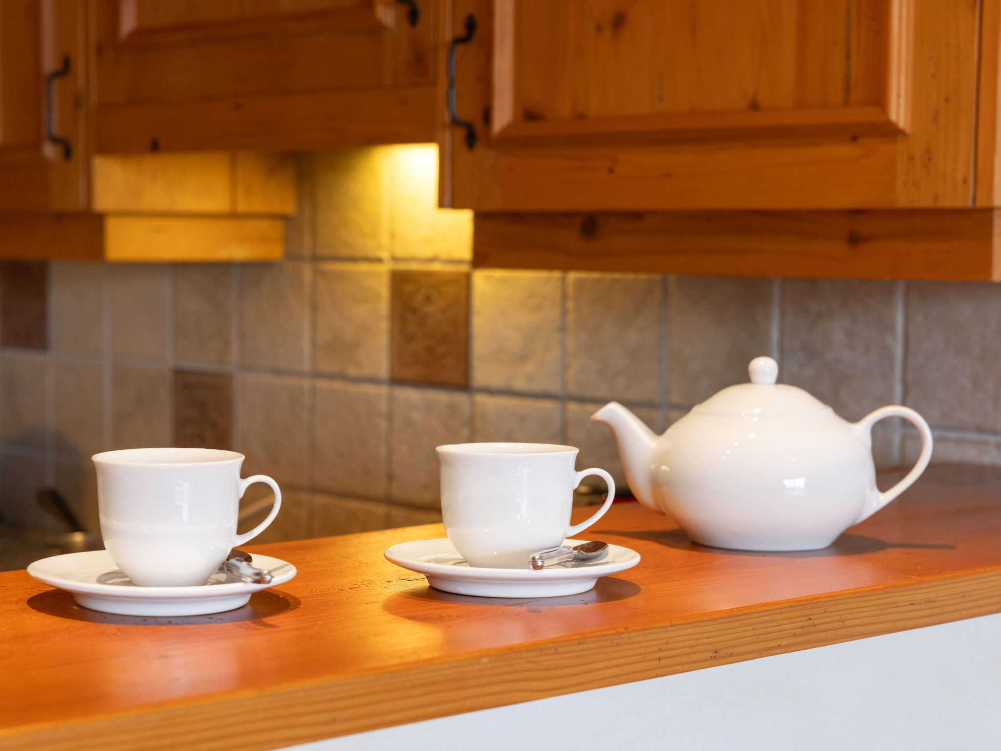 "Résidence Le Chalet 5", 2-Zimmer-Wohnung 68 m2 im 1. Stock. Objekt geeignet für 2 Erwachsene + 2 Kinder. Sehr komfortabel eingerichtet: Wohn-/Esszimmer mit Panoramafenster Richtung Süden mit 1 Diwanbett (140 cm, Länge 200 cm), offenem Kamin, Kabel-TV und elektrischem Rollladen. Ausgang zum Balkon. 1 Zimmer mit 2 Betten (90 cm, Länge 190 cm). Ausgang zum Balkon. Wohnküche (Backofen, Geschirrspüler, 4 Glaskeramikplatten, Toaster, Wasserkocher, Mikrowelle, Tiefkühler, elektrische Kaffeemaschine, Kapseln für die Kaffeemaschine (Nespresso) extra, Racletteofen, Fondue Set (Chinoise)) mit Bar. Bad/WC, Dusche/WC. Grosser Balkon 15 m2, Südlage. Balkonmöbel. Sehr schöne Sicht auf die Berge. Zur Verfügung: Bügeleisen, Haartrockner. Internet (WLAN, gratis). Garage Nr. G (1 Auto), Höhe 213 cm, Breite 239 cm. Bitte beachten: Nichtraucher-Unterkunft.