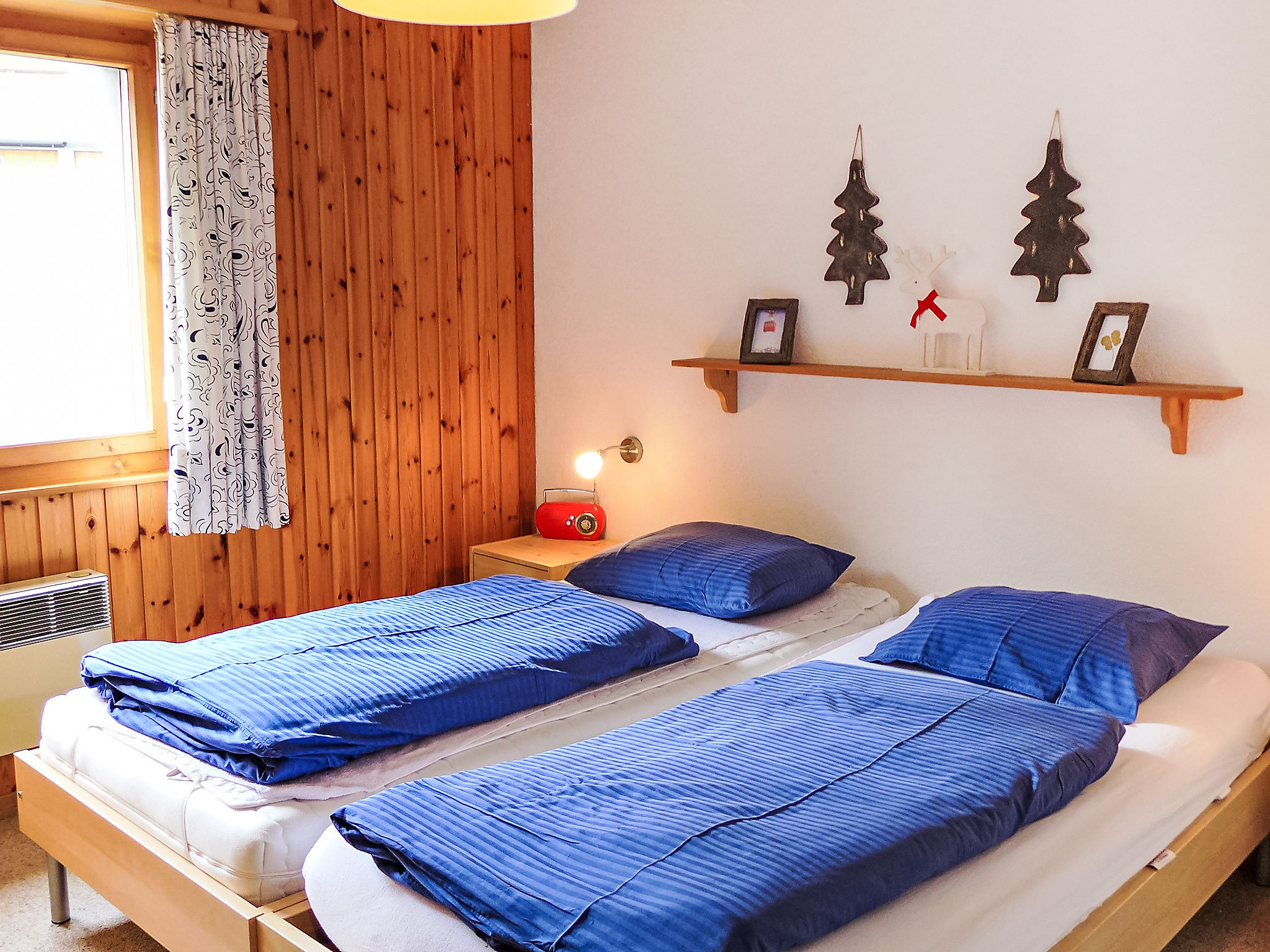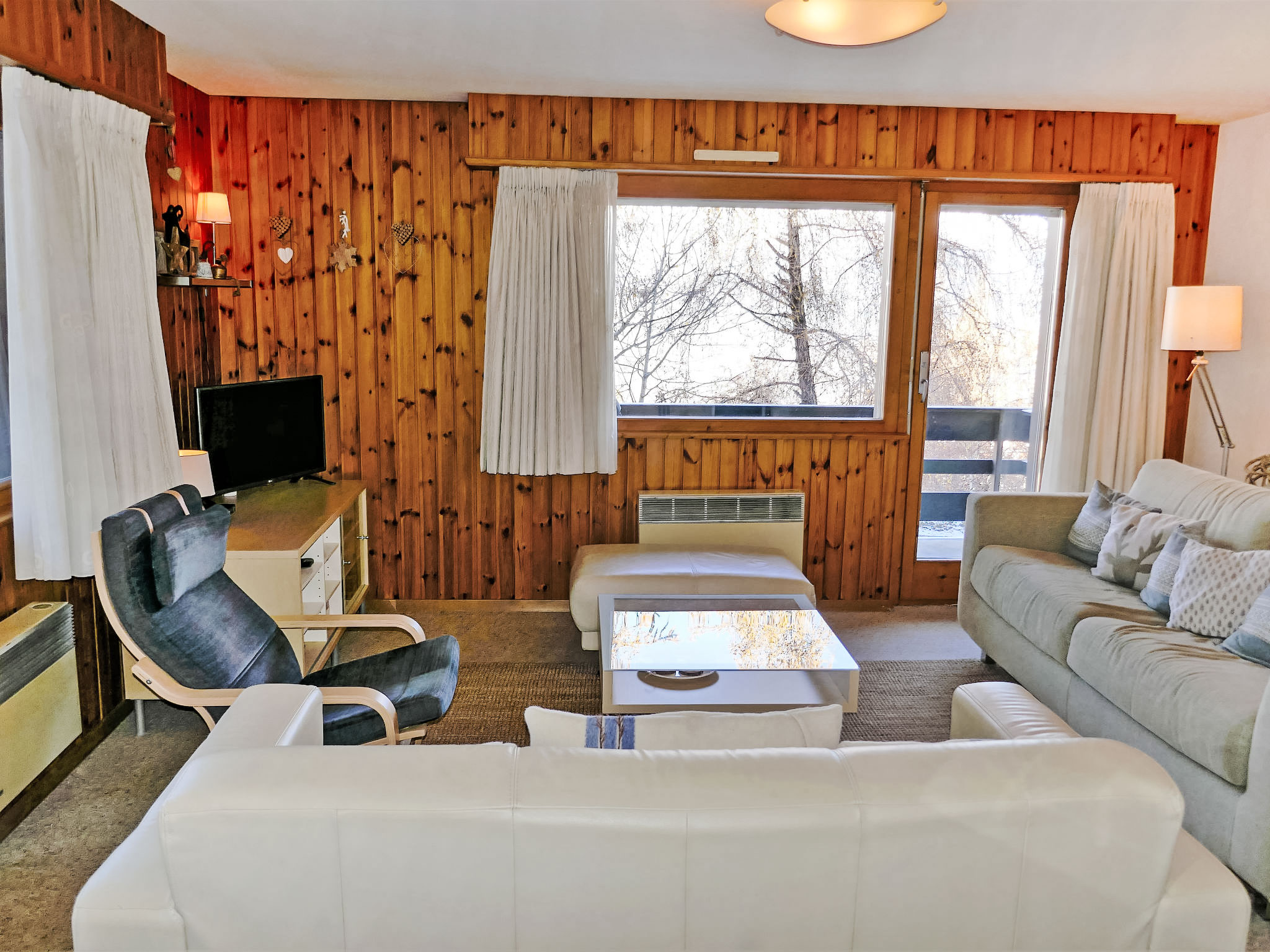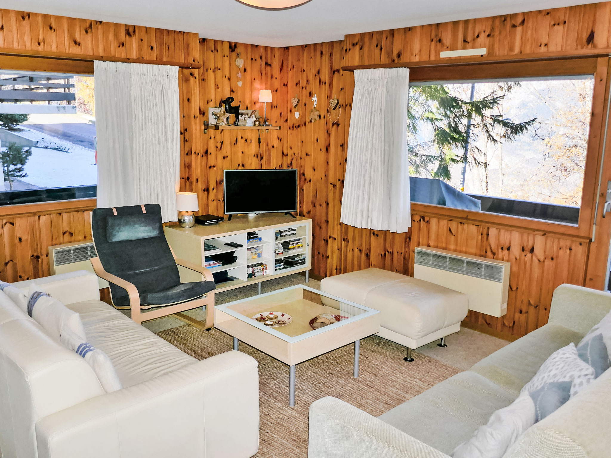 "Prachalier I No6", 3-Zimmer-Wohnung 68 m2 im 1. Stock. Komfortabel eingerichtet: Wohnzimmer mit Kabel-TV und DVD. Ausgang zum Balkon. 1 Zimmer mit 1 franz. Bett (180 cm, Länge 200 cm). 1 kleines Zimmer mit 1 Doppelbett (160 cm, Länge 200 cm). Küche (4 Kochplatten, Backofen, Geschirrspüler, Toaster, Wasserkocher, elektrische Kaffeemaschine, Kombinationsmikrowelle, Fondue Set (Käse)) mit Essecke. Ausgang zum Balkon. Bad/WC. Balkon, Südlage Balkon, Westlage und Nordlage. Schöne Sicht auf die Berge, das Tal und die Ortschaft. Zur Verfügung: Babybett, Haartrockner. Internet (WLAN, gratis). Bitte beachten: Nichtraucher-Haus.