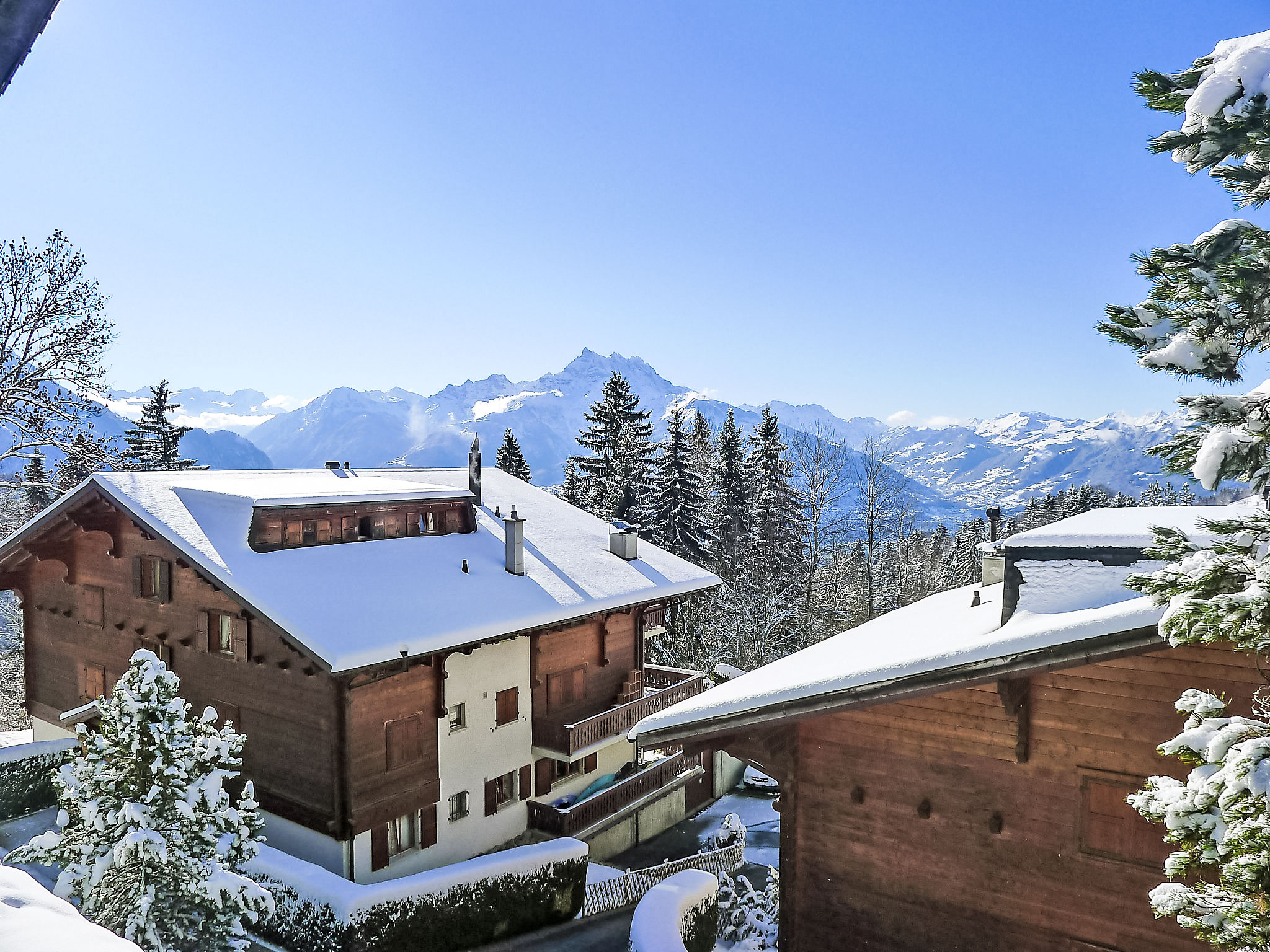 Chalet "Les Bruyères A,B", auf 4 Stockwerken. 700 m vom Zentrum von Villars, Richtung Südwesten. Zur Mitbenutzung: Hallenbad (saisonale Verfügbarkeit: 15.Dez. - 01.Nov.). Tischtennis. Im Hause: Sauna (extra). Zentralheizung, Waschmaschine (extra), Wäschetrockner (zur Mitbenutzung, extra). Zufahrt bis zum Haus. Im Winter bitte Schneeketten mitbringen. Gemeinschaftsgarage. Einkaufsgeschäft 700 m, Lebensmittelgeschäft 600 m, Restaurant 650 m, Bushaltestelle 250 m, Bahnstation "Villars" 1 km, Thermalbad "Lavey-les-bains" 19 km. Golfplatz (18 Loch) 7 km, Tennishalle 1.8 km, Sportzentrum 1.8 km, Bergeisenbahn 1 km, Skilift 1.6 km, Gondelbahn 500 m, Skibushaltestelle 250 m, Skischule 900 m, Kinderskischule 1.8 km, Eisfeld 700 m, Kinderspielplatz 1.2 km. Der gratis Skibus fährt zum Skigebiet Villars.