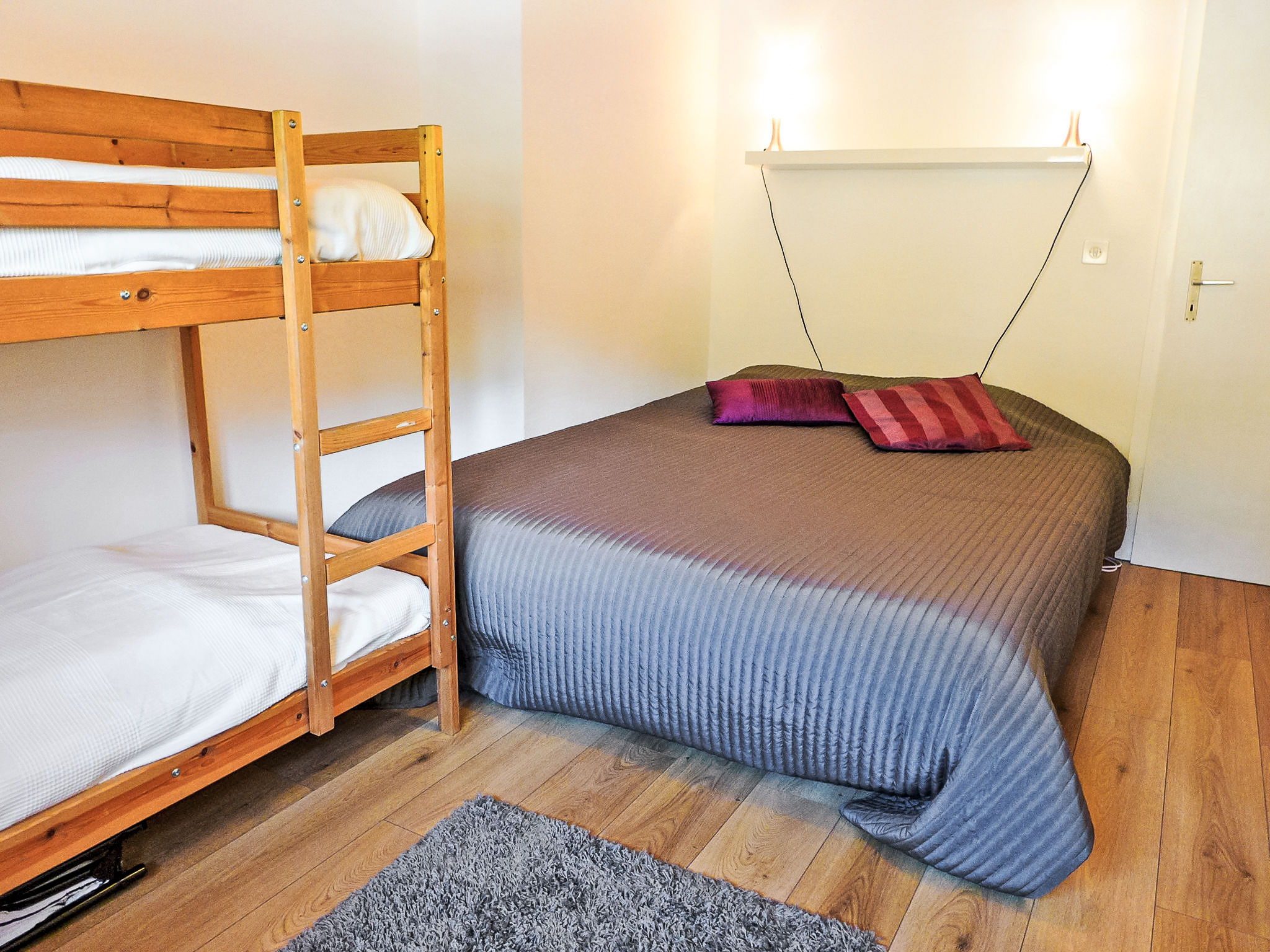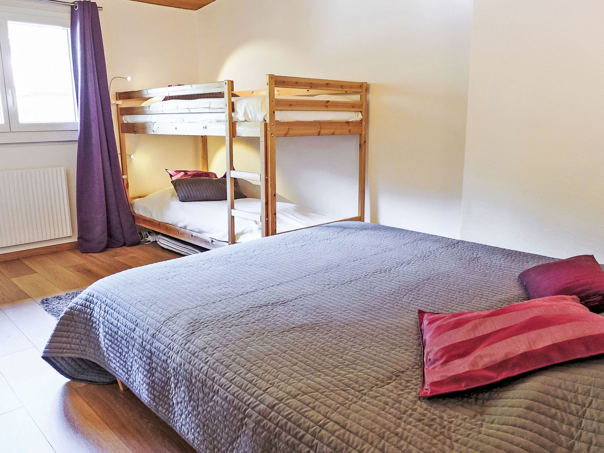 "Les Bruyères 25", 2-Zimmer-Attikawohnung 42 m2 im 2. Stock. Komfortabel und schön eingerichtet: Wohn-/Esszimmer mit offenem Kamin (nur Deko), TV (Flachbildschirm), DVD. Ausgang zum Balkon, Richtung Süden. 1 Zimmer mit 1 x 2 Etagenbetten, 1 Doppelbett (160 cm). Offene Küche (Backofen, Geschirrspüler, 4 Glaskeramikplatten, Toaster, Wasserkocher, Mikrowelle, elektrische Kaffeemaschine, Kapseln für die Kaffeemaschine (Dolce Gusto) extra, Racletteofen, Kombinationsmikrowelle, Fondue Set (Käse)). Bad/WC. Kleiner Balkon 6 m2. Balkonmöbel. Sehr schöne Sicht auf die Berge. Zur Verfügung: Internet (Wireless LAN, gratis). IPod docking station. Garage Nr. 25.