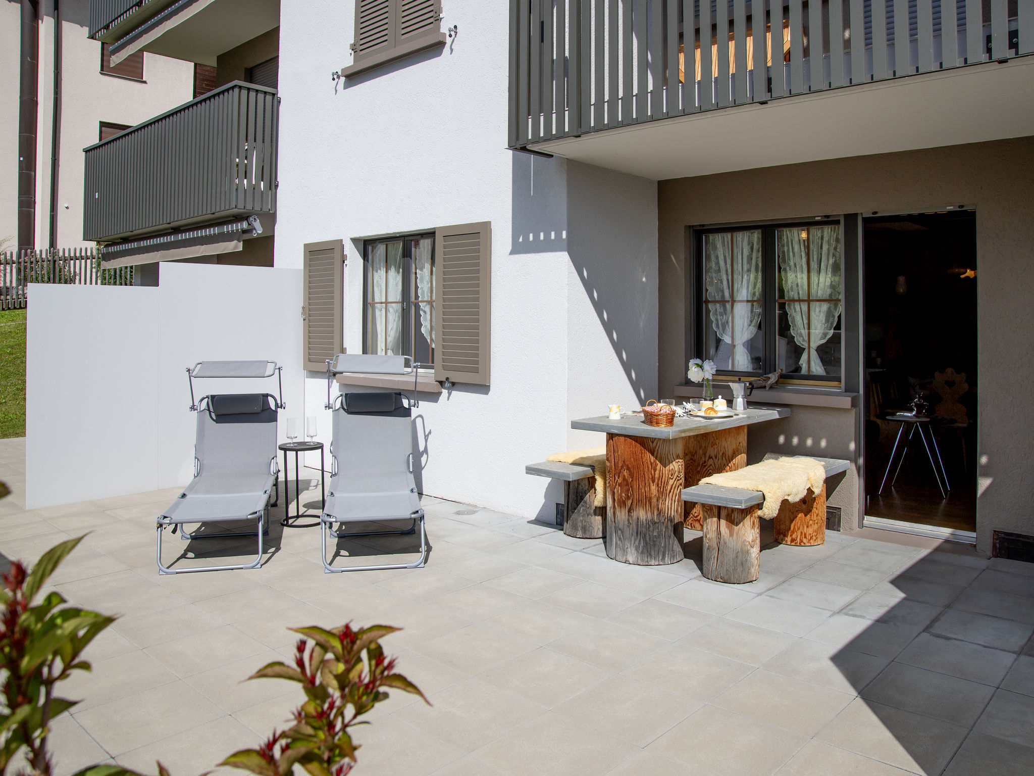 "La Siala Apt.2", 2-Zimmer-Wohnung 40 m2, im Erdgeschoss. Komfortabel und gemütlich eingerichtet: Wohn-/Esszimmer mit 1 Doppeldiwanbett und Kabel-TV (Flachbildschirm). Ausgang zum Gartensitzplatz. 1 Doppelzimmer. Kochnische (Geschirrspüler, 2 Glaskeramikplatten, elektrische Kaffeemaschine, Kapseln für die Kaffeemaschine (Nespresso) extra). Dusche/WC. Gartensitzplatz 20 m2, Südlage. Terrassenmöbel. Schöne Sicht auf die Berge, das Tal und die Landschaft. Zur Verfügung: Haartrockner. Internet (WLAN, gratis). Bitte beachten: Nichtraucher-Unterkunft. Maximal 1 Haustier/Hund erlaubt.