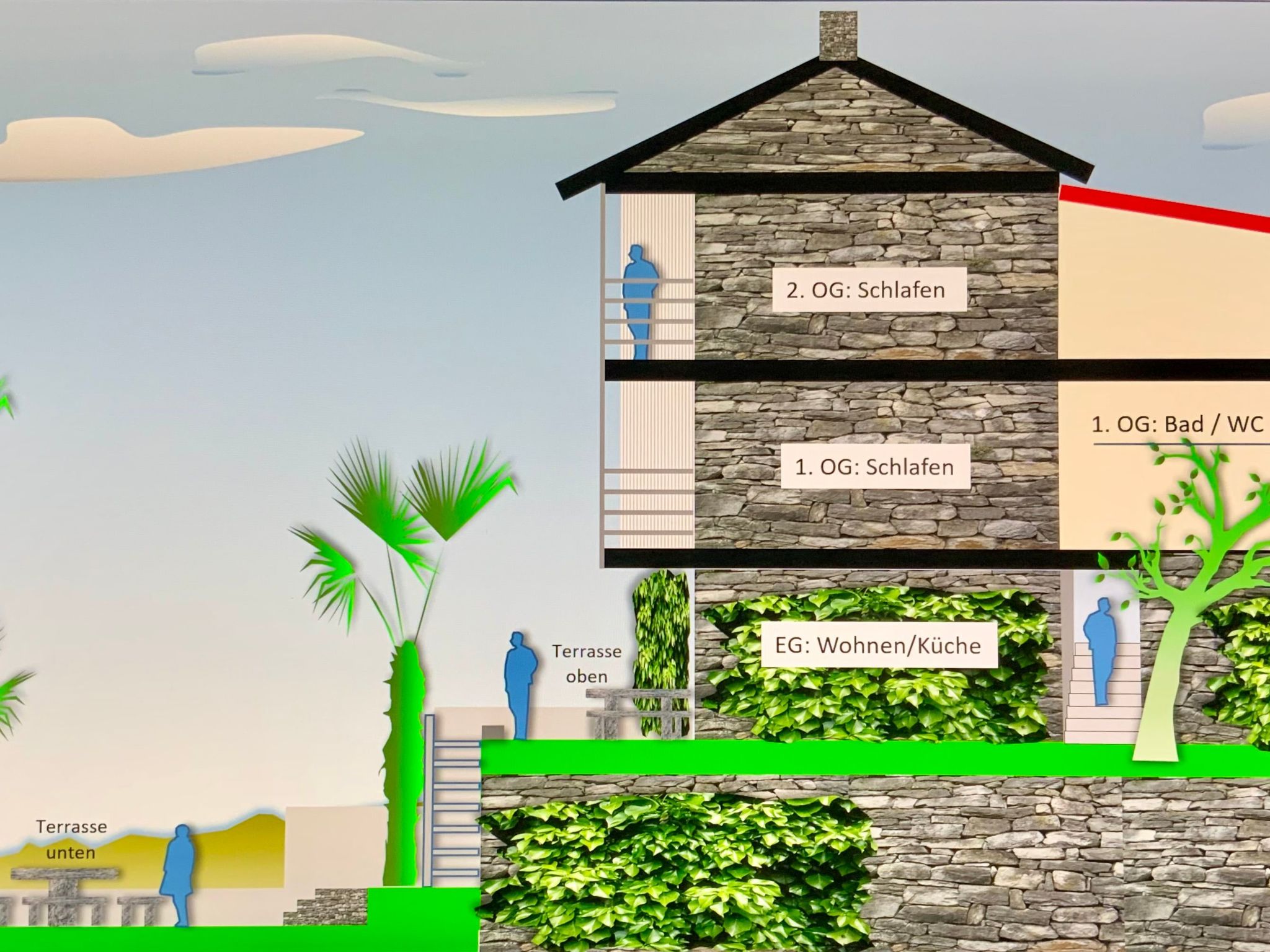 - Gesamtanzahl d. Stockwerke im Gebäude über EG: 2