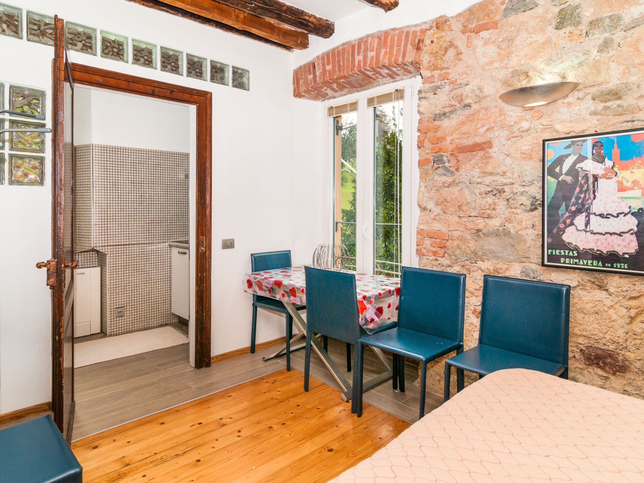 Treten Sie ein in ein gepflegtes Interieur, in dem Funktionalität auf Komfort trifft. Das Hauptschlafzimmer und der Wohnbereich sind geschickt durch einen senkrechten Schrank getrennt, der Privatsphäre und Platz bietet. Die separate Küche ist mit einer Kapselkaffeemaschine, einem Wasserkocher und allem Notwendigen ausgestattet und steht für Ihren Aufenthalt bereit. Die gesamte Wohnung ist klimatisiert, so dass Sie sich zu jeder Jahreszeit wohlfühlen. Die Waschmaschine, die Sie exklusiv nutzen können, verleiht Ihrem Aufenthalt einen Hauch von häuslicher Gemütlichkeit.