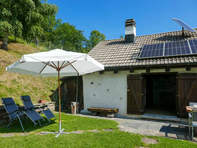 Melànico 18 km von Malvaglia: >>Hinweis: Die Stromversorgung erfolgt über ein Solarpanel, Herd, Boiler und Kühlschrank sind gasbetrieben. Bergstrasse 200 m. Unbefestigte Strasse, nicht empfohlen für Autos mit geringer Bodenfreiheit. Gemütliches, rustikales Einfamilienhaus "Rustico Girasole", 1'080 m.ü.M., umgeben von Wiesen. 2 km vom Zentrum von Leontica, 19 km vom Zentrum von Biasca, 40 km vom Zentrum von Bellinzona, im Bezirk Valle di Blenio, in einer Sackgasse, Richtung Südosten. Zur Alleinbenutzung: naturbelassenes Grundstück 1'000 m2 (eingezäunt), terrassierter Garten, Wiese. Terrasse, Gartenmöbel, Grillhaus. Im Hause: Einstellraum für Fahrräder. Schmale Zufahrt (200 m Naturweg). Parkplatz beim Haus. Einkaufsgeschäft 4 km, Supermarkt 8.5 km, Restaurant 8.5 km, Bushaltestelle "Leontica Chiesa bus 133" 1.8 km, Bahnstation "Biasca FFS - SBB" 20 km. Nahe gelegene Sehenswürdigkeiten: Castelli di Bellinzona UNESCO, Castello di Seravalle, Semione, Mercato di Bellinzona, Chiesa di Negrentino, Museo della Valle di Blenio, Archivio Doneta. Bekannte Seen in der Umgebung sind gut erreichbar: Luzzone, Retico, Ritom, Lago di Lugano, Lago Maggiore. Wandergebiete: Nara, Lucomagno, Greina, Val Malvaglia, Valle di Blenio. Bitte beachten: Fahrzeug empfohlen. Babyausstattung. Tiere in der Umgebung.