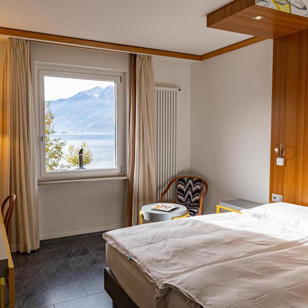Das Restaurant serviert italienische Gerichte, eine große Auswahl an Pastagerichten aus dem Tessin sowie Snacks, Salate und Sandwiches. Sie genießen Aussicht auf den Lago Maggiore.